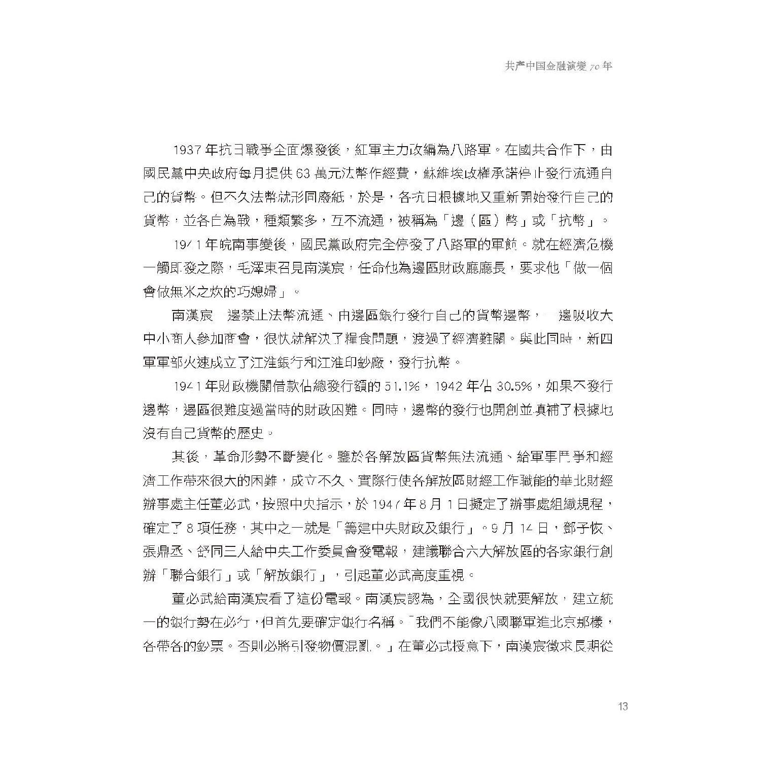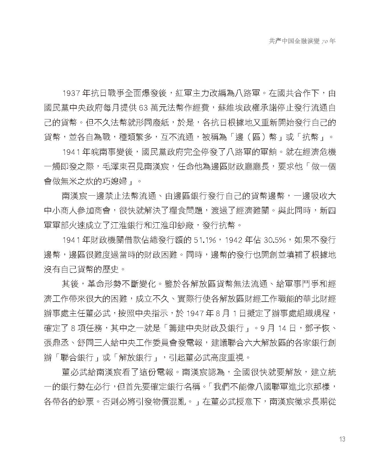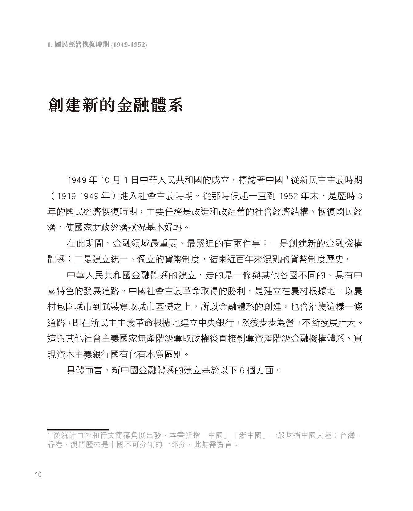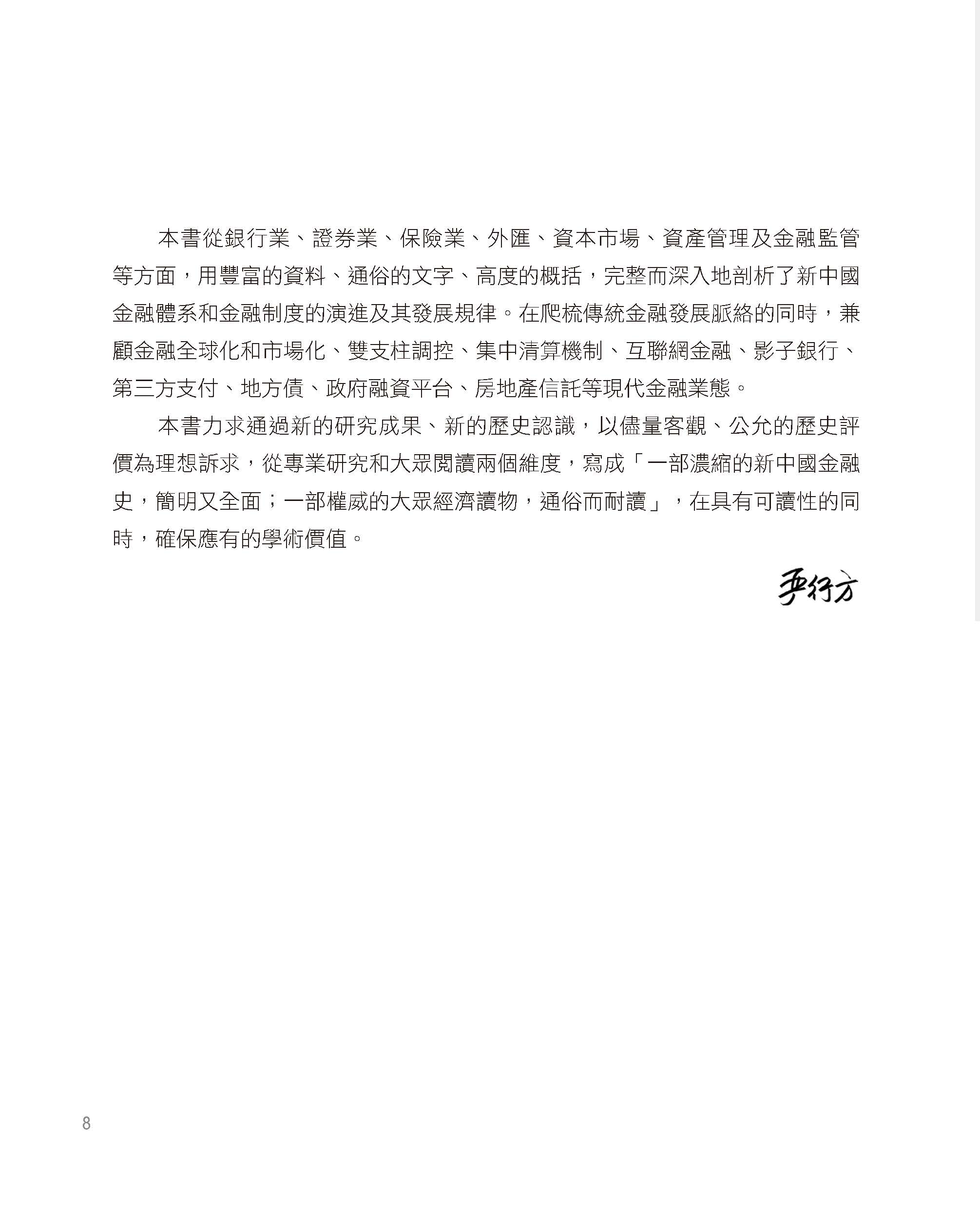 本書力求通過新的研究成果、歷史認識,以儘量客觀、公允的立場,從專業研究寫成一部濃縮的新中國金融史,簡明又全面;在具有可讀性的同時,確保應有的學術價值。