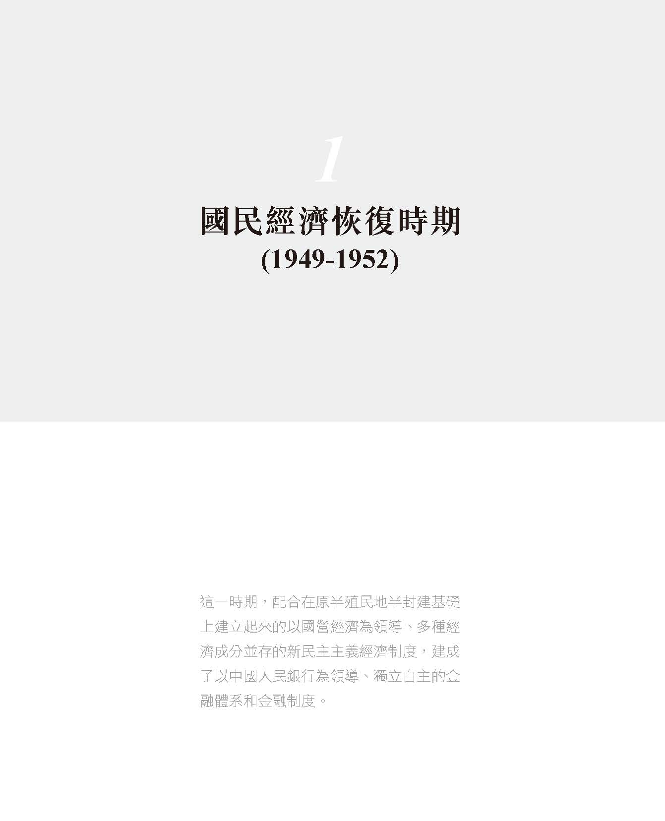 一、1949~1952年的國民經濟恢復時期。主要是重振經濟,在全國建立統一的金融市場,促進了國民經濟的恢復。