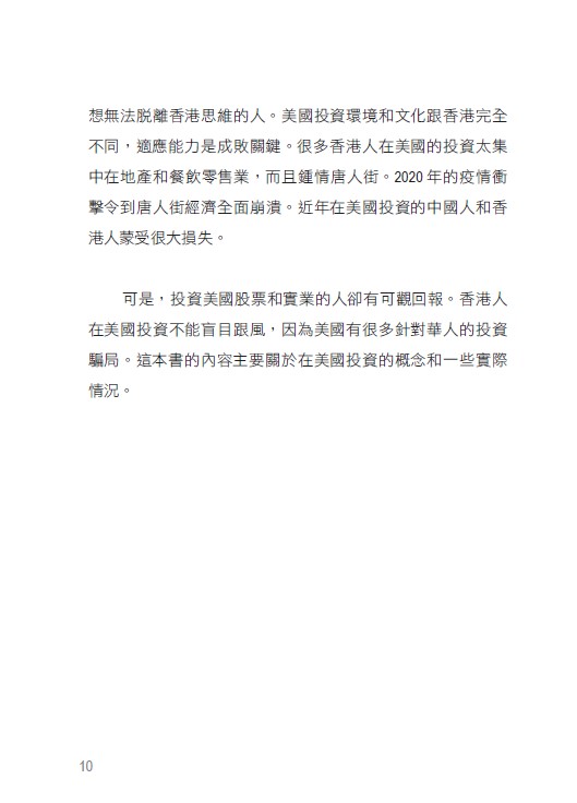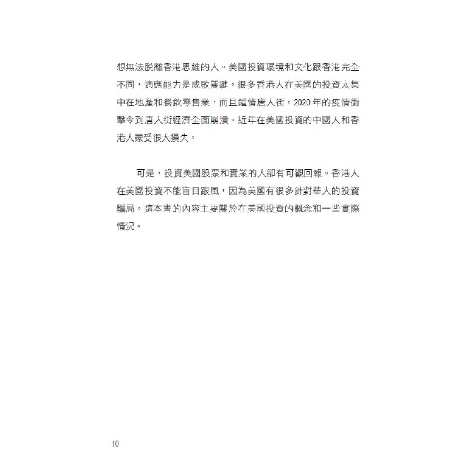 香港人在美國投資不能盲目跟風,因為美國有很多針對華人的投資騙局。這本書的內容主要關於在美國投資的概念和實際情況。