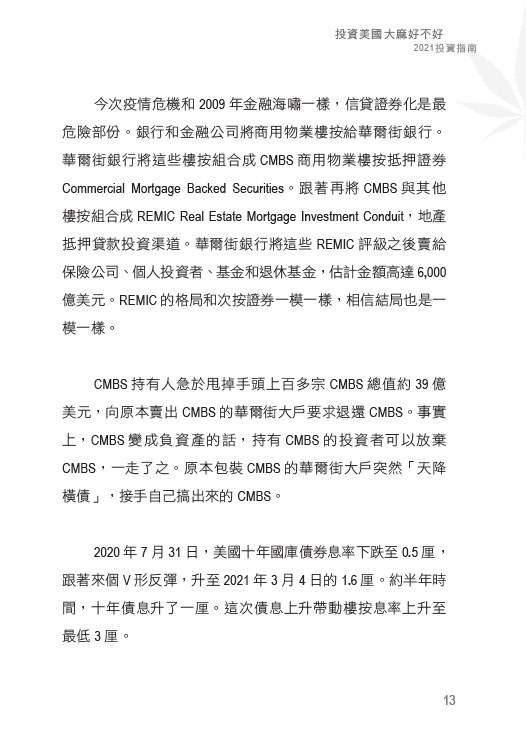 可是,投資美國股票和實業的人卻有可觀回報。不過,今次疫情危機和2009年金融海嘯一樣,信貸證券化是最危險部份,相信結局和次按也是一模一樣。