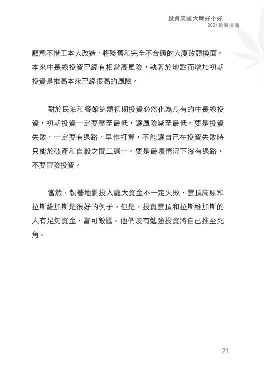 美國投資環境和文化跟香港完全不同,適應能力是成敗關鍵。很多香港人在美國的投資太集中在地產和餐飲零售業,而且鍾情唐人街。2020年的疫情衝擊令到唐人街經濟全面崩潰。近年在美國投資的中國人和香港人蒙受很大損失。