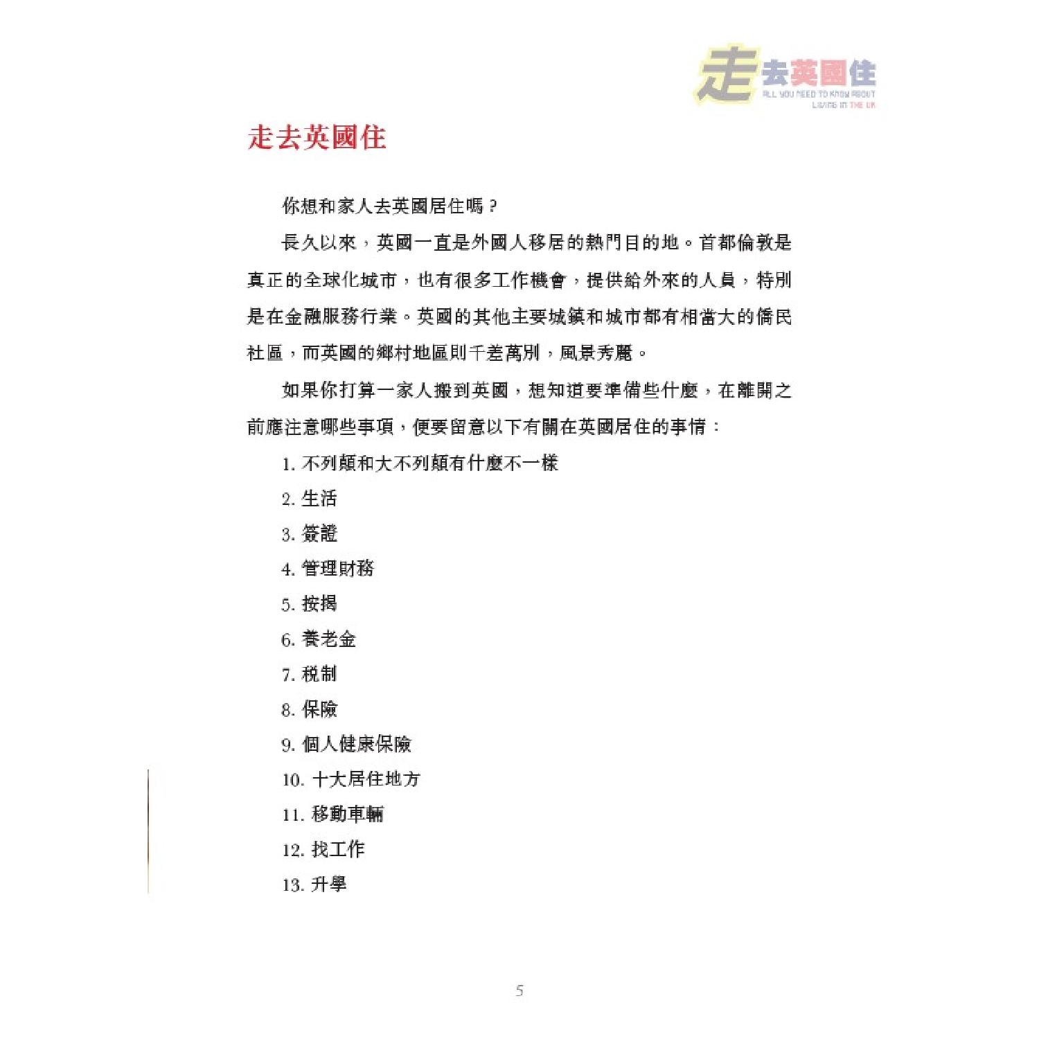 移居英國時,要開設合適的銀行帳戶,以隨時管理自己的資金。在到達英國之前,可先研究包括英國的零售銀行和手機銀行的選擇。本書也介紹了英國的退休金制度,以幫助你了解你退休時將獲得多少錢,領取退休金的年齡以及需要哪些供款。在英國無論是工作或是已經退休,通常需要納稅。徵稅的稅率取決於你的稅收居民身份和個人情況。