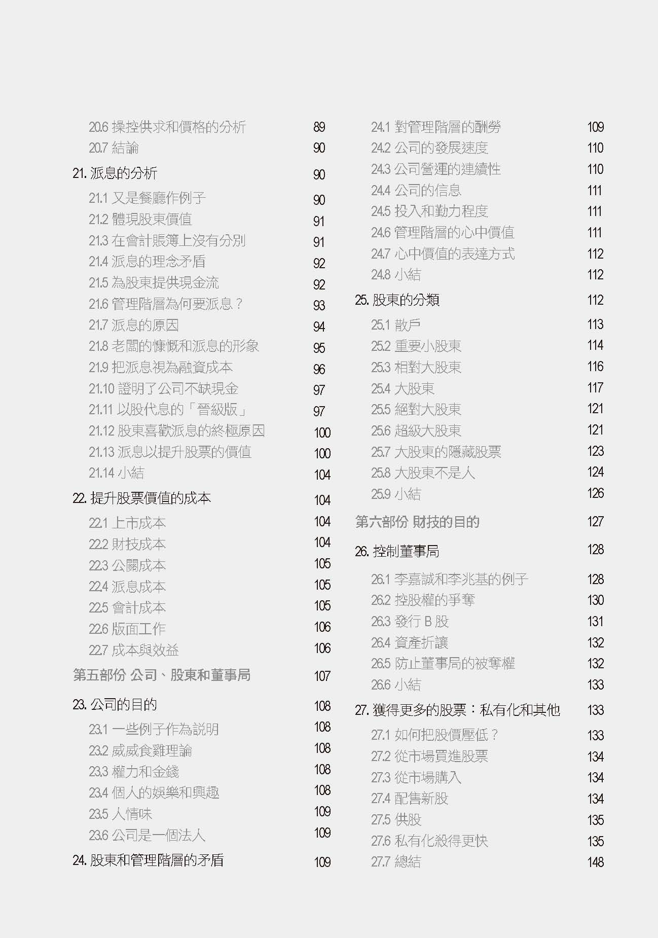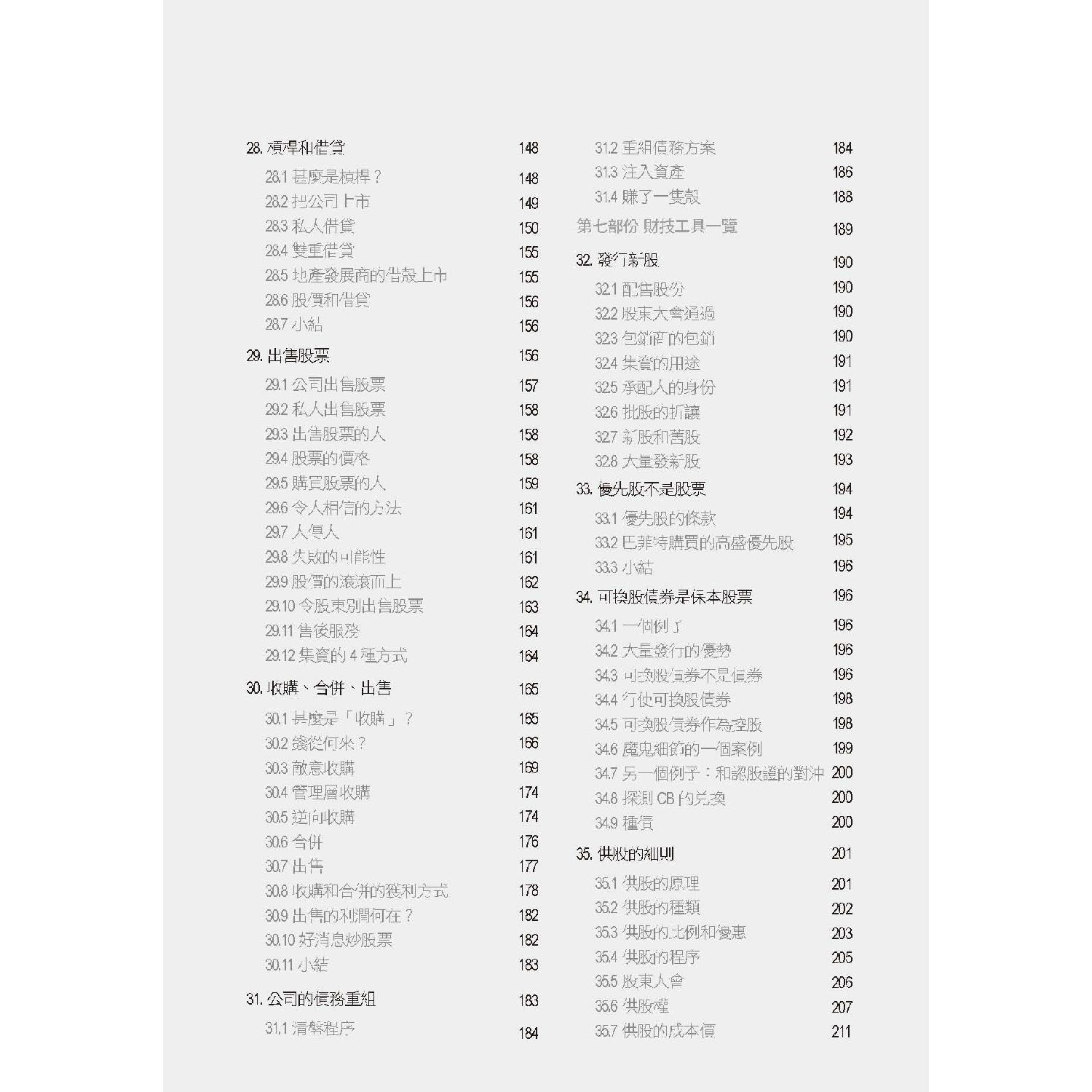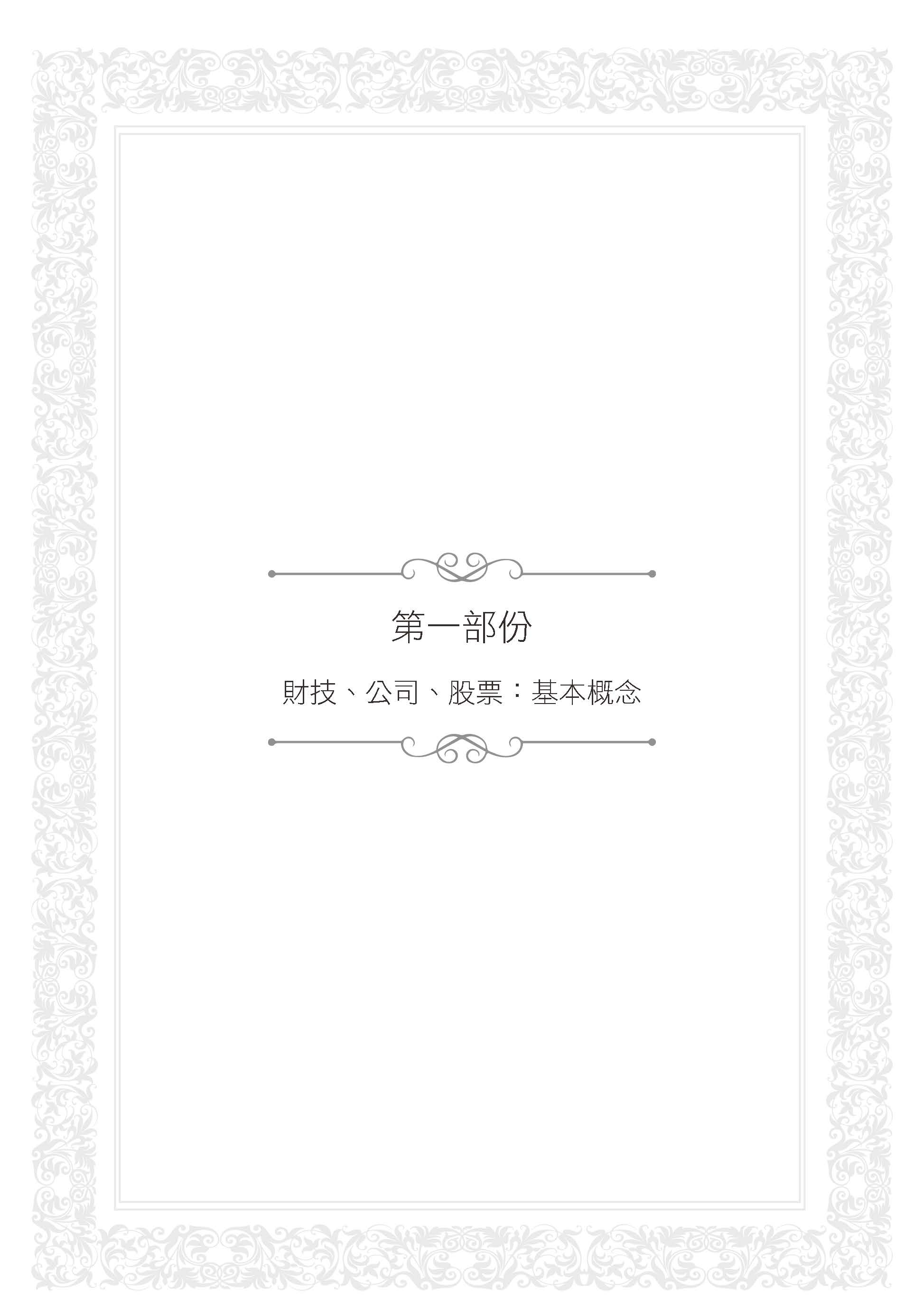 第一個部份是財技密碼,內容是有關公司財技的基本知識,以及操作的過程;前者的內容,其實首尾呼應,必須通曉了下篇某部份,才能夠貫徹理解,因此,建議初學讀者須得把本部份通讀兩遍,才可融會貫通,更好地理解整套財技的概念。