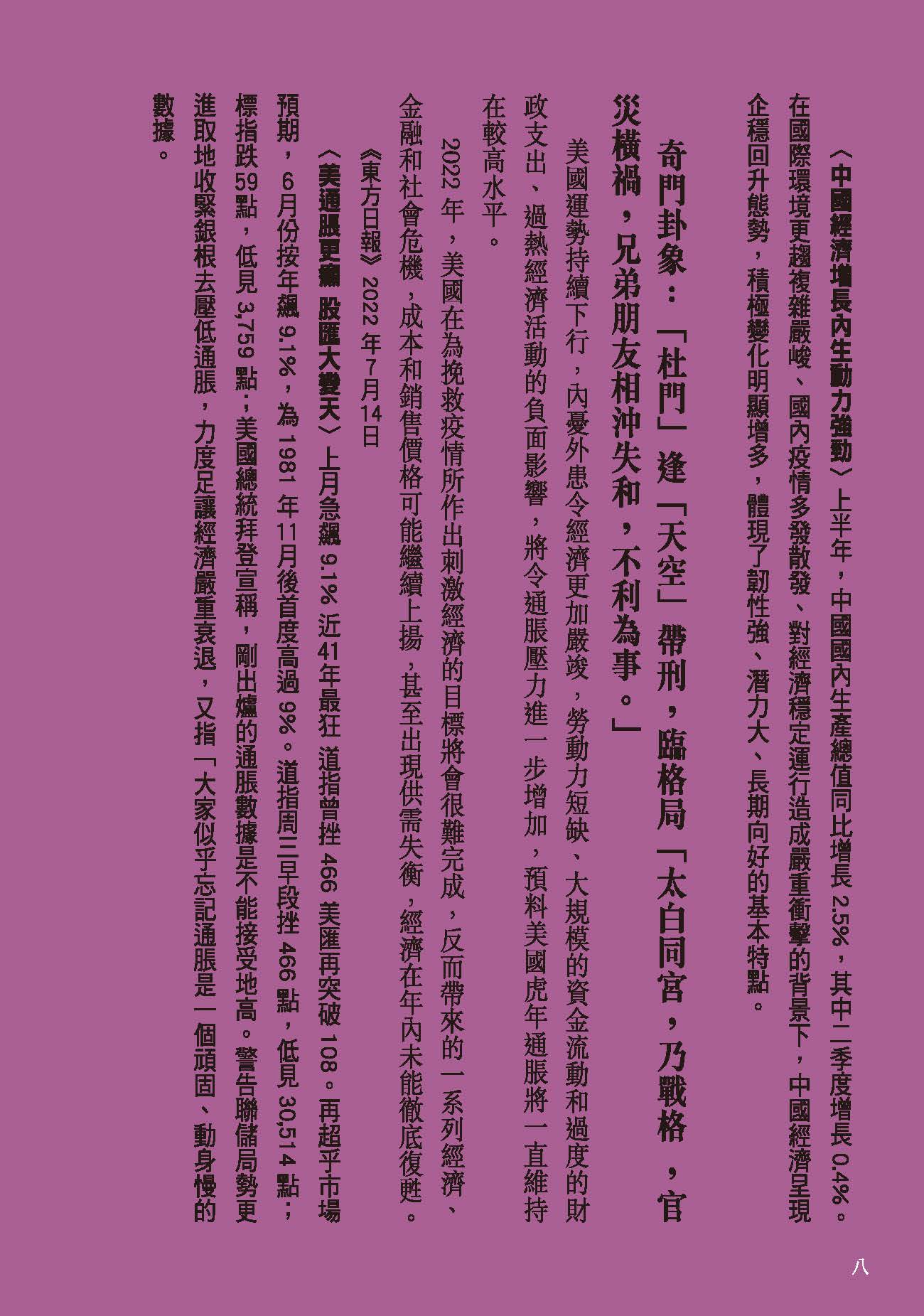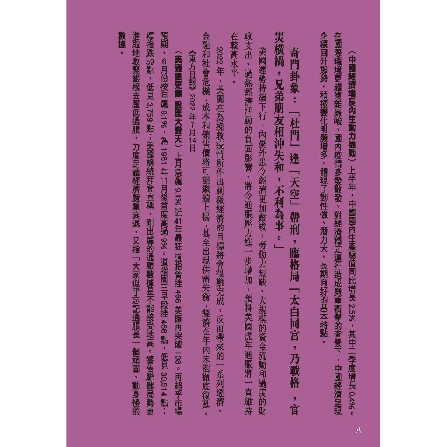 美國運勢滿途凶險。借烏克蘭危機制裁俄羅斯,和中國的貿易戰持續,導致能源價格飛漲、物流供應鏈受阻,令全球經濟雪上加霜,通脹率急升。