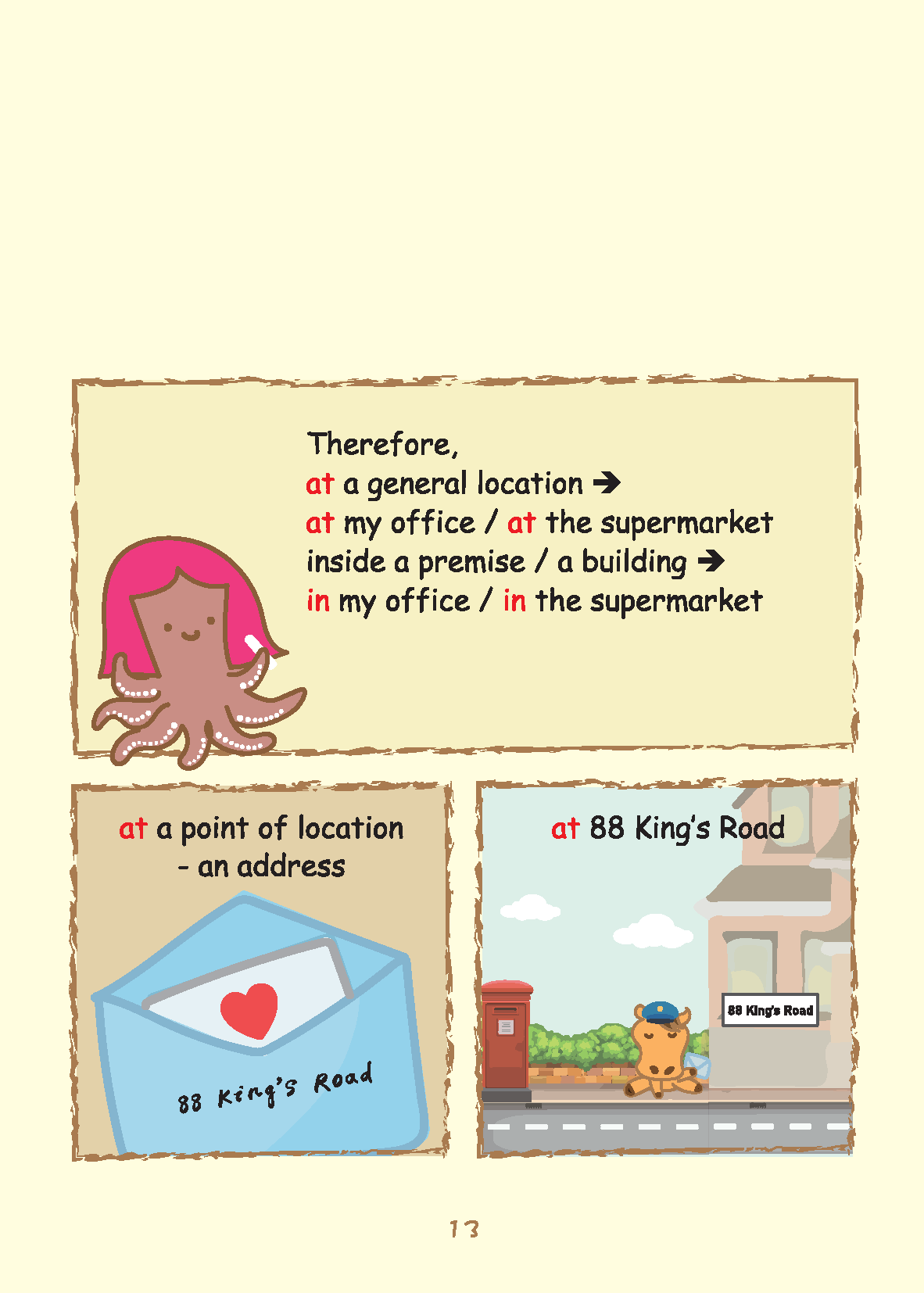介詞可視為將句子粘合在一起的詞。他們通過表達位置和動作、佔有、時間以及動作如何完成來做到這一點。