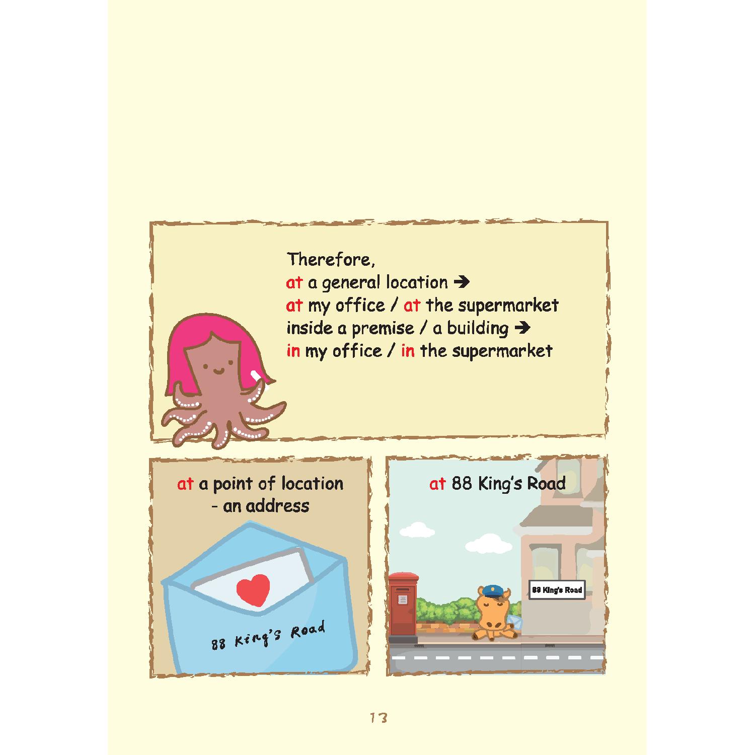 Miss Octopus,小學英語補習老師,10年來不斷因應學生學習時的反應、提問及關注的問題,而編寫教材。她利用圖像記憶先剷除學生對Grammar的恐懼,繼而激發學生對Grammar的思考及興趣。Miss Octopus相信生動有趣貼題的插畫,能使小腦袋把複雜的時態,有條不紊地運用起來。