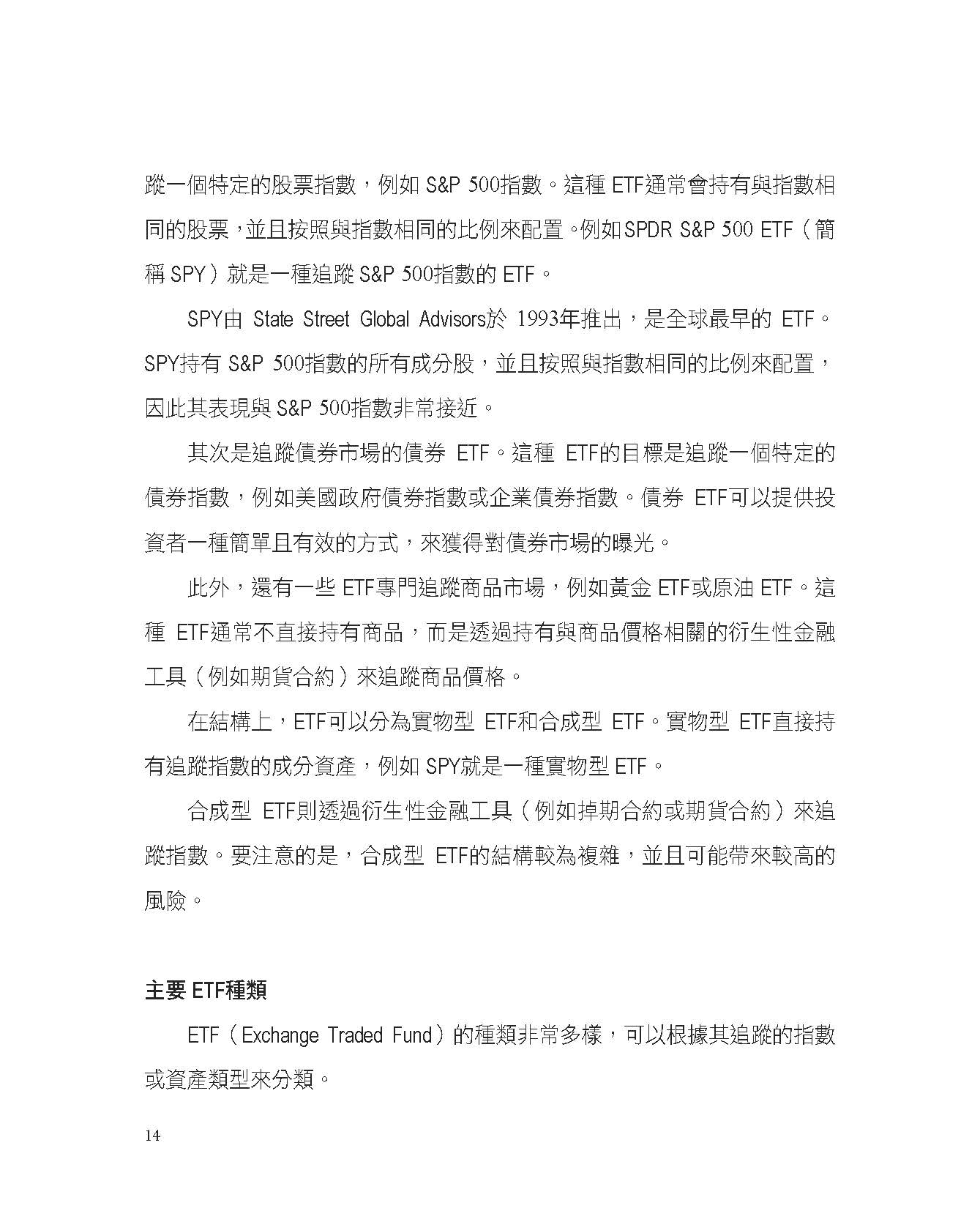 多元化投資:ETF通常跟踪某個指數,例如S&P 500,或特定的行業或地區的股票。這意味著通過購買一種ETF,投資者可以分散他們的投資組合,降低依賴單一股票的風險。