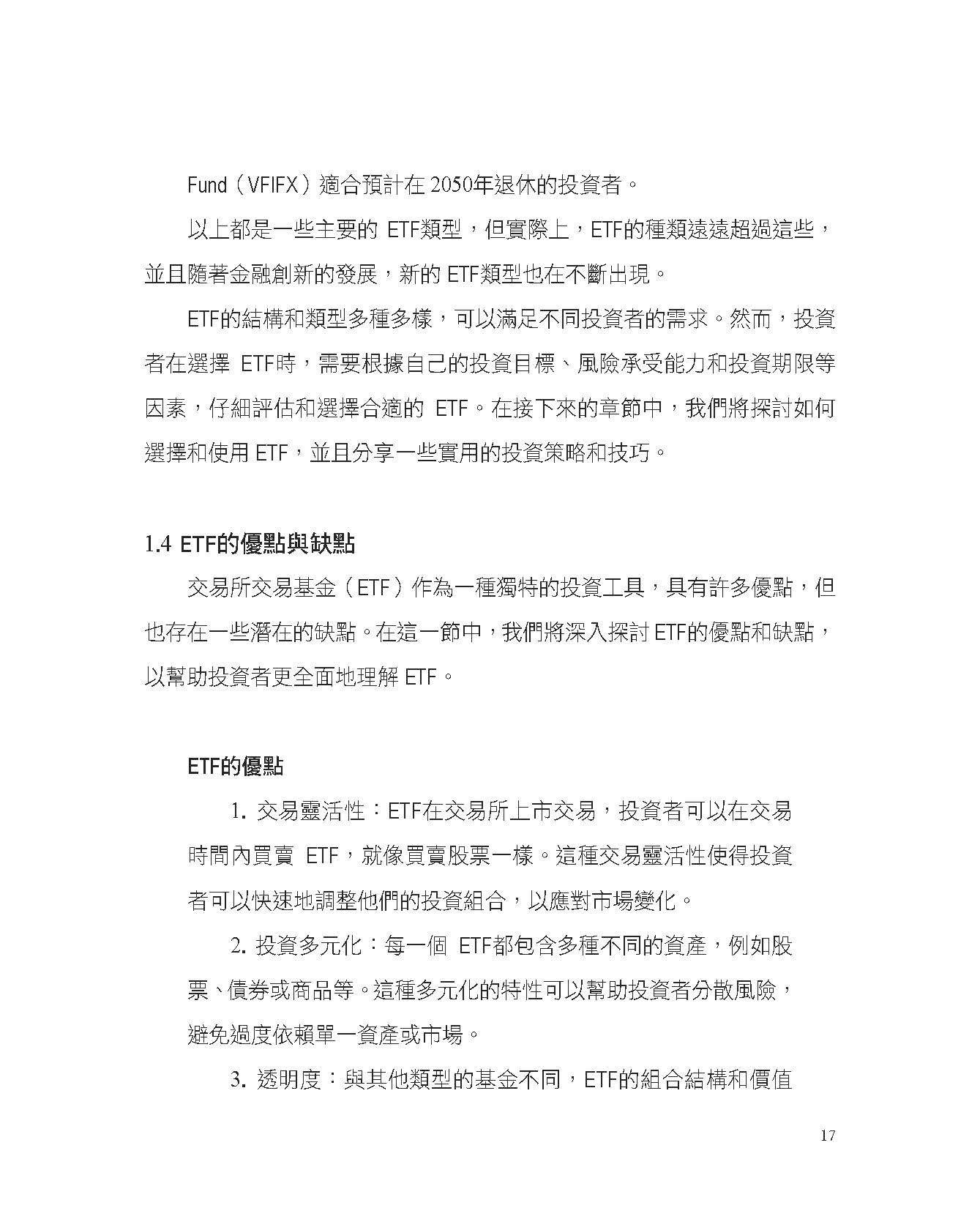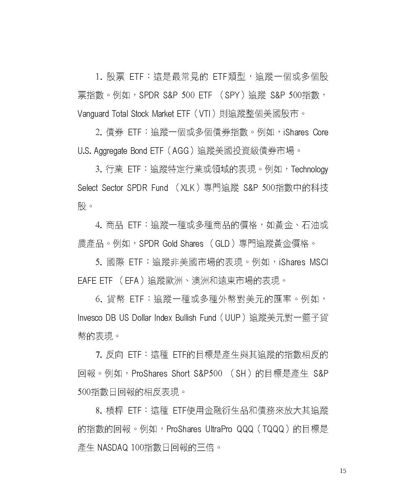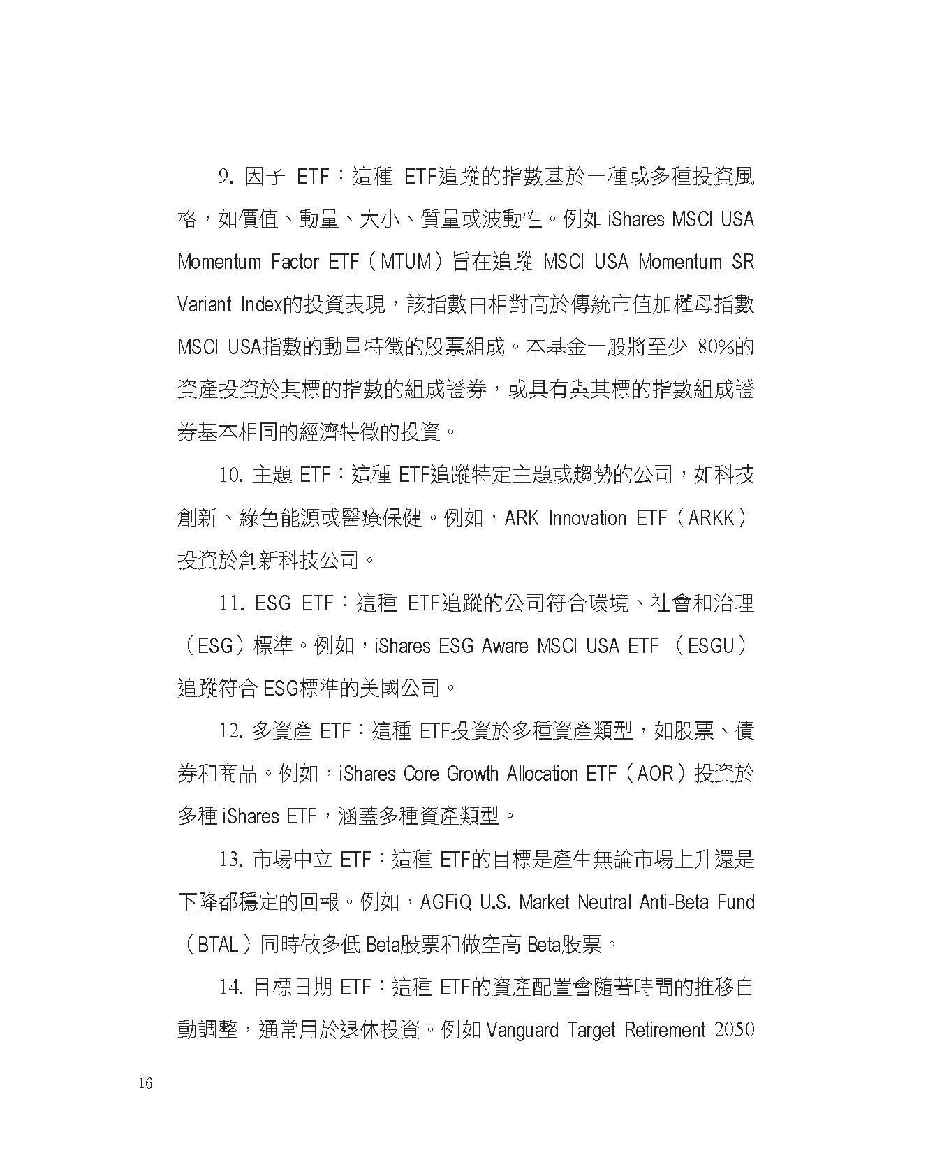 獲取各種市場的機會:ETF可以讓投資者接觸到全球各種市場,包括一些個人投資者可能難以進入的市場。這可能包括特定的行業、商品、國際市場或獨特的投資主題。
