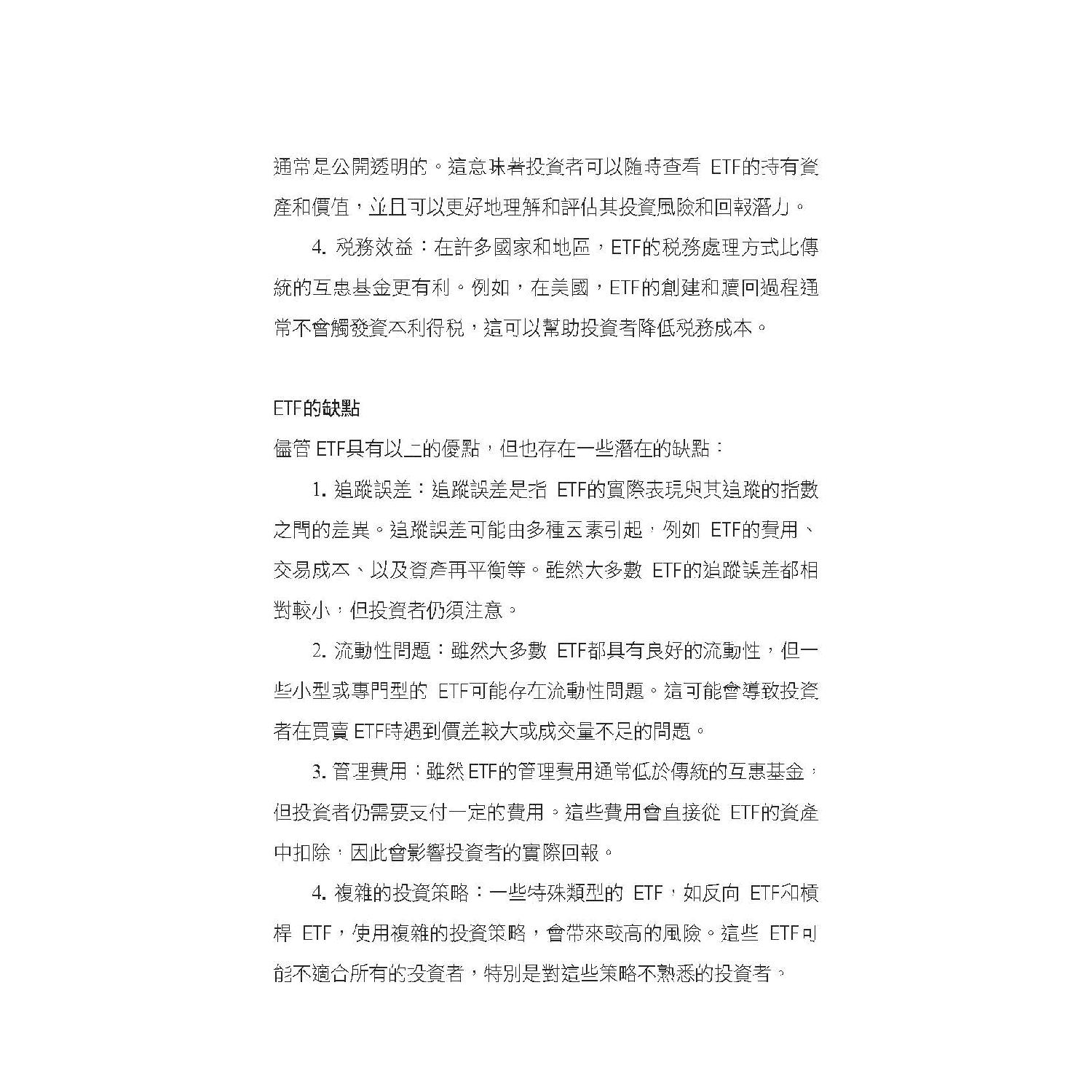流動性:與普通股票一樣,ETF在一天內的任何交易時間內都可以買賣。這對於需要快速進出市場的投資者來說是一個重要的優點。