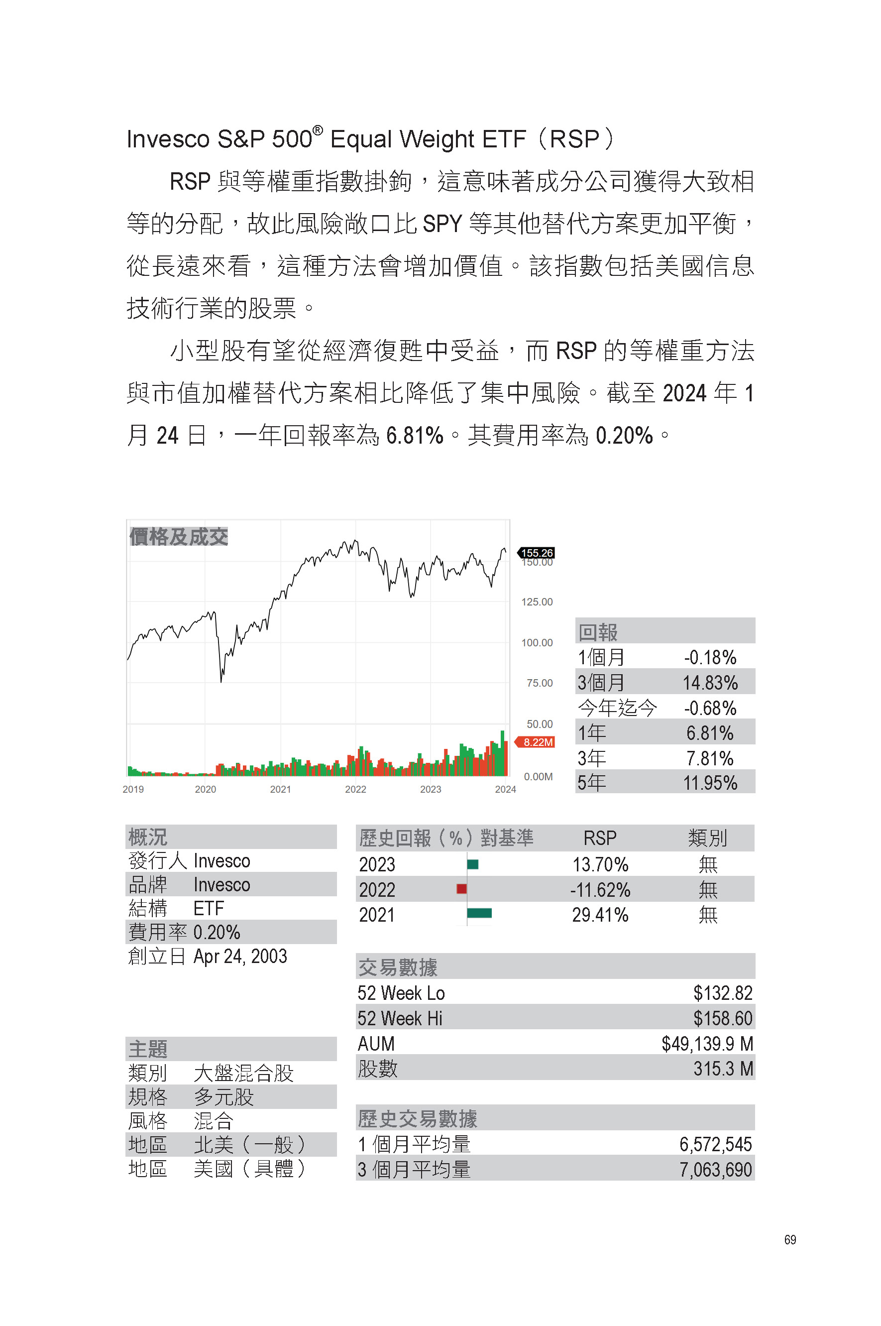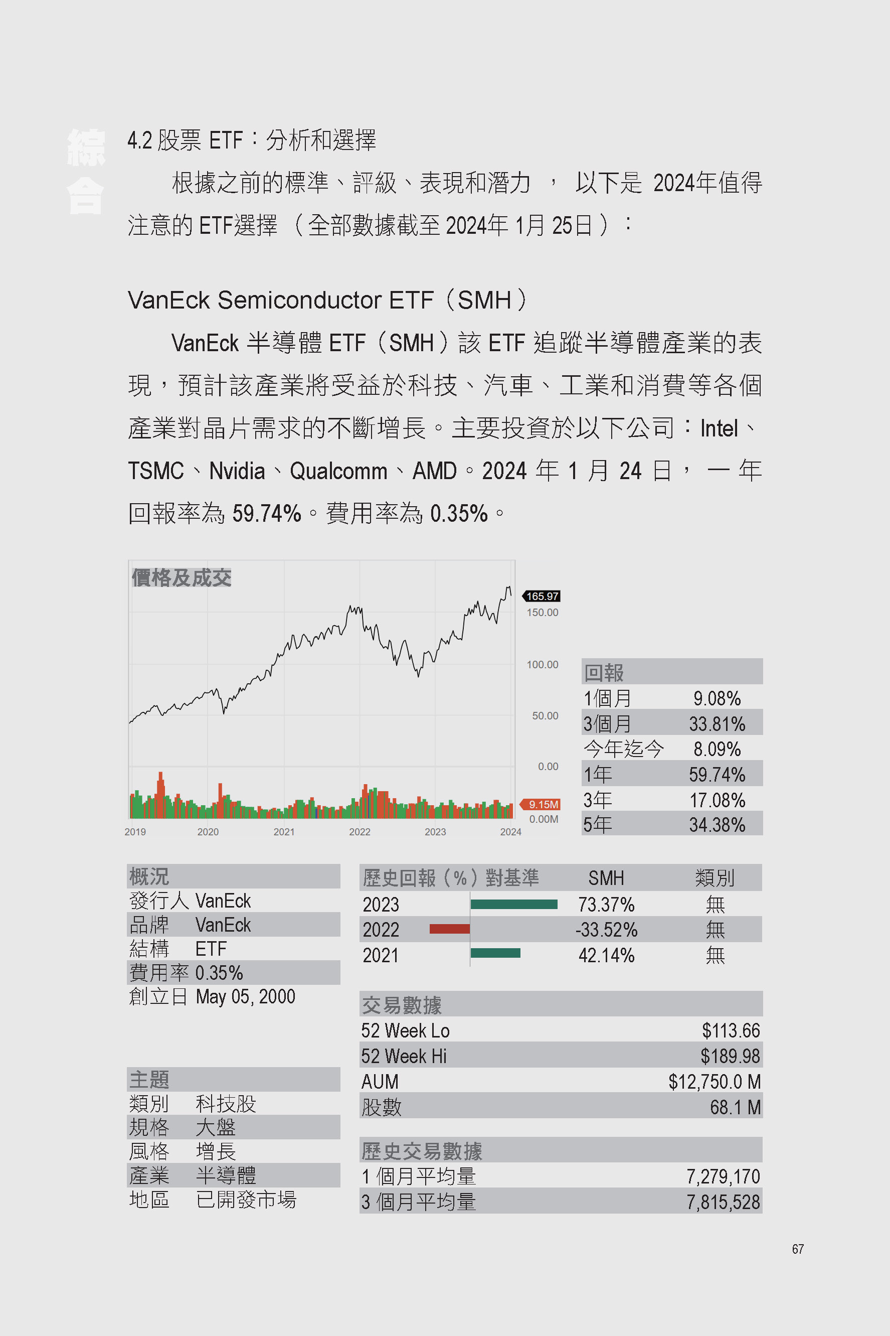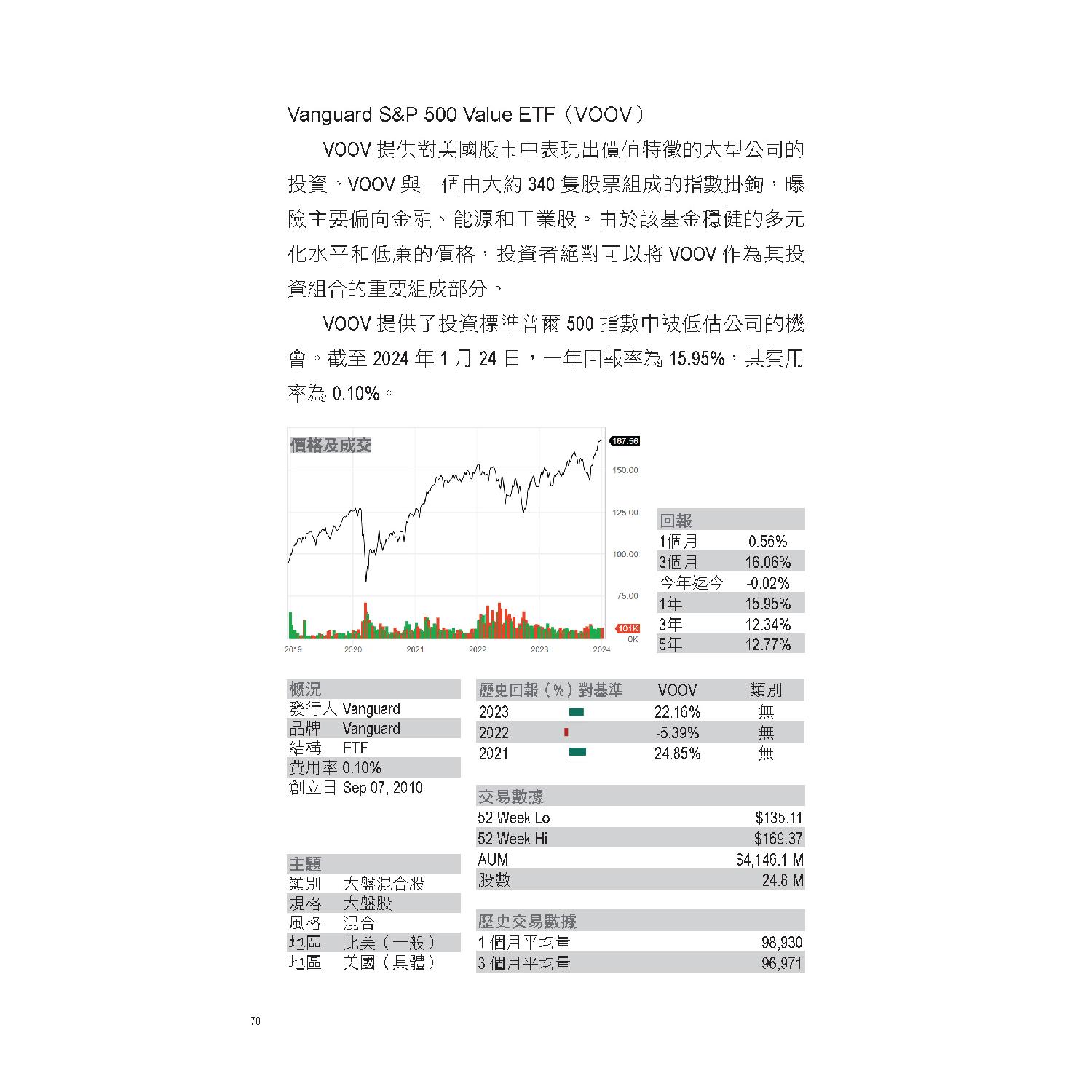 在投資策略部分,本書提供了多種ETF投資組合模型,包括平衡型、保守型和積極型,並根據不同的風險偏好和投資目標給出具體的配置建議。此外,書中還詳細介紹了如何進行年中投資組合的調整和重新平衡,以應對市場的波動和變化。