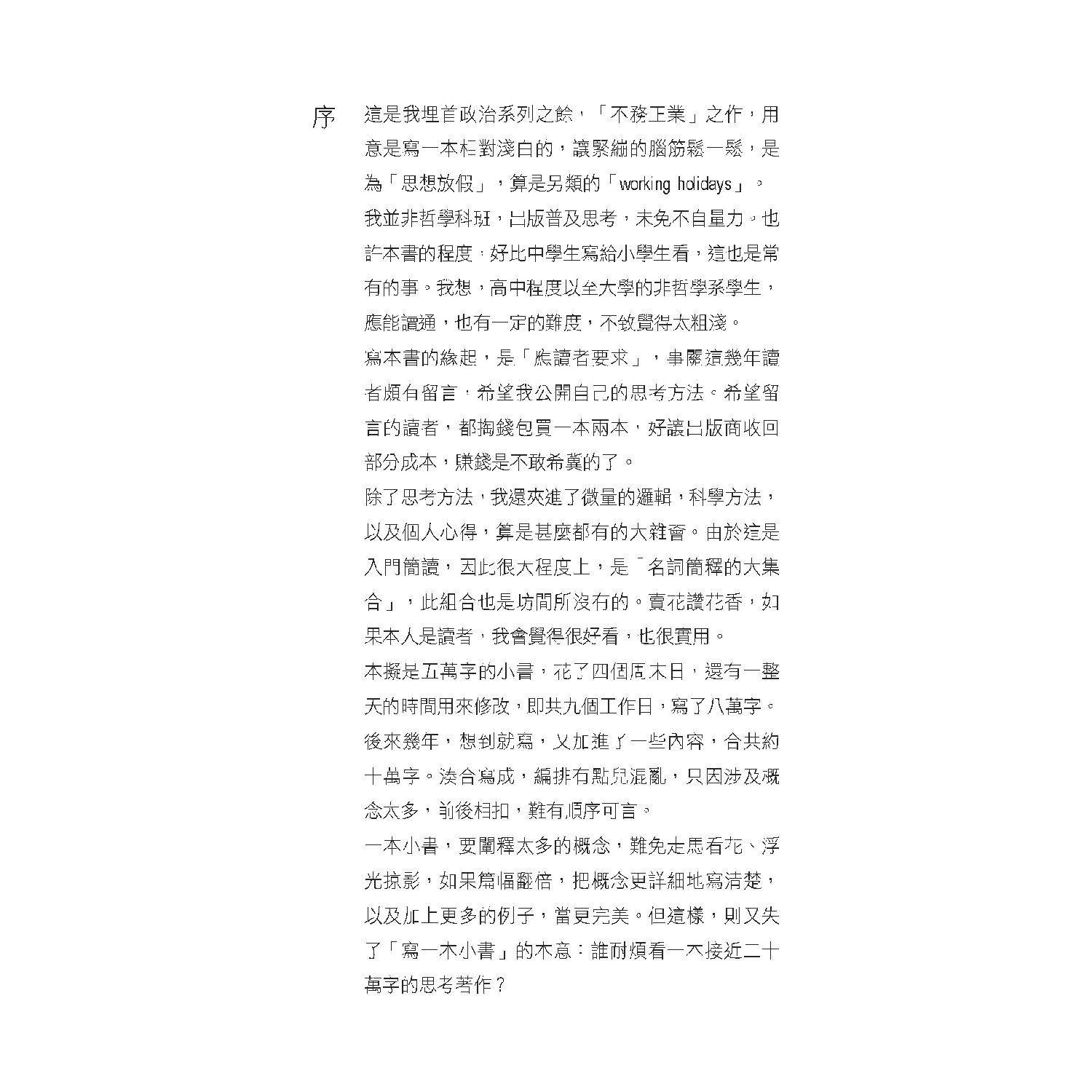 寫本書的緣起,是「應讀者要求」,事關這幾年讀者頗有留言,希望我公開自己的思考方法。希望留言的讀者,都掏錢包買一本兩本。
