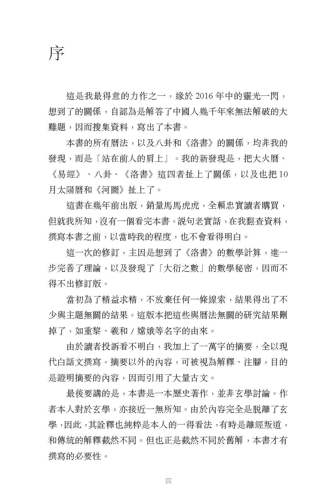 本書的所有曆法,以及八卦和《洛書》的關係,均非我的發現,而是「站在前人的肩上」。我的新發現是,把大火曆、《易經》、八卦、《洛書》這四者扯上了關係,以及也把10月太陽曆和《河圖》也扯上了。