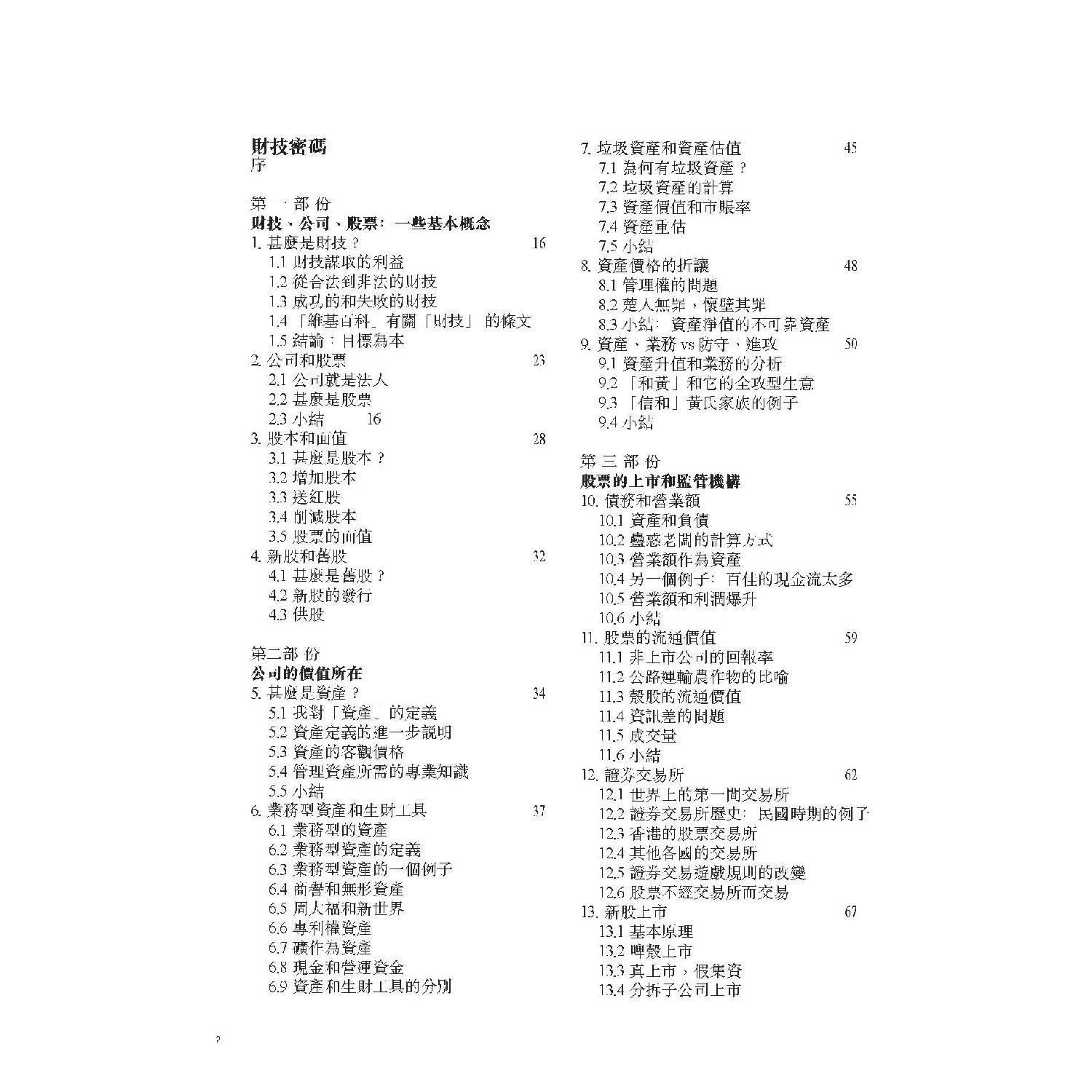 財技密碼的相關內容,主要關於上市公司所使用的財技手段,是為股票市場供應方的專門知識,乃上市公司管理層必備之知識;而市場買方亦須明白賣方財技之動機和意圖,方能知己知彼。
