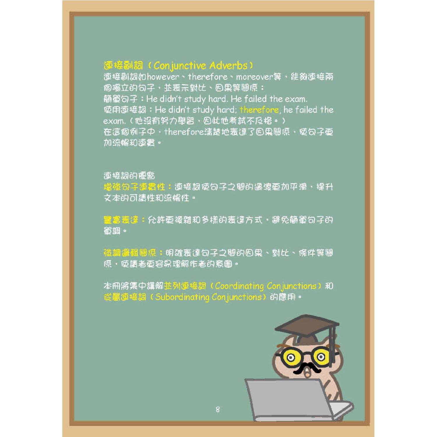 本冊將集中講解並列連接詞(Coordinating Conjunctions)和從屬連接詞(Subordinating Conjunctions)的應用。
