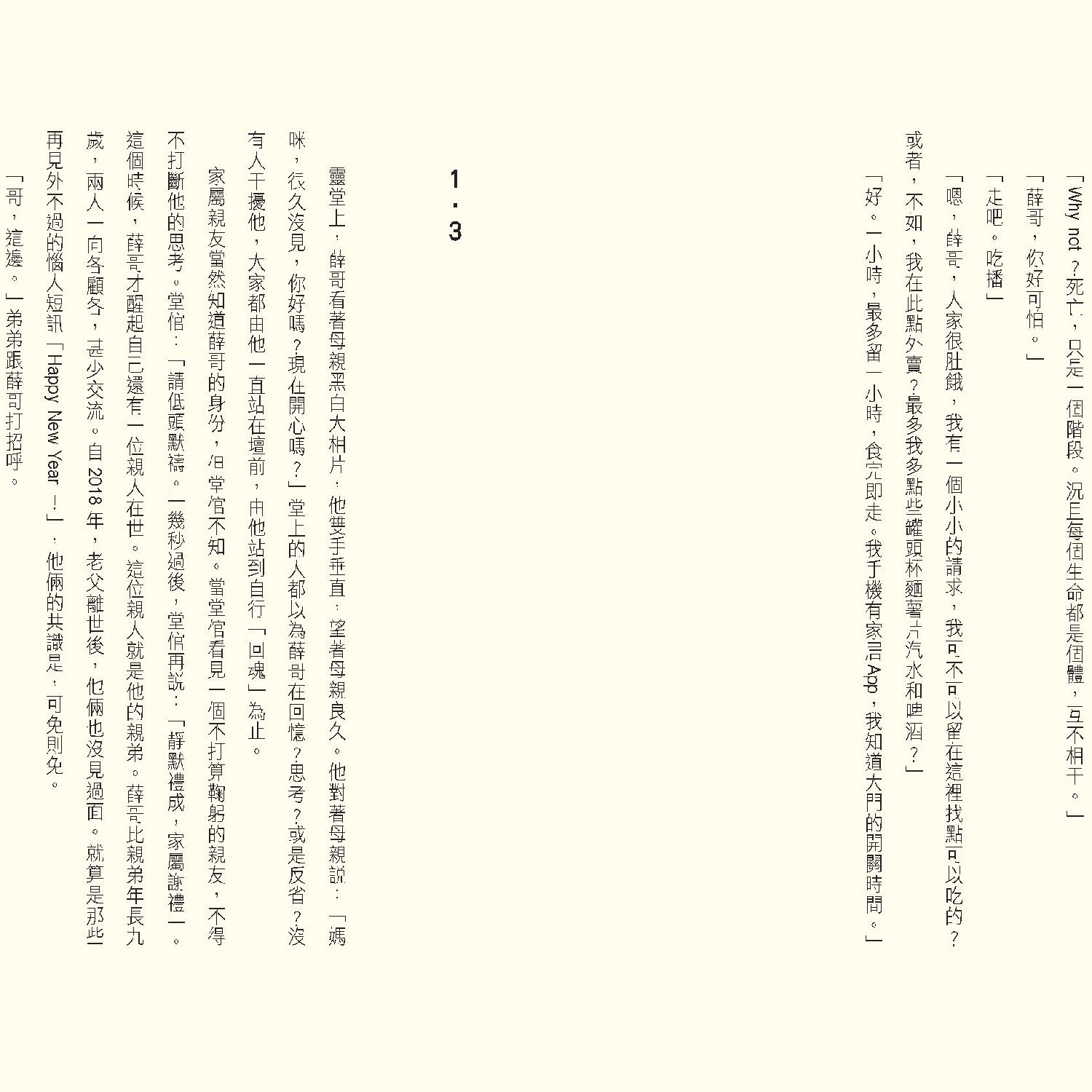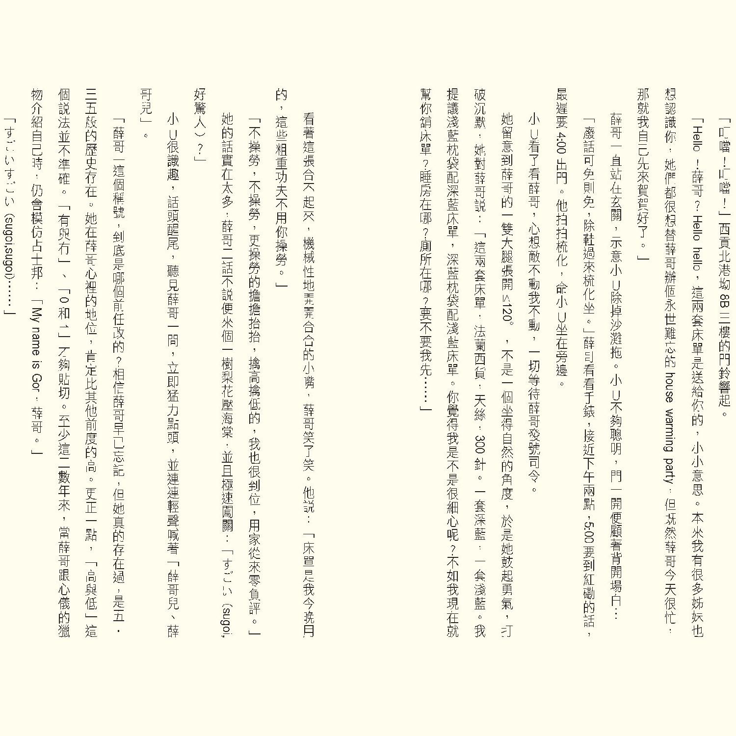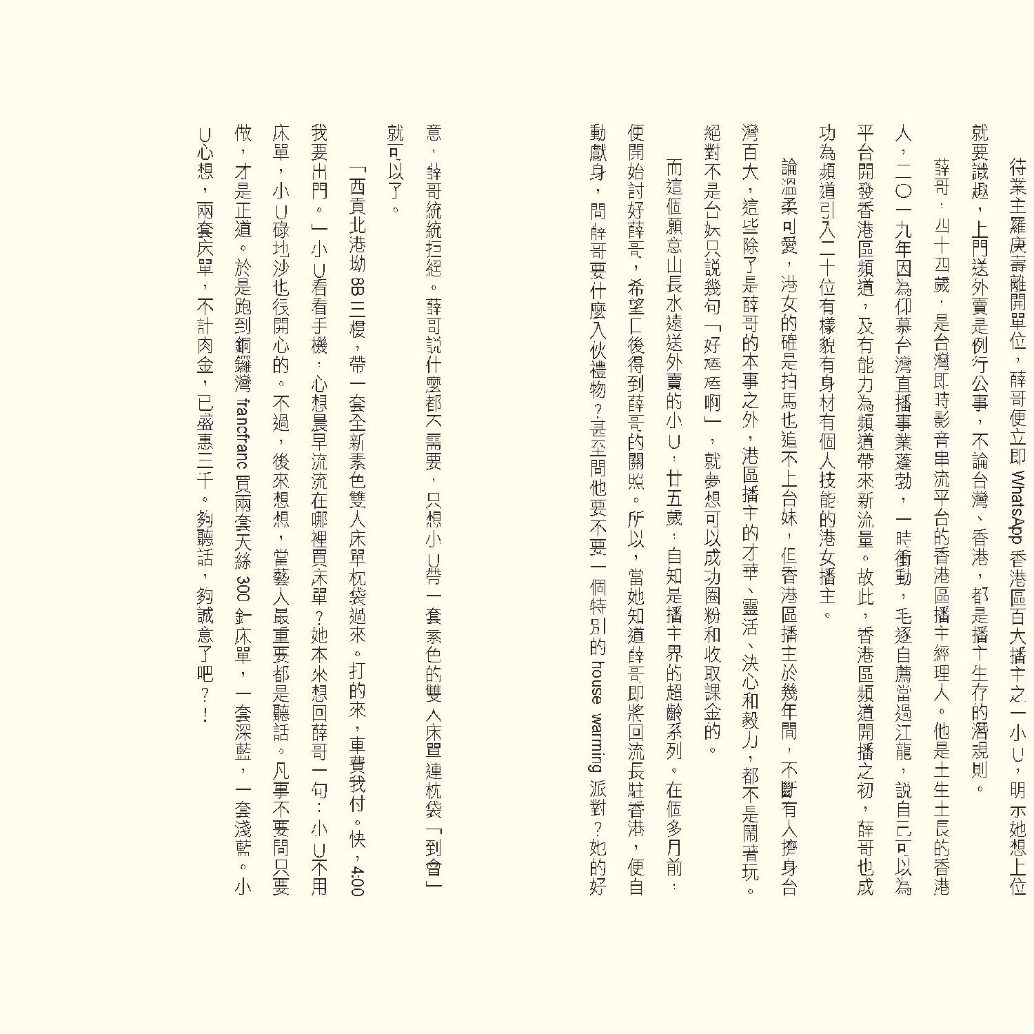 小說背景設置在香港這個繁忙的都市中,但在這座光鮮亮麗的城市背後,潛伏著深不可測的暗黑秘密與一段無法公開的情感糾纏。主角薛哥是台灣即時影音平台經理人,剛從台灣回流到香港後,為了重整自己的生活,他租下了一間位於西貢的公寓。故事從一場看似平靜的租房經歷開始,在薛哥搬入的公寓裡,前任租客的神秘消失,房東的言辭閃爍不定,而屋內不時出現的詭異現象,似乎在暗示著更大的陰謀在醞釀。