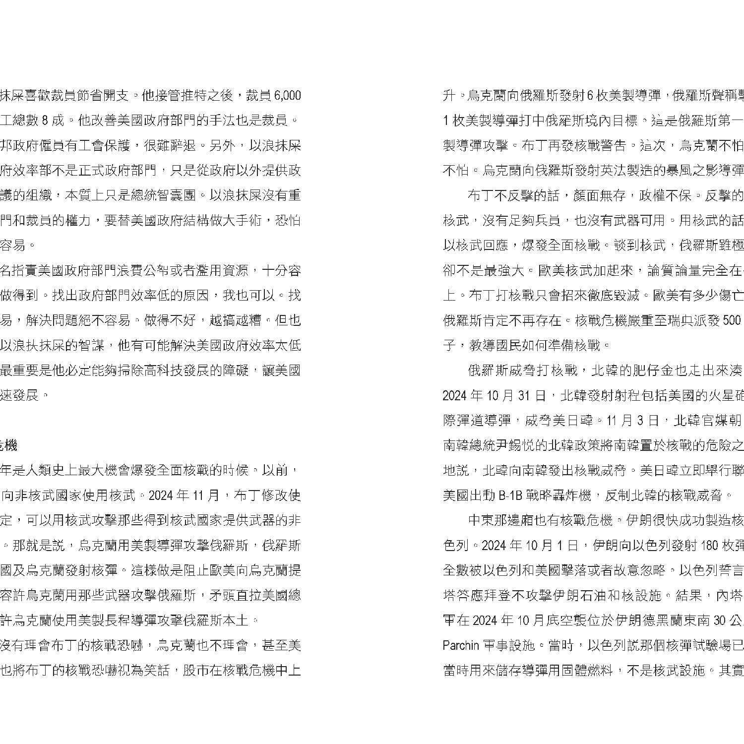 書中還探討了特朗普政策對全球科技競爭和太空科技發展的影響。他推動人工智能和太空科技,以保持美國領先地位,同時限制中國取得高端技術。這些舉措可能重塑全球科技格局,但也引發了更多的不確定性。