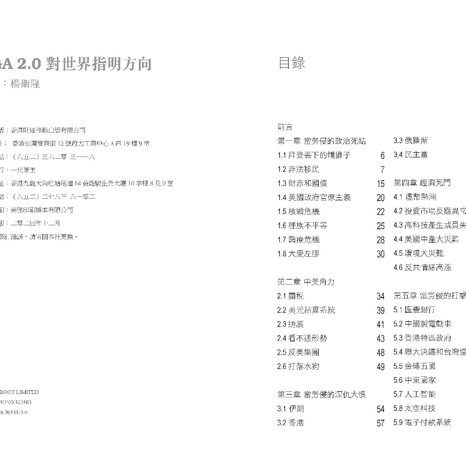 《MAGA 2.0對世界指明方向》是一部由楊衛隆撰寫的深入分析著作,探討特朗普再次當選美國總統後對國內外政治、經濟及社會的廣泛影響。作者以詳實的數據和深刻的觀察,描繪了特朗普「MAGA 2.0」政策可能帶來的全球變局,並揭示美國在新時代下的挑戰與機遇。