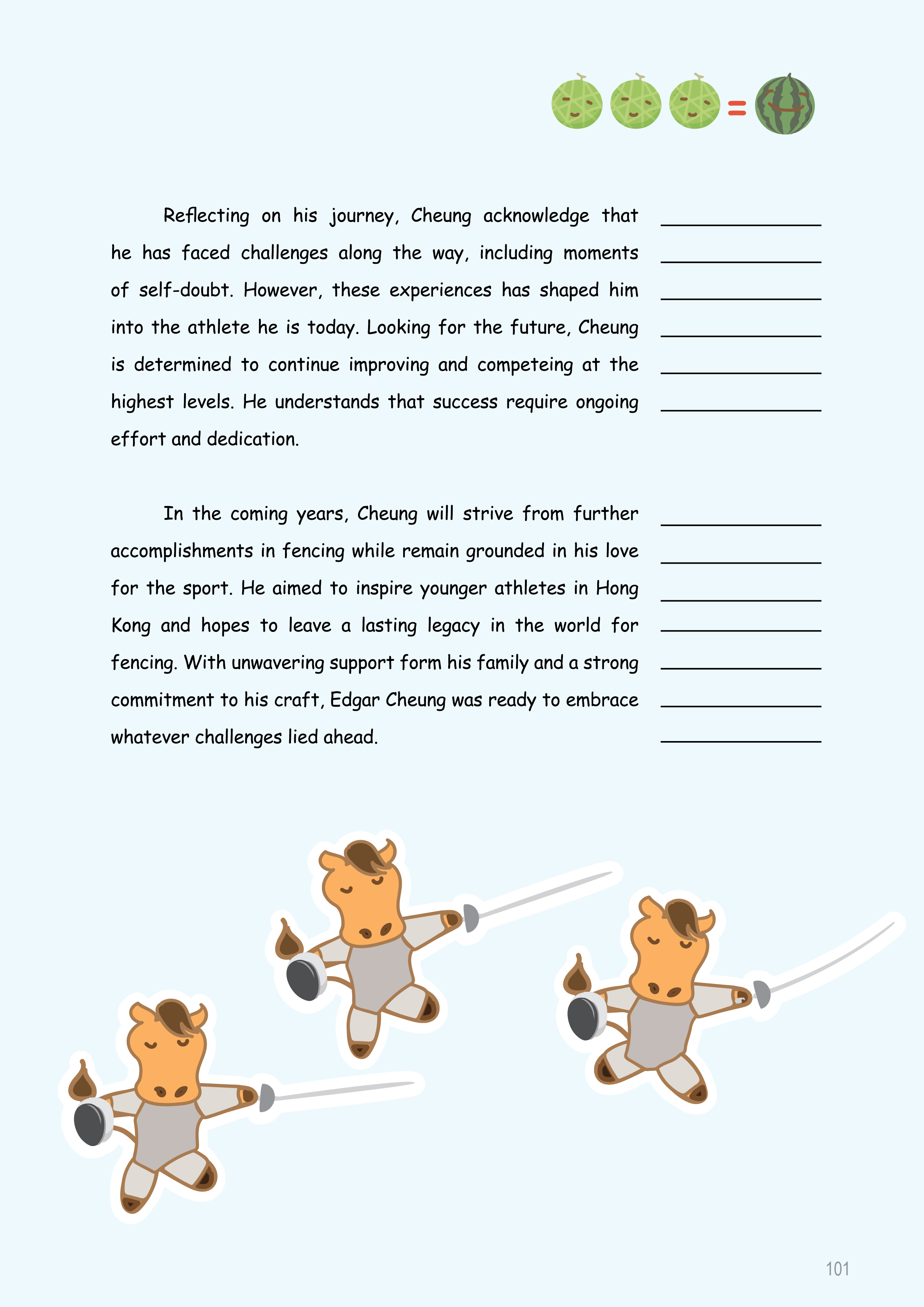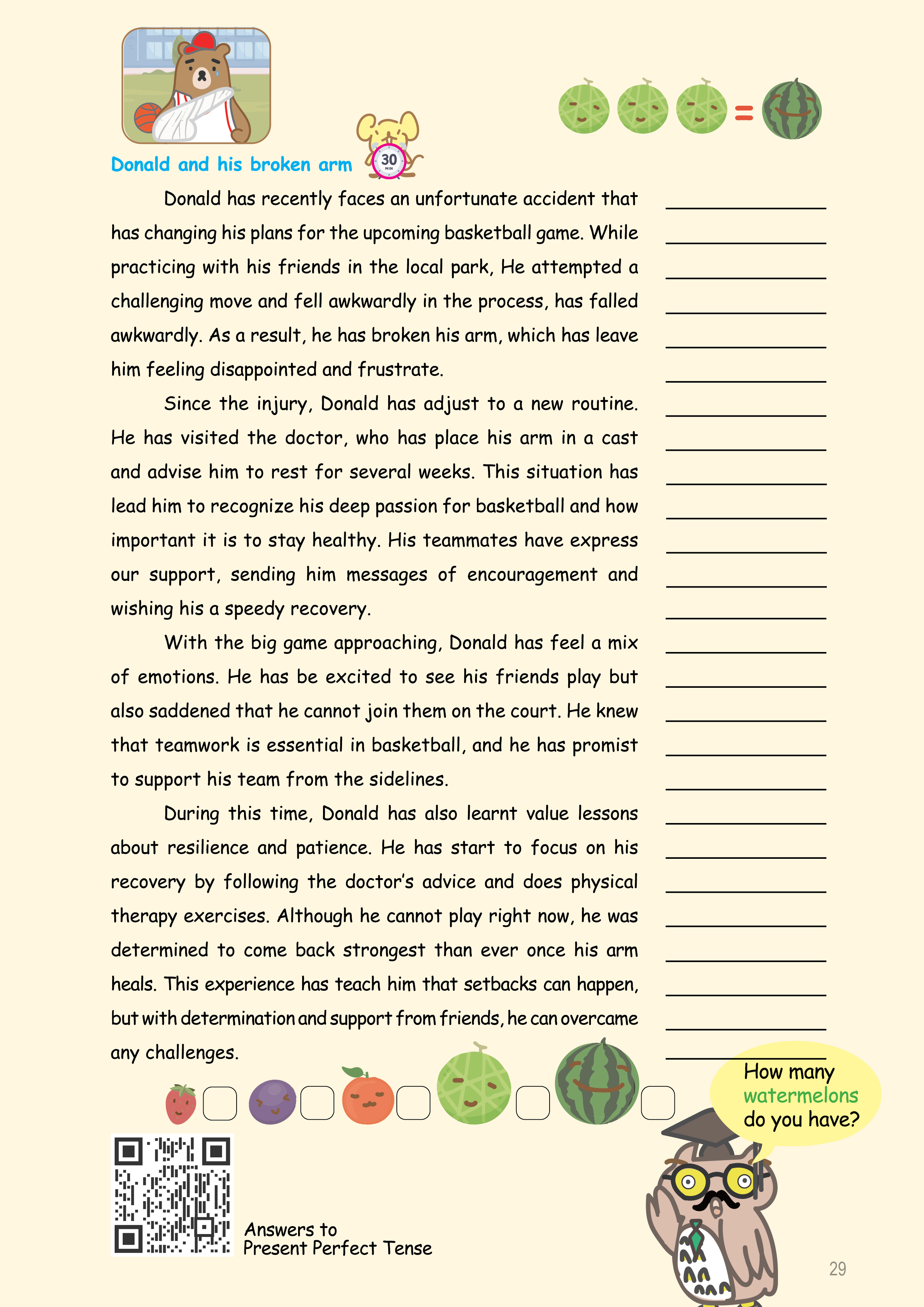 很多校對練習都比較單一,讓同學只專注於某一類型的錯誤。但實際上,測驗和考試中的題目通常涉及多方面的內容。所以,這部分不僅是針對時態進行練習,也提醒同學注意日常作業中容易犯的小錯誤。透過這樣多角度的校對,同學可以養成更全面檢查錯誤的習慣,避免粗心大意。Many exercises focus on one type of mistake, but real tests cover many areas. While practicing tenses, also pay attention to small mistakes you might make in daily work. This helps you avoid careless errors.