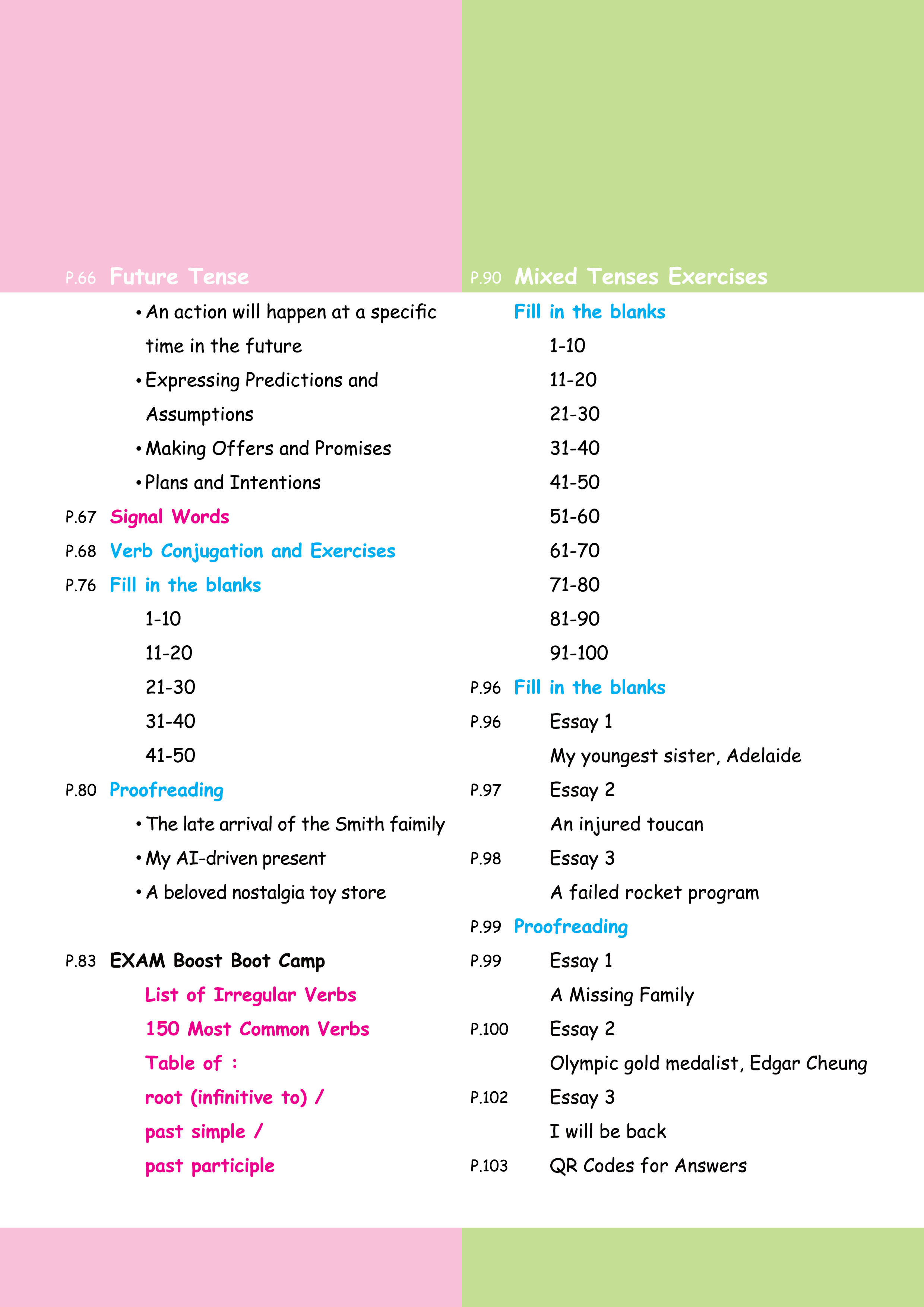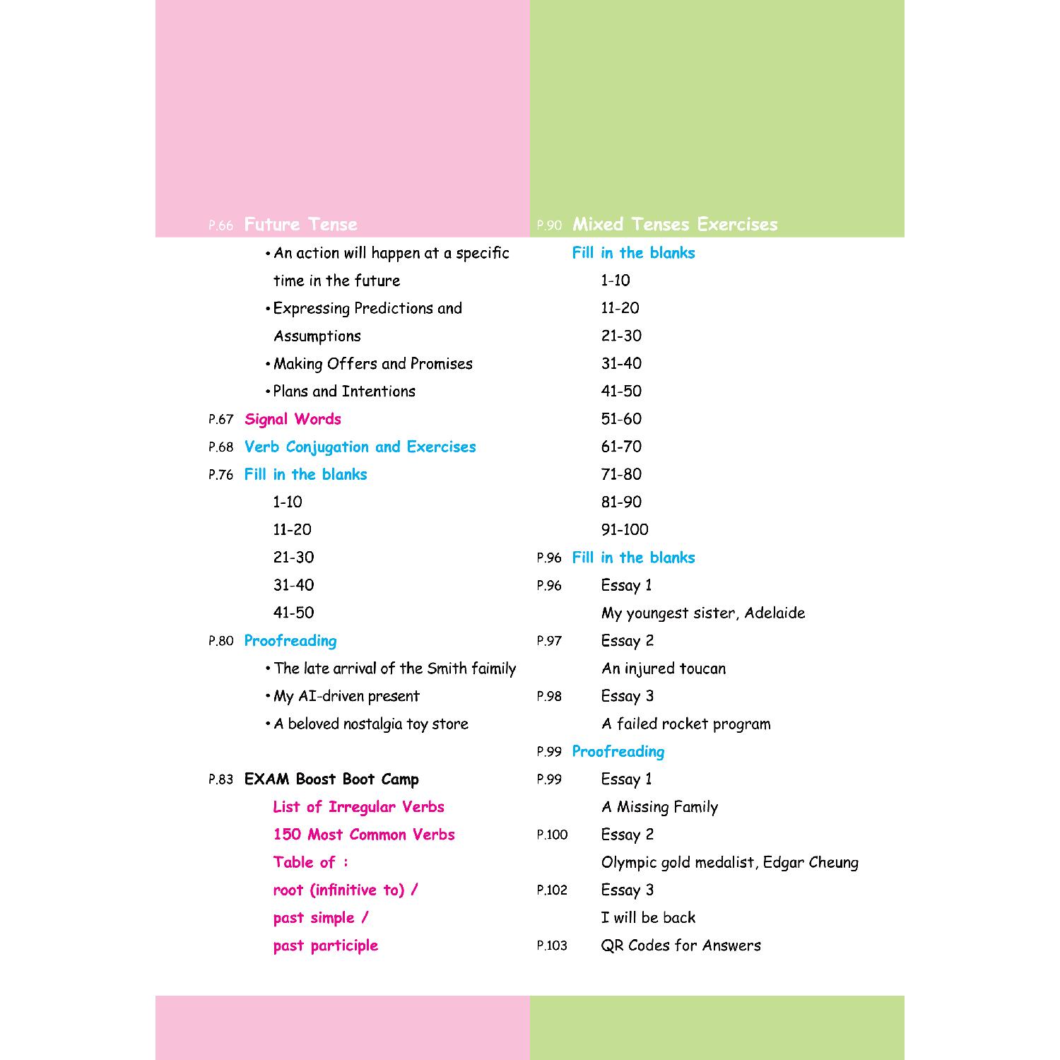 最有效的溫習方法,就是透過手、眼和大腦的協調來學習。這個練習將每個時態分為五個部分,讓同學一步步掌握語法。