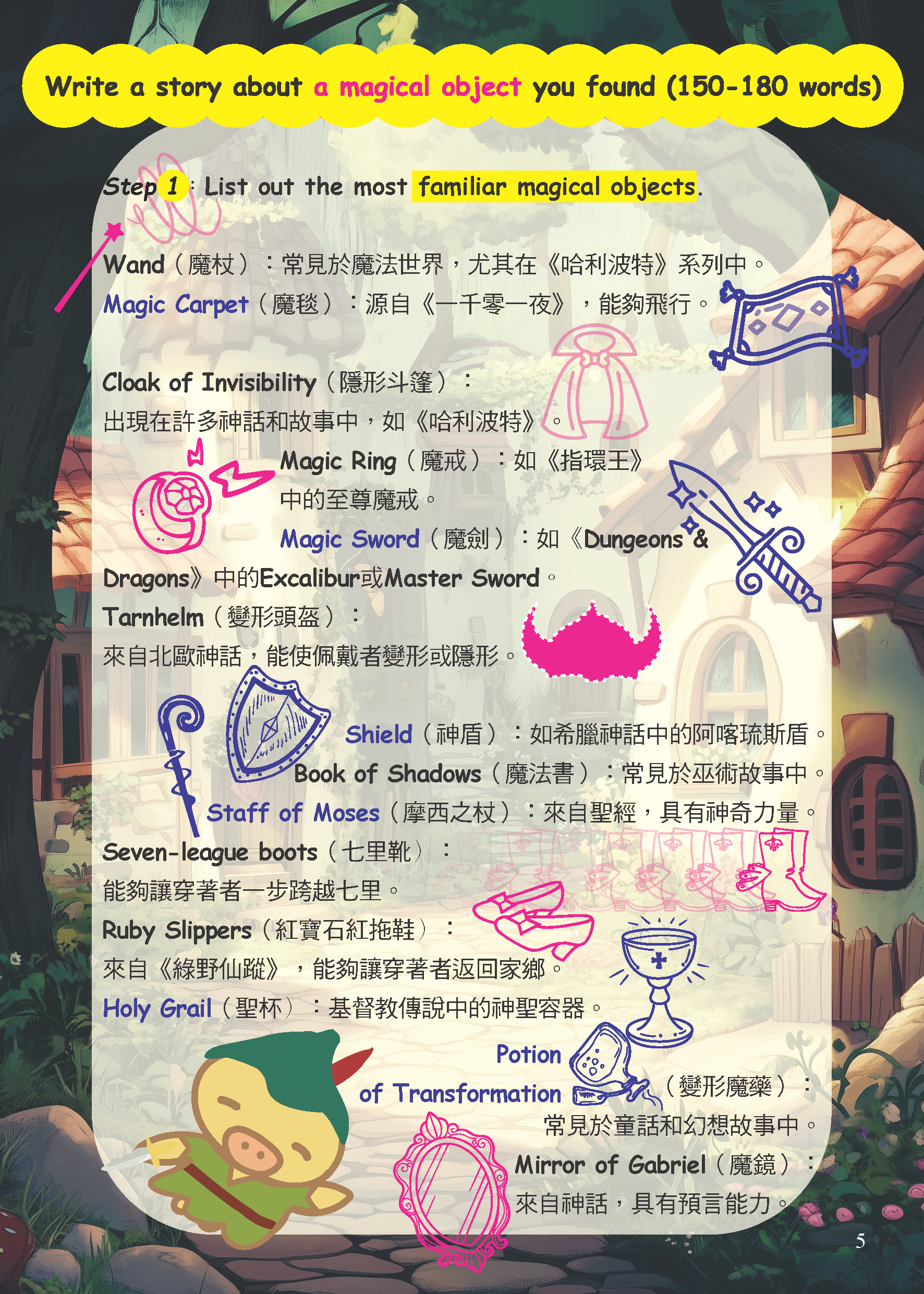 每個練習的首頁提供多個思考方向,幫助學生快速鎖定主題,並運用「三段法」進行寫作。