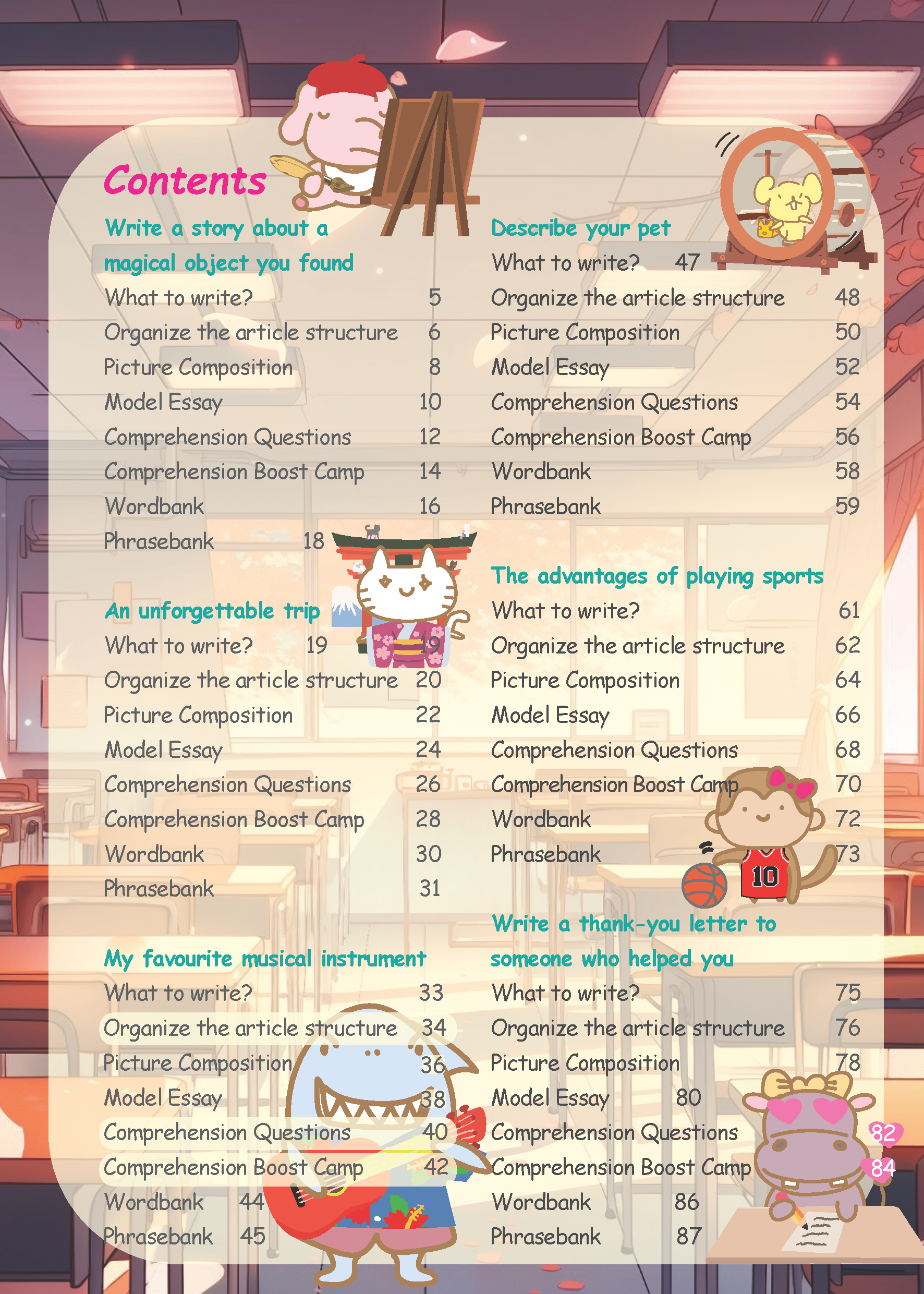 全面提升英文作文能力的指南《Grammar農莊 Comprehension and Writing Skills》是一部專為學生設計的英文作文指南,旨在解決學生面對作文題目時「寫什麼好呢」的困惑。全書共分六個練習,每個練習圍繞不同文體,幫助學生掌握多樣化的寫作技巧。