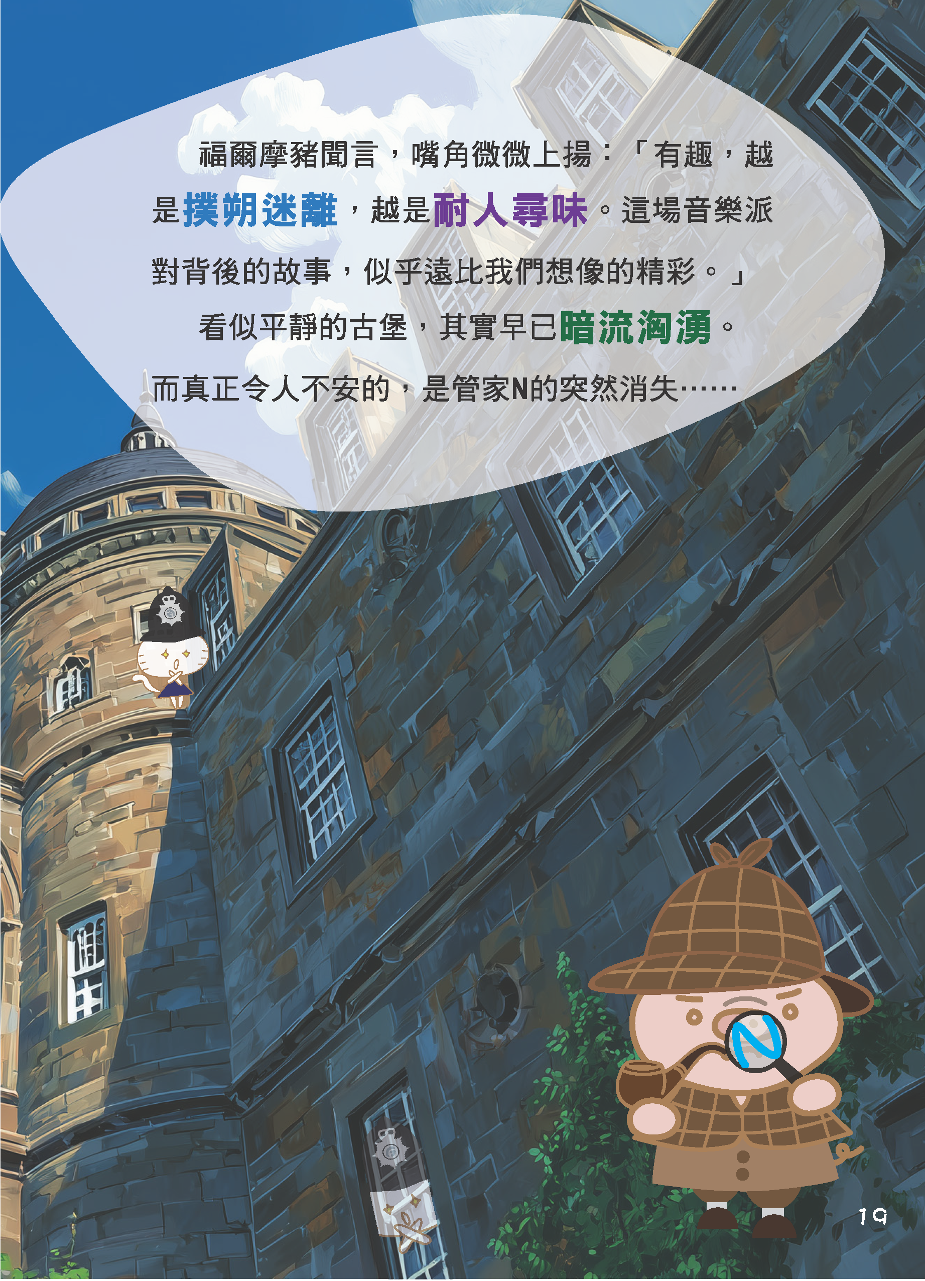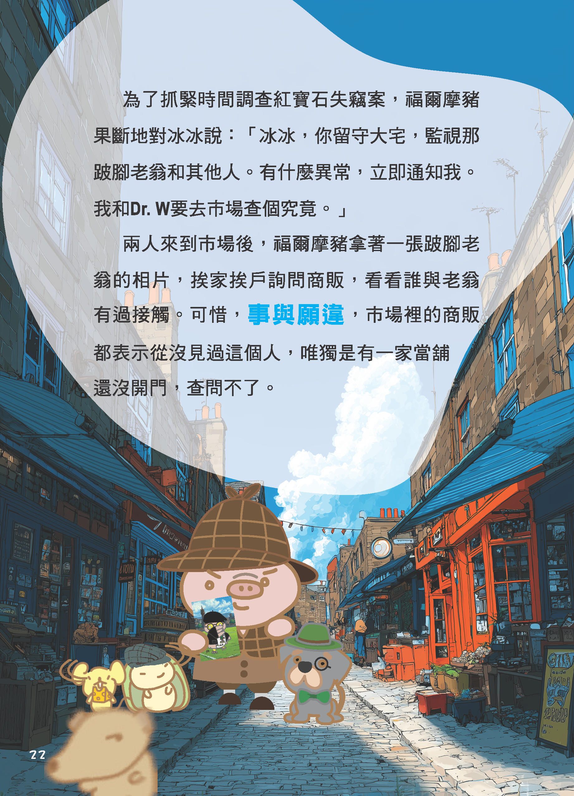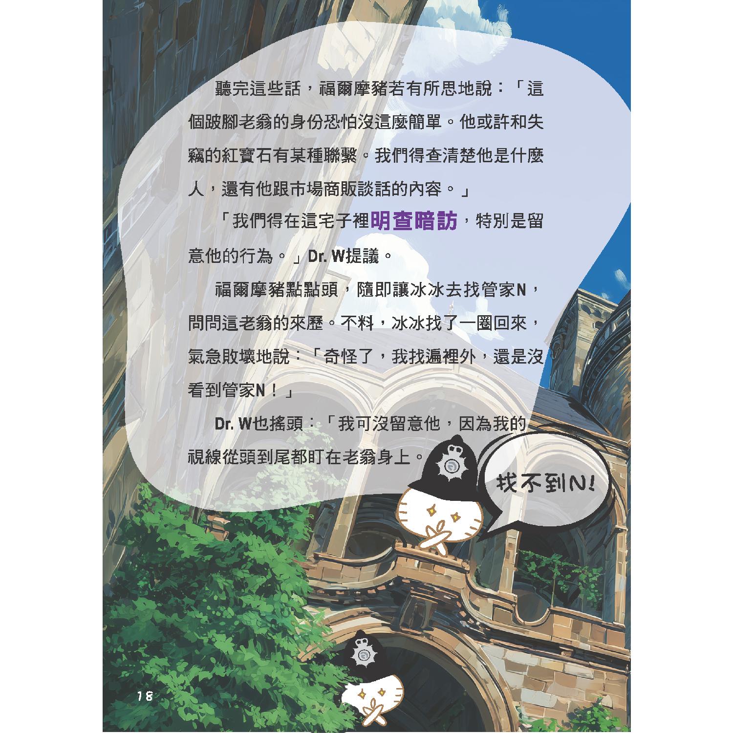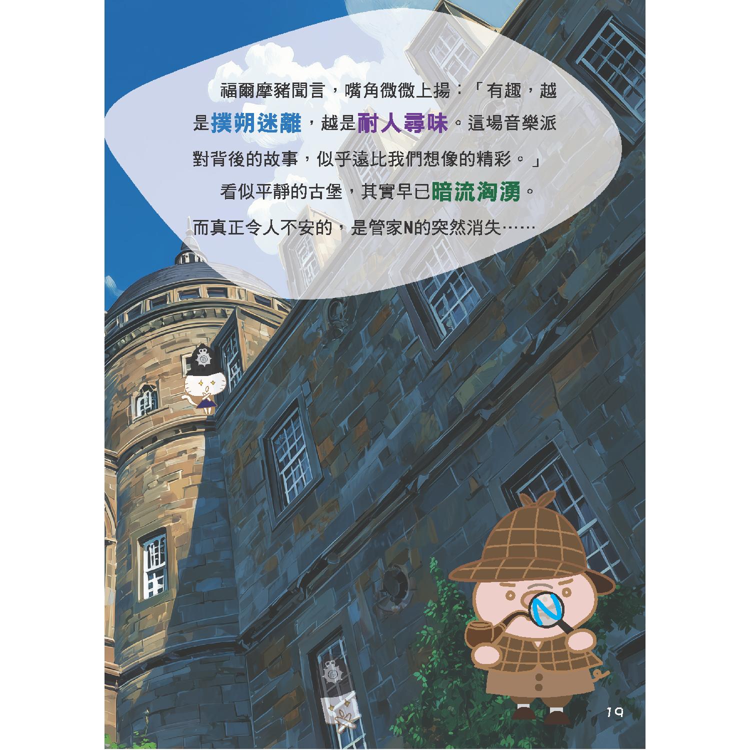 紅寶石失竊、神秘老翁現身、管家突然失踪,豪宅裡的節日氣氛,由福爾摩豬推開大門的那刻起,一切瞬間變得疑雲重重。明明是貴族派對,卻出現了拐著腳、衣著寒酸的怪客;明明是最得主子信任的管家,卻在關鍵時刻消失得無影無蹤。究竟,這是一場設計精密的失竊案,還是一場精巧的多重身份佈局?