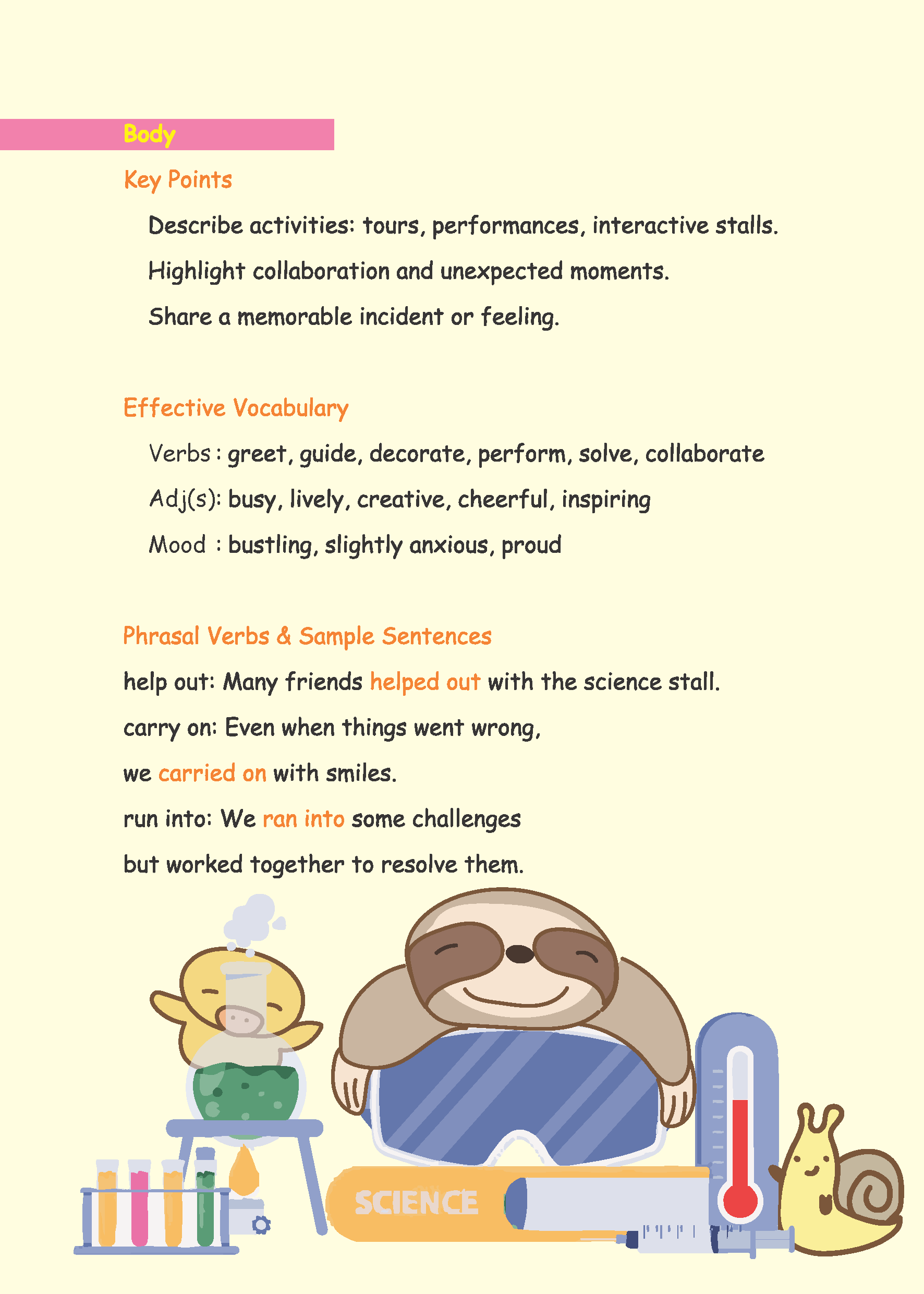 主題貼近校園生活:學校開放日、圖書館助理申請信、手機使用爭議、校車意外與運動會奇遇,讓學習與真實經驗緊密結合,既訓練英語能力,也培養觀察與反思。