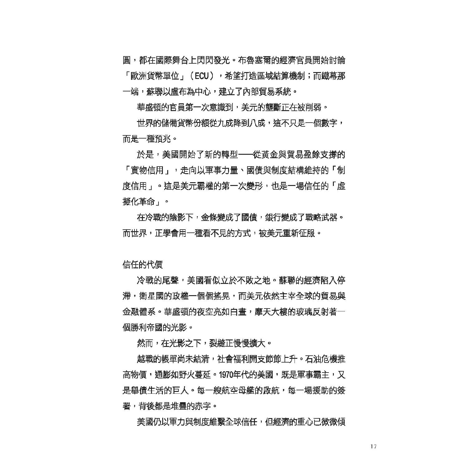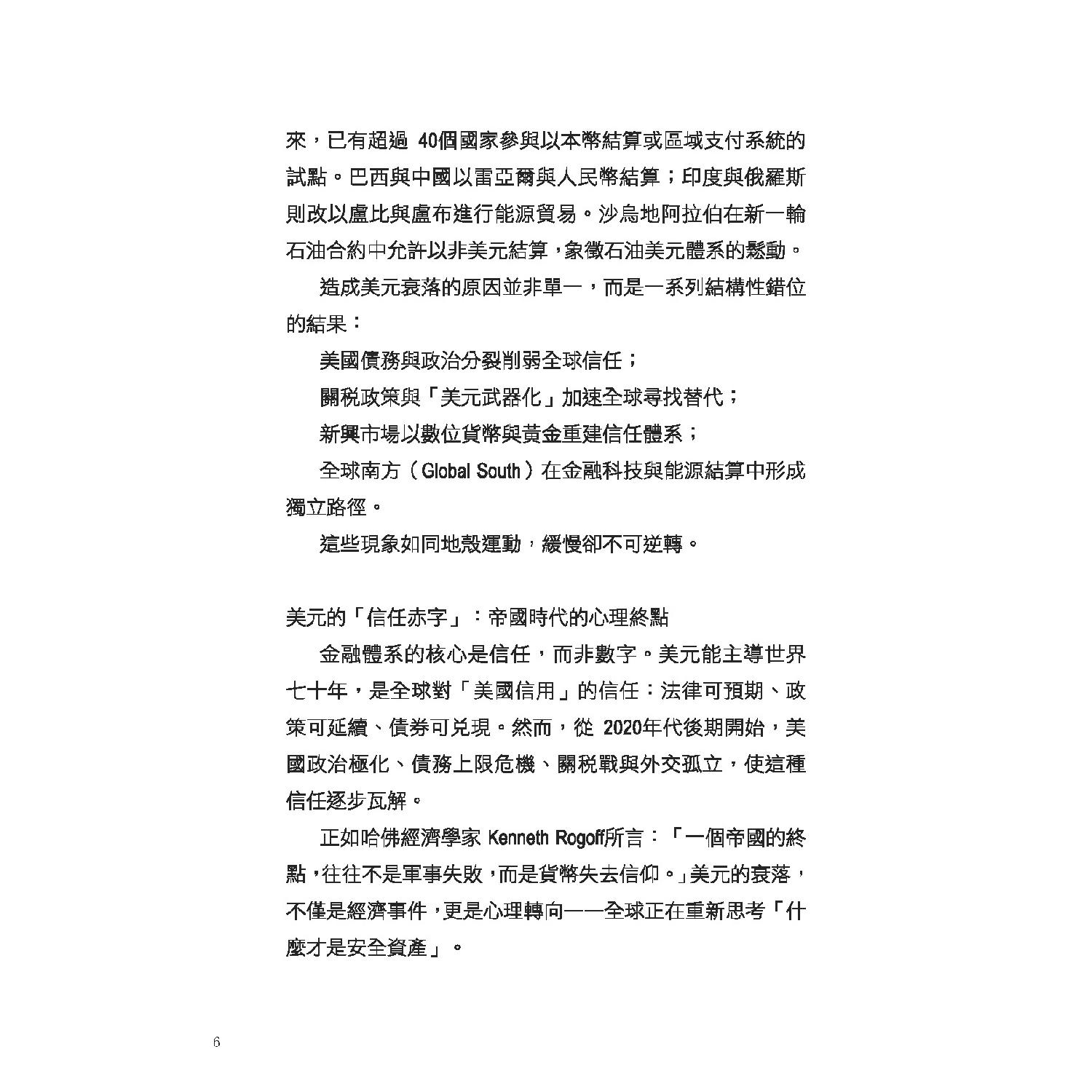 本書透過第一手數據、全球貨幣流向與地緣政治解析,帶你看清美元霸權的內部裂縫與外部衝擊: