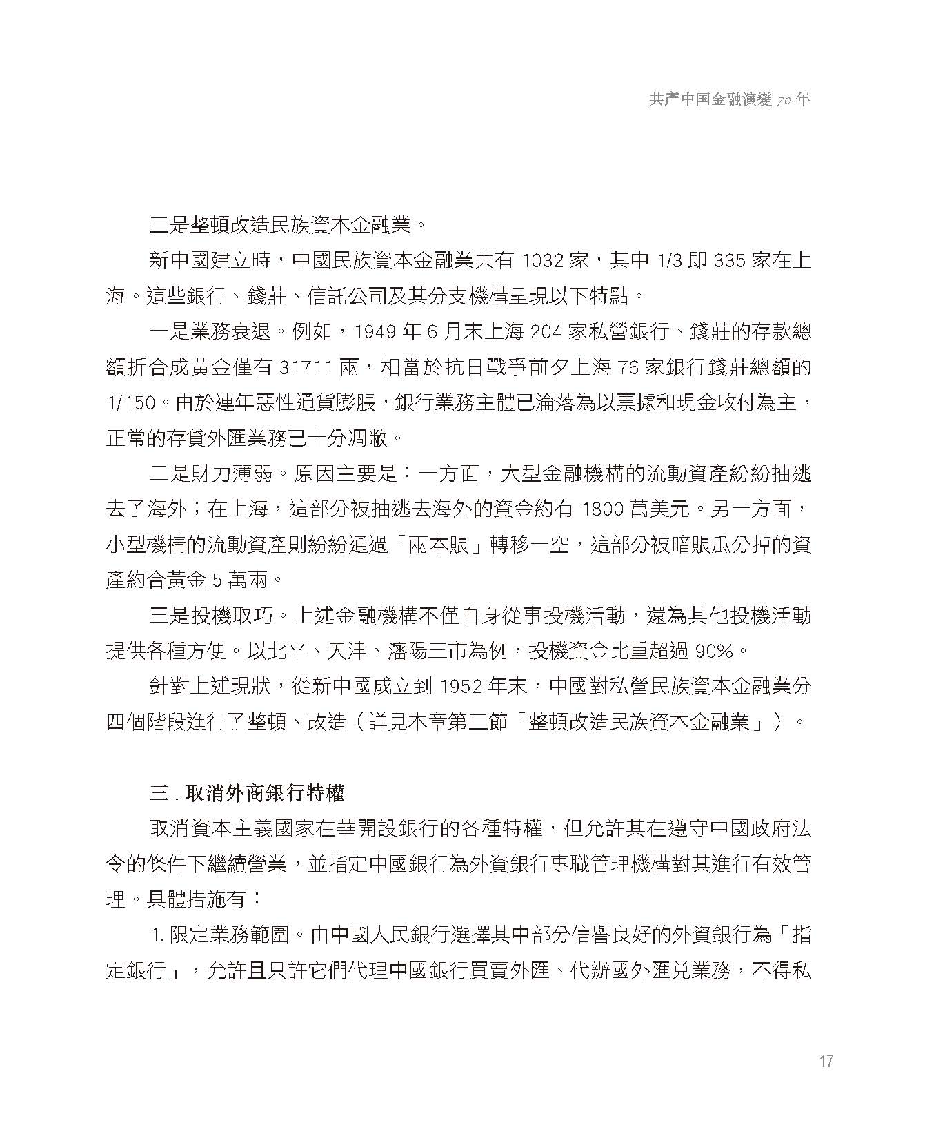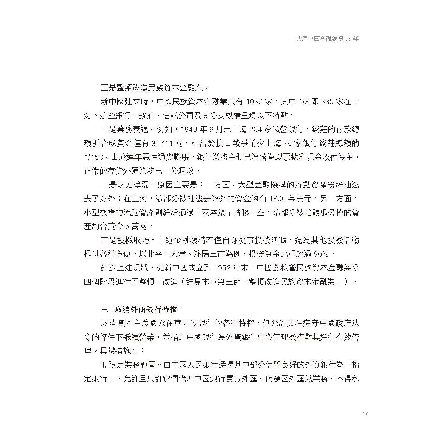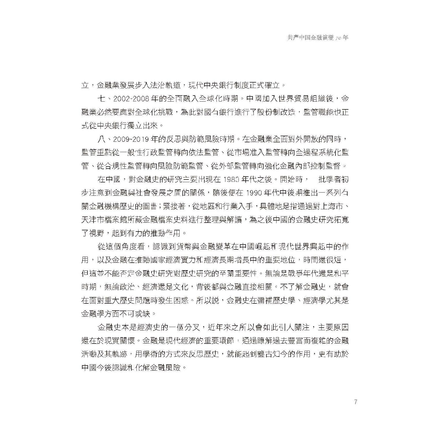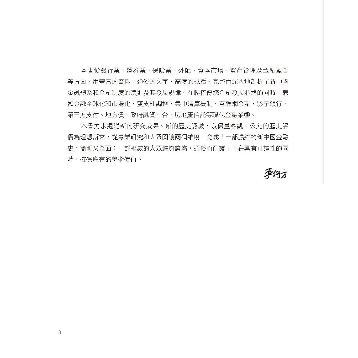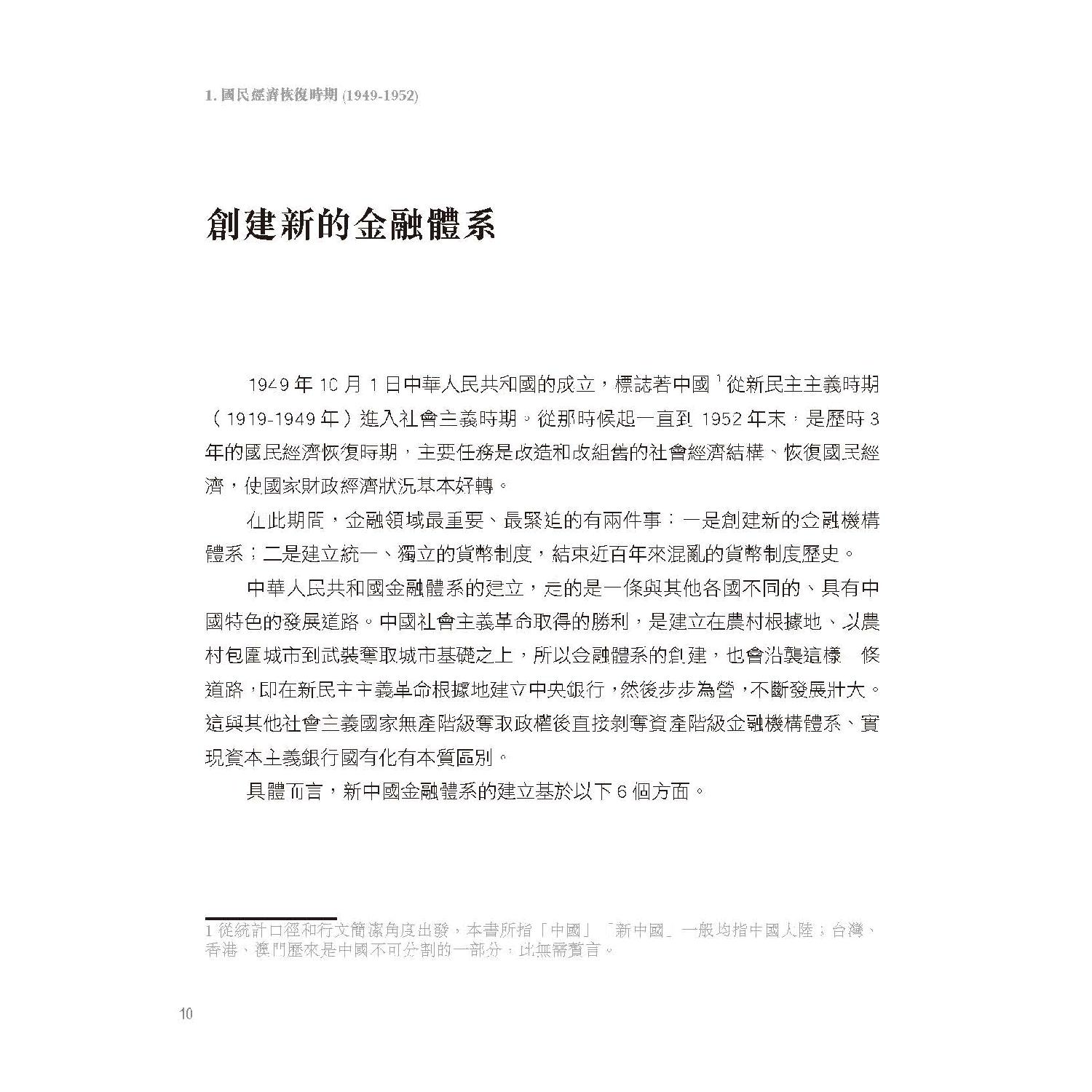 本書力求通過新的研究成果、歷史認識,以儘量客觀、公允的立場,從專業研究寫成一部濃縮的新中國金融史,簡明又全面;在具有可讀性的同時,確保應有的學術價值。