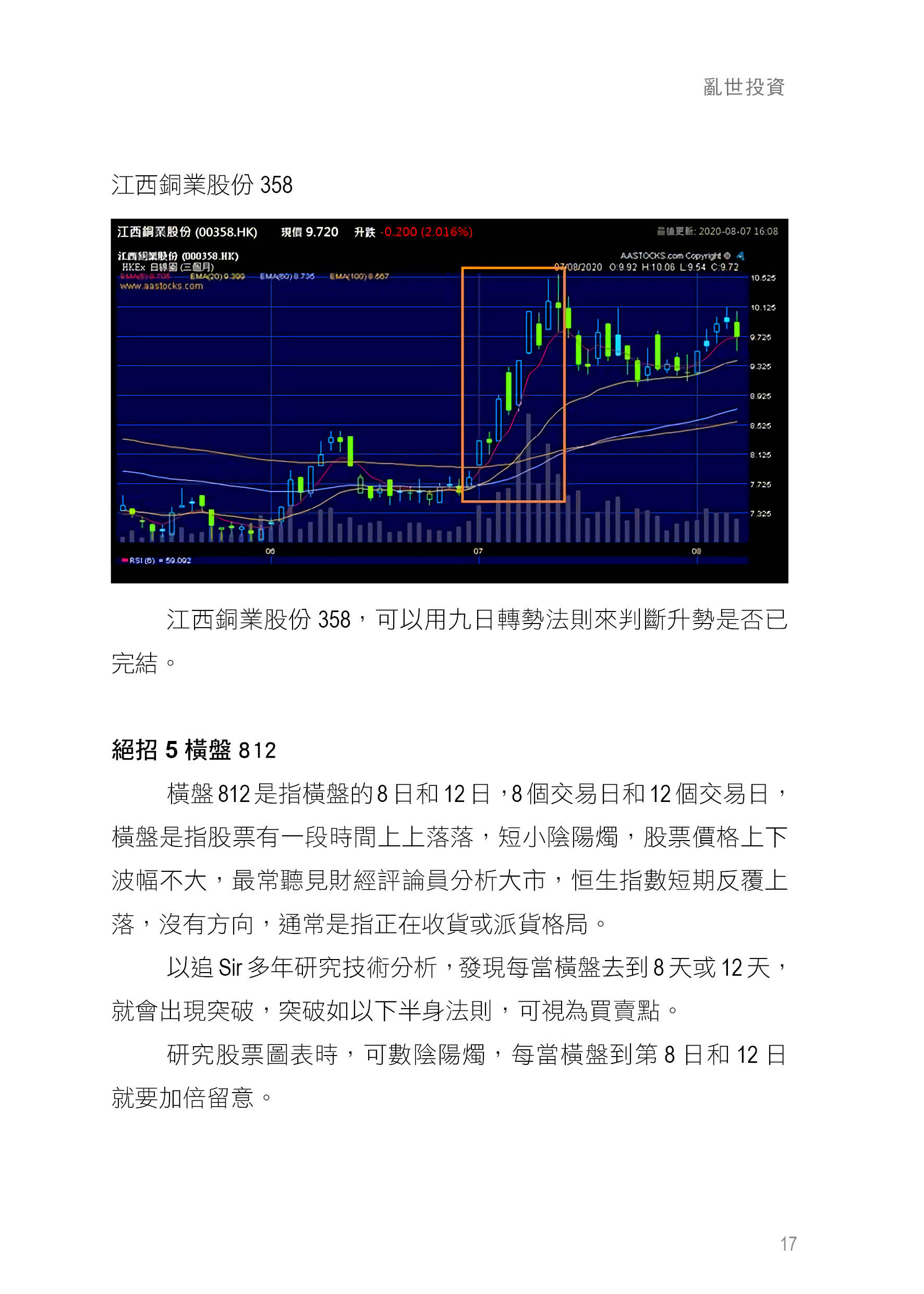 止賺究竟又是怎樣計算的呢?最重要的原則,是回報對比止蝕起碼是2:1。如果投資好像擲銀仔一樣,贏輸是50%:50% 的機率,那麼你需要的回報對比風險便會是2:1了。好多人的投資命中率不會是50%,可能是30% 或者40%,那麼便需要提升回報風險比率了。上述情況會發生在散戶或者一些趨勢交易的操盤手,命中率普遍不會超過50%,投資的止賺或者波段目標價便需要定得較高。通常來說,可以使用3:1或者4:1作回報止蝕的比率,即是如果你是以10元股價作止損的話,止賺理應要在20 元以上,甚至乎需要定在30元或者40元了。而目標價可以使用到長勝文中談及的Fibonacci Bands 的位置。