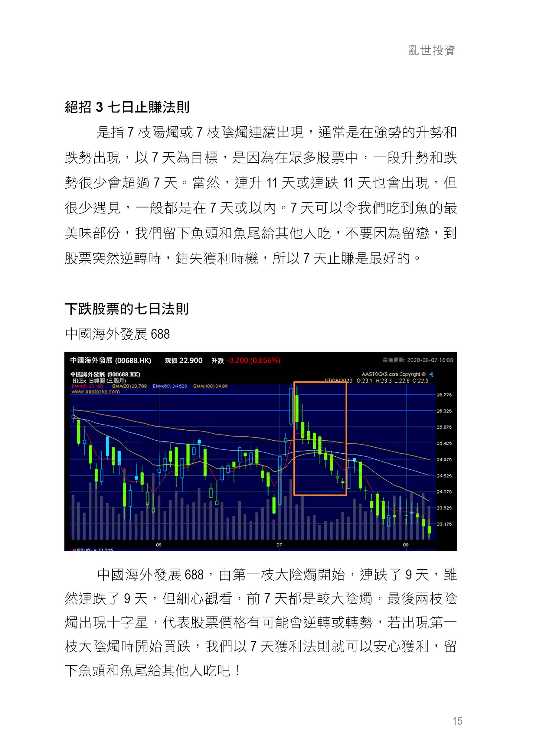 所以我們投資時只能取一部分資金,例如投資本金的20%,那麼就算你是損失了20%,你下一把只要100% 除以80%,也就是125% 便可以平手,要追的難度相對地就會低好多。如果把止蝕設定為總本金的2%,假若輸了的話你只需要下一把有102.4% 便可以平手。因應不同投資品種的風險,我們應該控制好倉位,並最好分段買入或者賣出,尤其是在操作槓杆式交易時,更加需要嚴守止蝕。