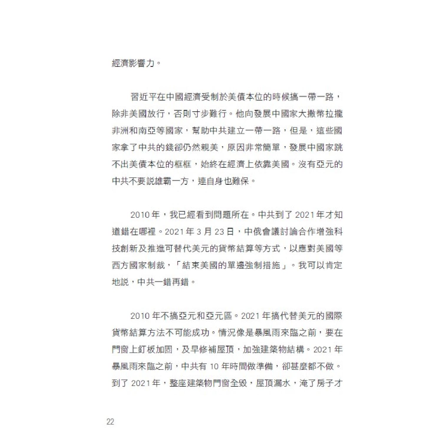 另外,全球軍事、政治和經濟形勢有很多暗湧,美債和美元資產是最佳避險工具。美國大量發債都會有買家。只要全球局勢不穩,拜登任內舉債振興經濟和穩住經濟,是中國和香港辦不到的事情。