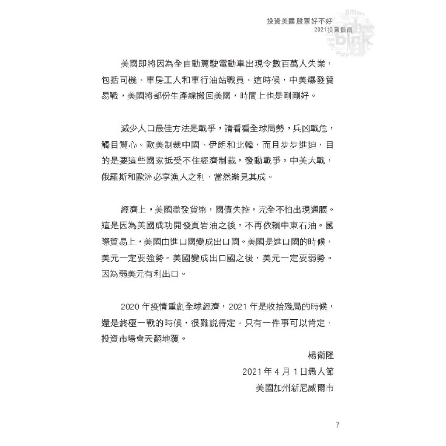 美國高科技公司有極佳盈利前景,例如電動車和藥物等等。在高科技方面,美國確實領導全球,這是無可爭議的事情。在高科技突破和主導市場的時候,投資美股才是明智。