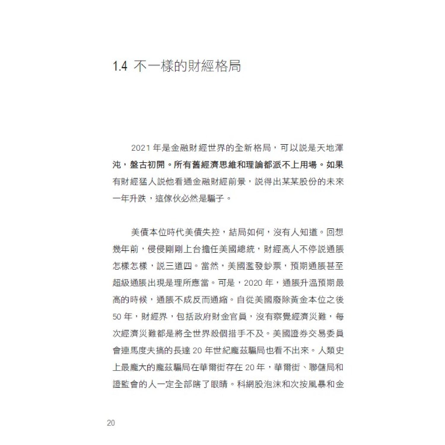 2021 年的投資策略應該在投資組合方面,維持實質比例的現金和真金白銀,要承擔樓按貸款的地產投資可免則免。減債和重視資產流通性,是應付黑天鵝突變的最佳策略。進取一點的話,石油和航運以外的民生必需品和工業相關股份,例如農業漁業……。