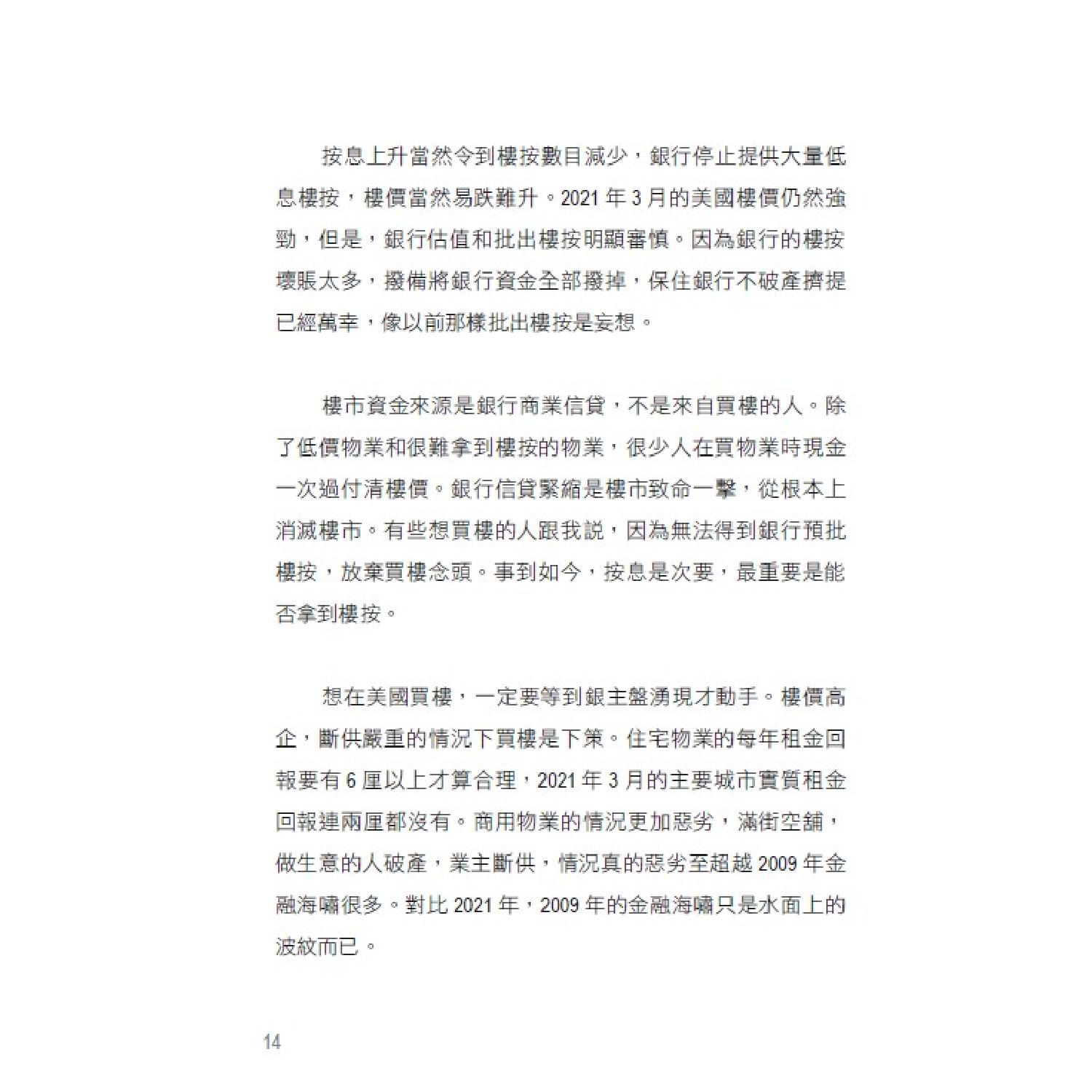 想在美國買樓,一定要等到銀主盤湧現才動手。樓價高企,斷供嚴重的情況下買樓是下策。住宅物業的每年租金回報要有6厘以上才算合理,2021年3月的主要城市實質租金回報連兩厘都沒有。商用物業的情況更加惡劣,滿街空舖,做生意的人破產,業主斷供,情況真的惡劣至超越2009年金融海嘯很多。對比2021年,2009年的金融海嘯只是水面上的波紋而已。
