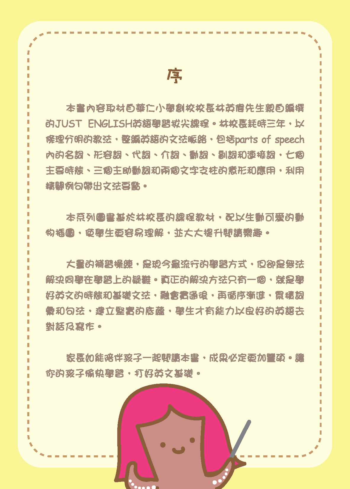 為了提高同學學習英文的興趣,我們特別編制這套《Grammar 農莊》,以生動可愛的動物角色,去說明英語文法、用字、句語結等,讓學生以愉悅的心倩,於短時間內提升英語水平及運用能力,增強學習信心及獲取優良學業。