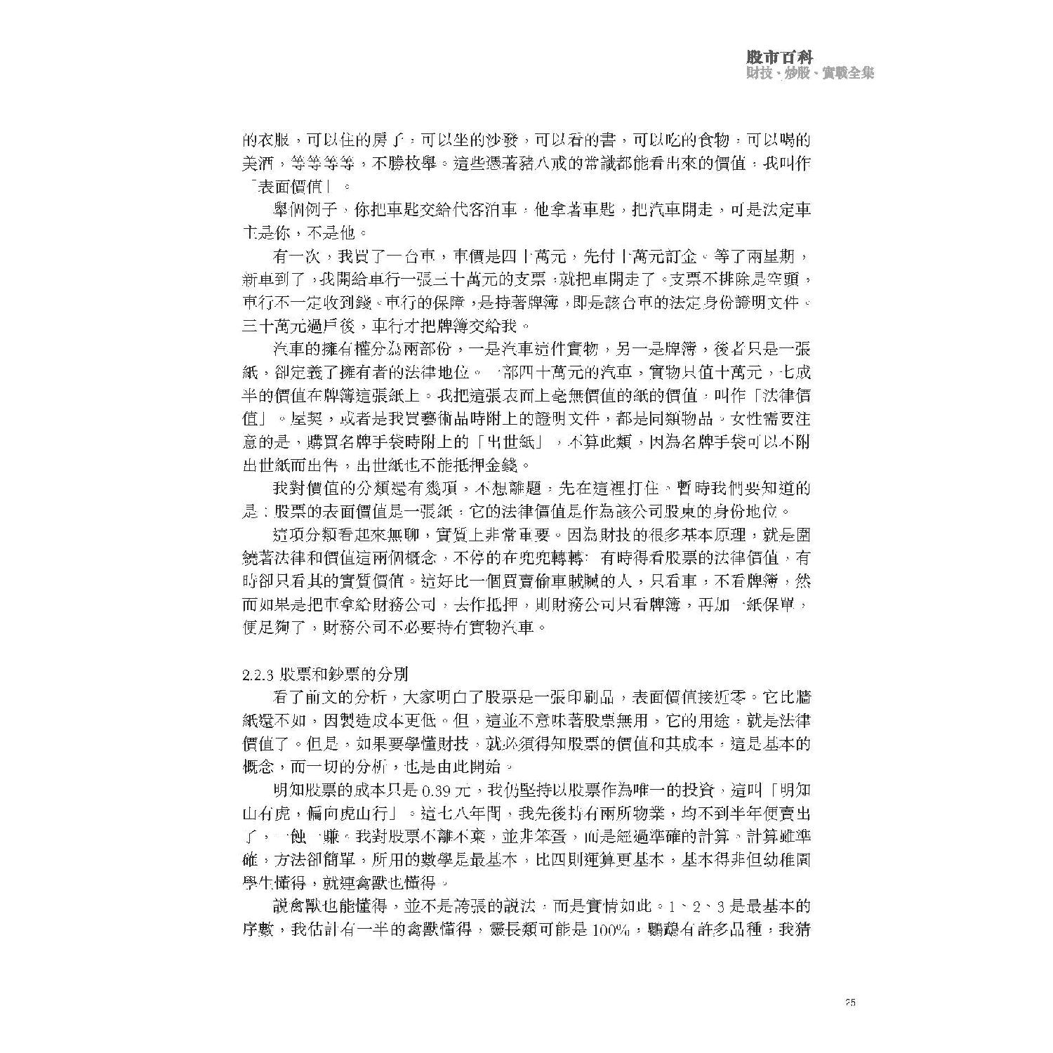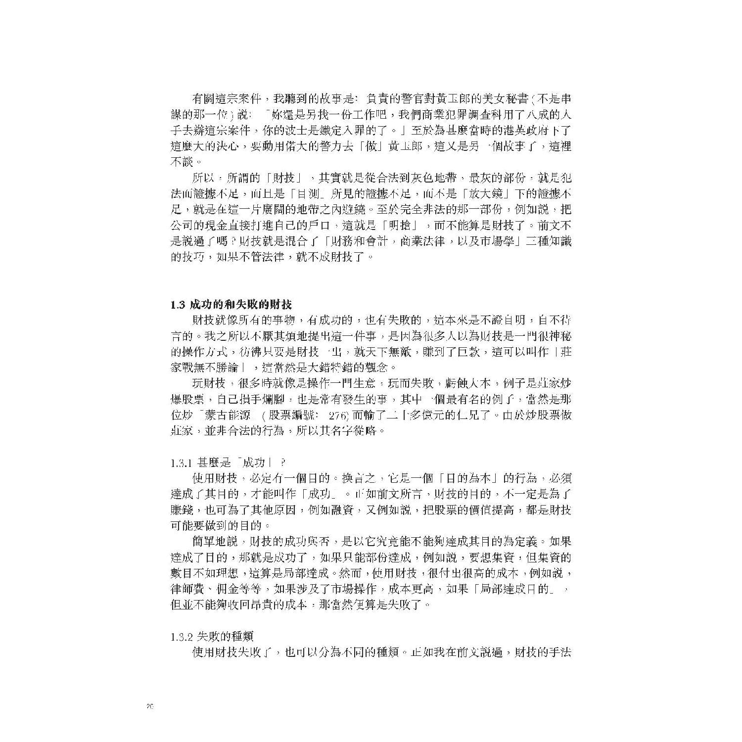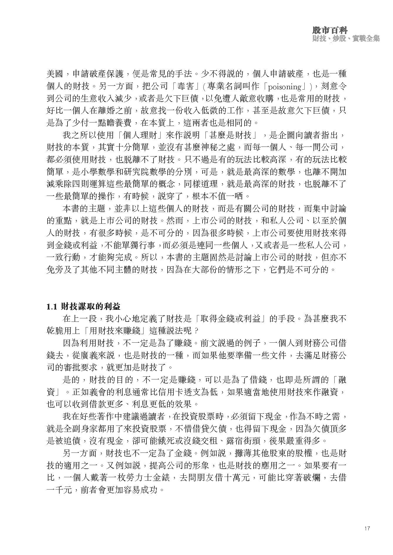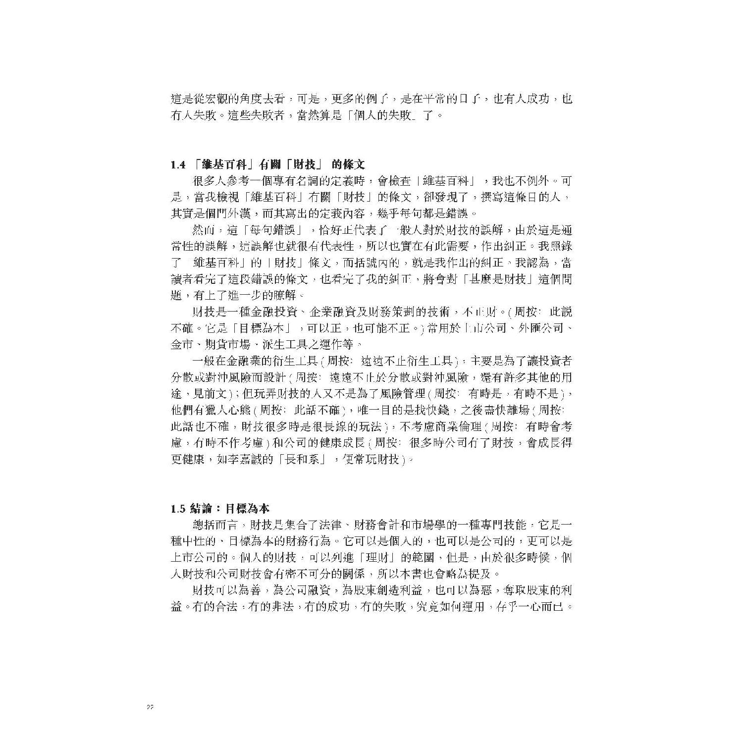 「財技炒股法」是古已有之的炒股形式,多少年來,一直被股市中人應用。本書是第一本把這個行內「秘密」整理寫成的專書,內容兼收並蓄,廣集各家的知識,成一家之言。內文的例子,有新有舊,層層累積,舊的個案,事雖不再新鮮,但基於例子只是用來說明理論,其是新抑或是舊,非但無傷大雅,反而更可令讀者警惕:「哦,原來以前曾經用過這一招,以後可要小心了。」