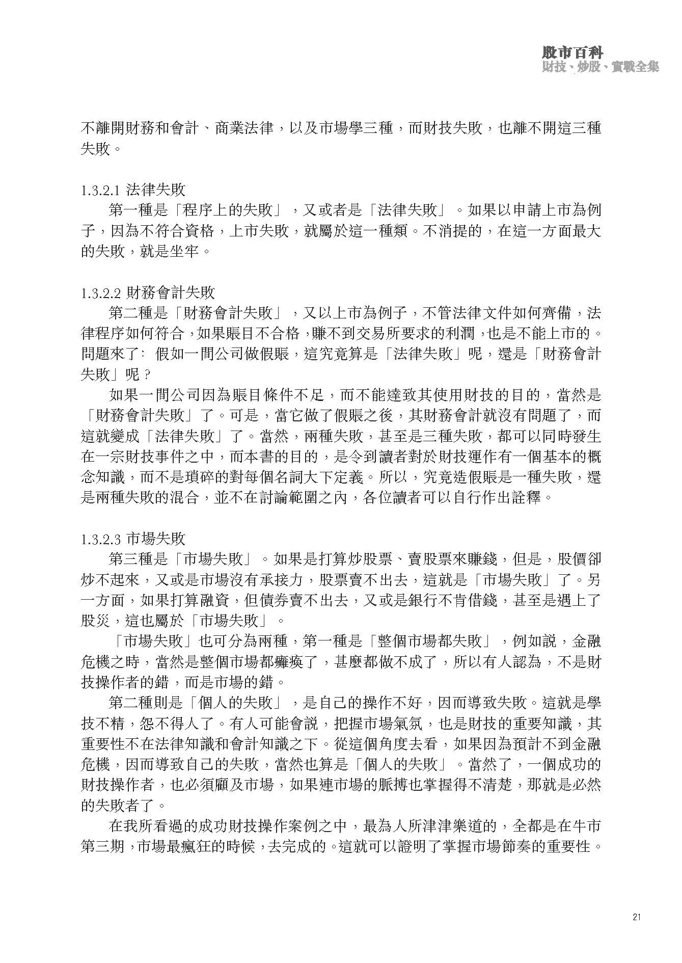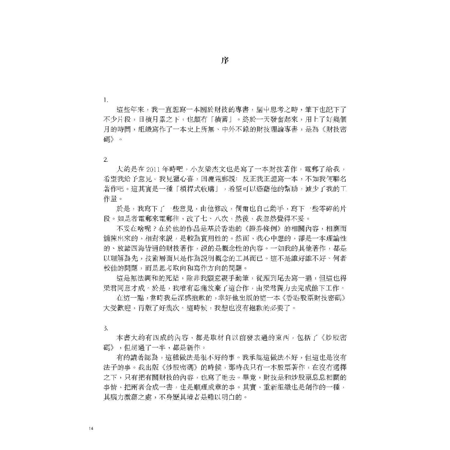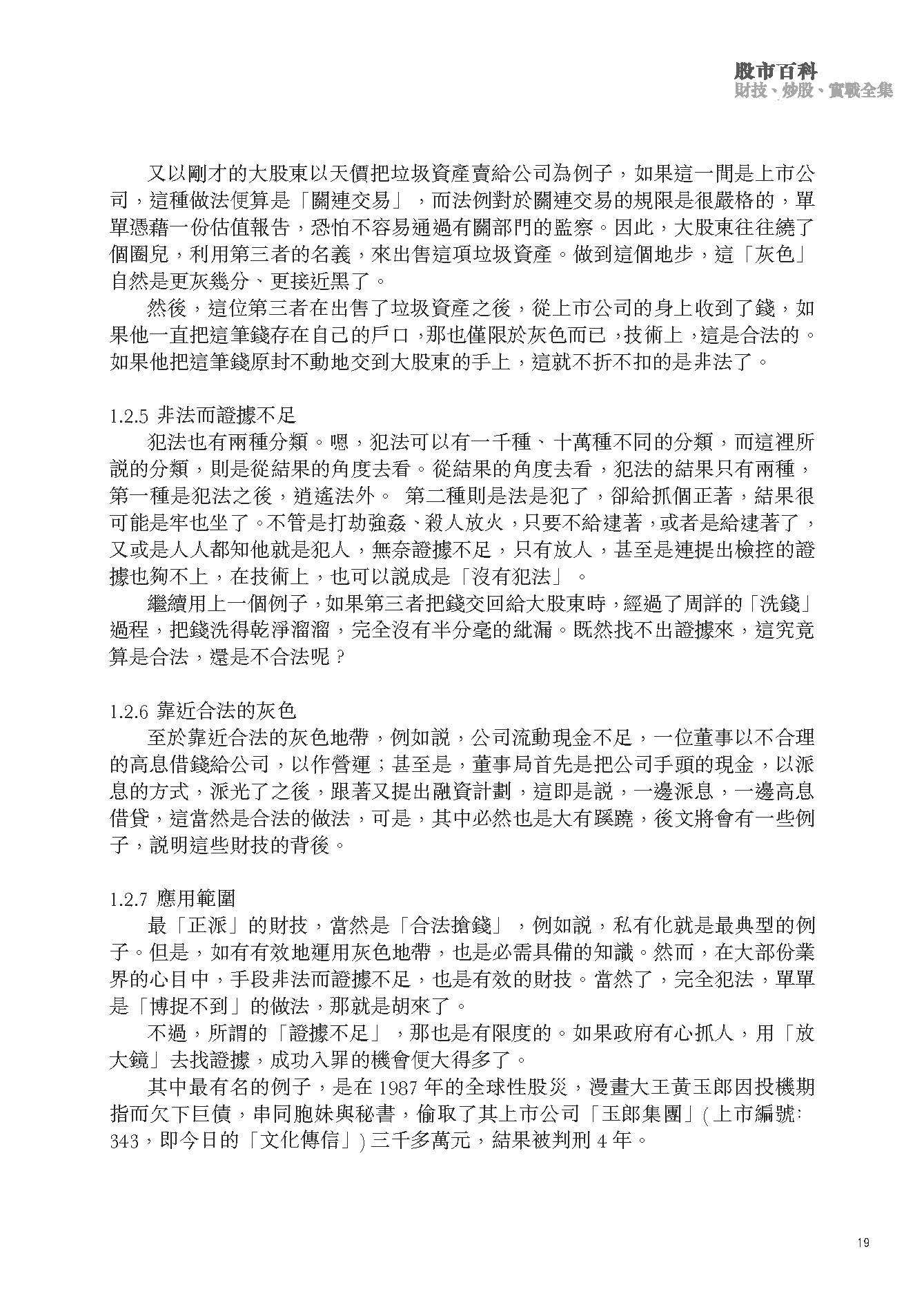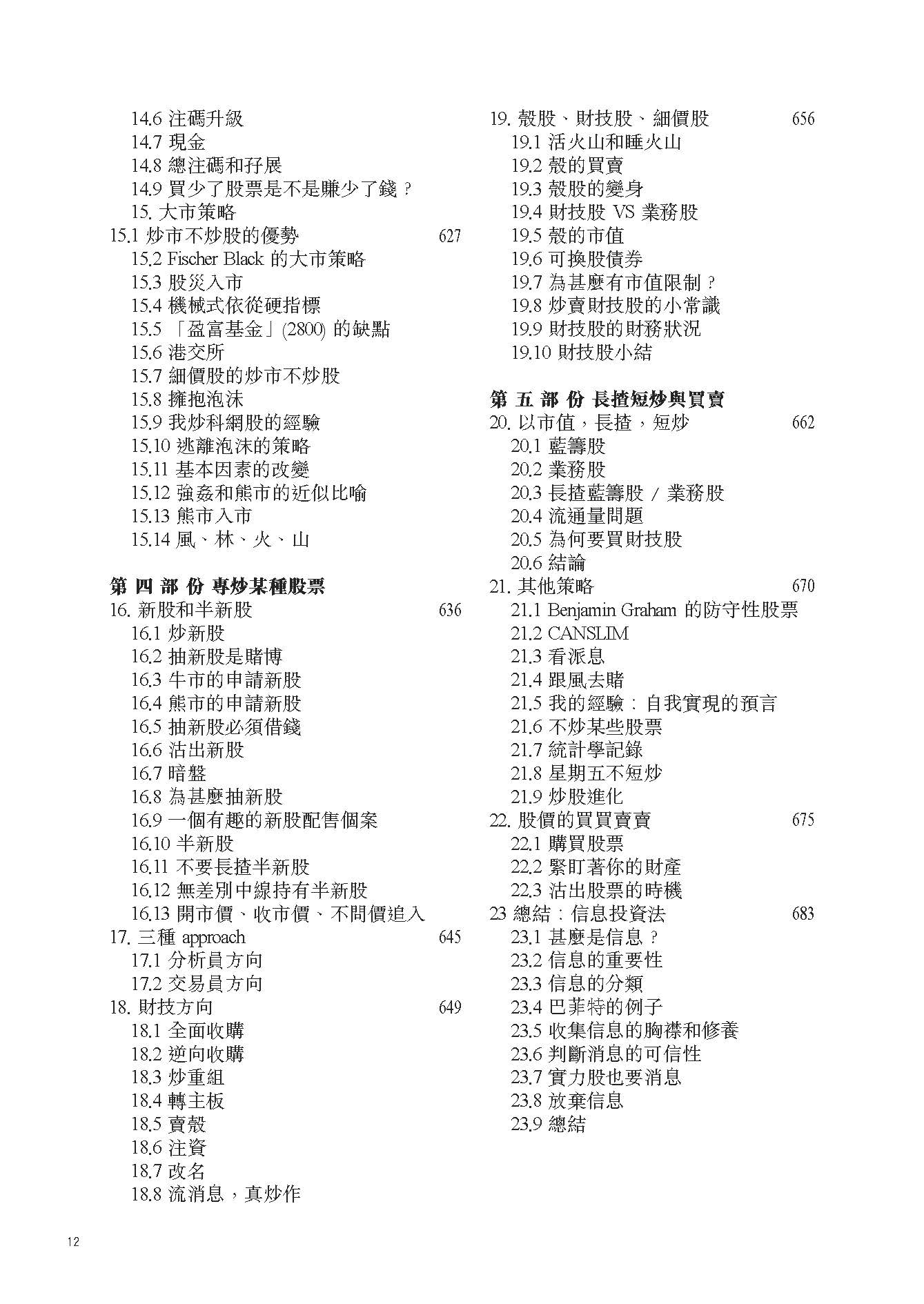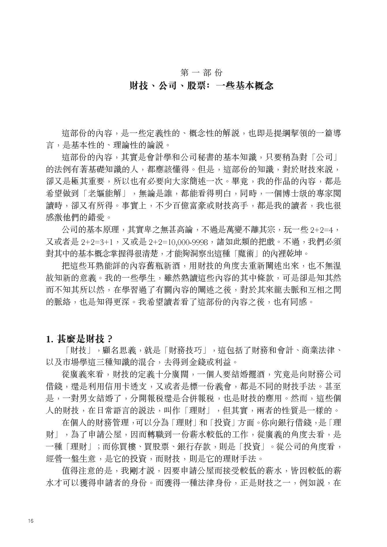 「財技炒股法」是古已有之的炒股形式,多少年來,一直被股市中人應用。本書是第一本把這個行內「秘密」整理寫成的專書,內容兼收並蓄,廣集各家的知識,成一家之言。內文的例子,有新有舊,層層累積,舊的個案,事雖不再新鮮,但基於例子只是用來說明理論,其是新抑或是舊,非但無傷大雅,反而更可令讀者警惕:「哦,原來以前曾經用過這一招,以後可要小心了。」