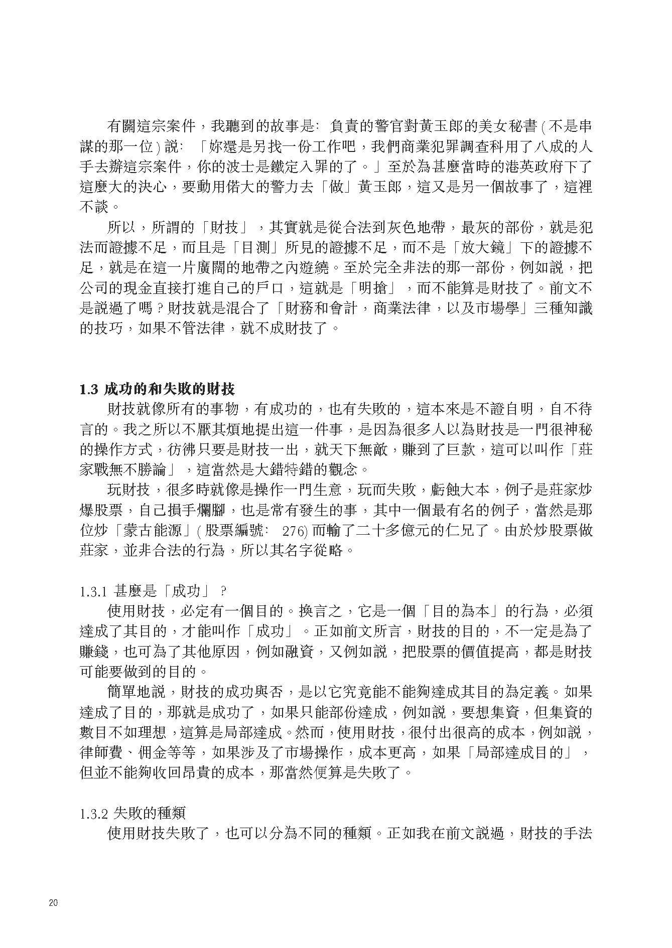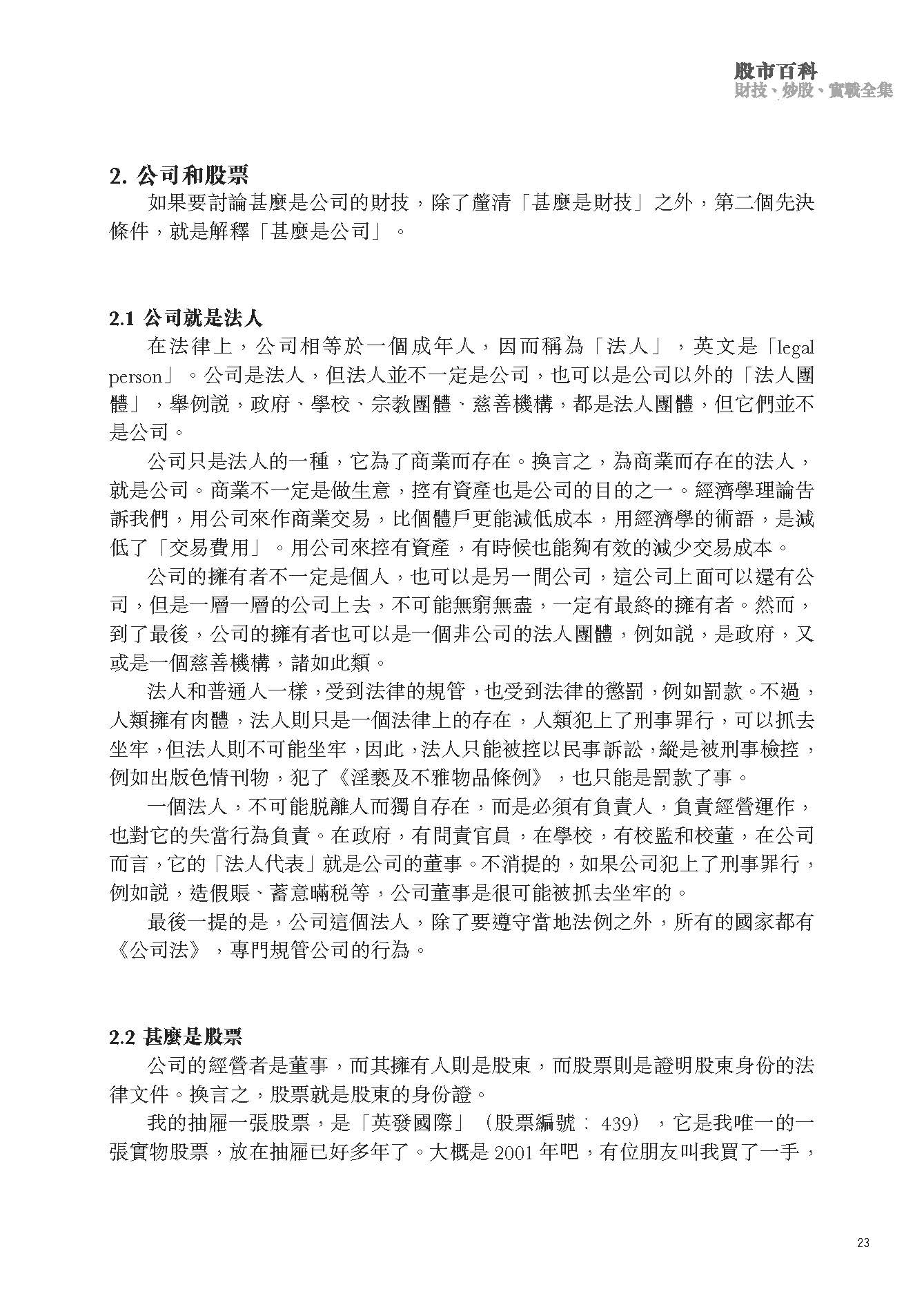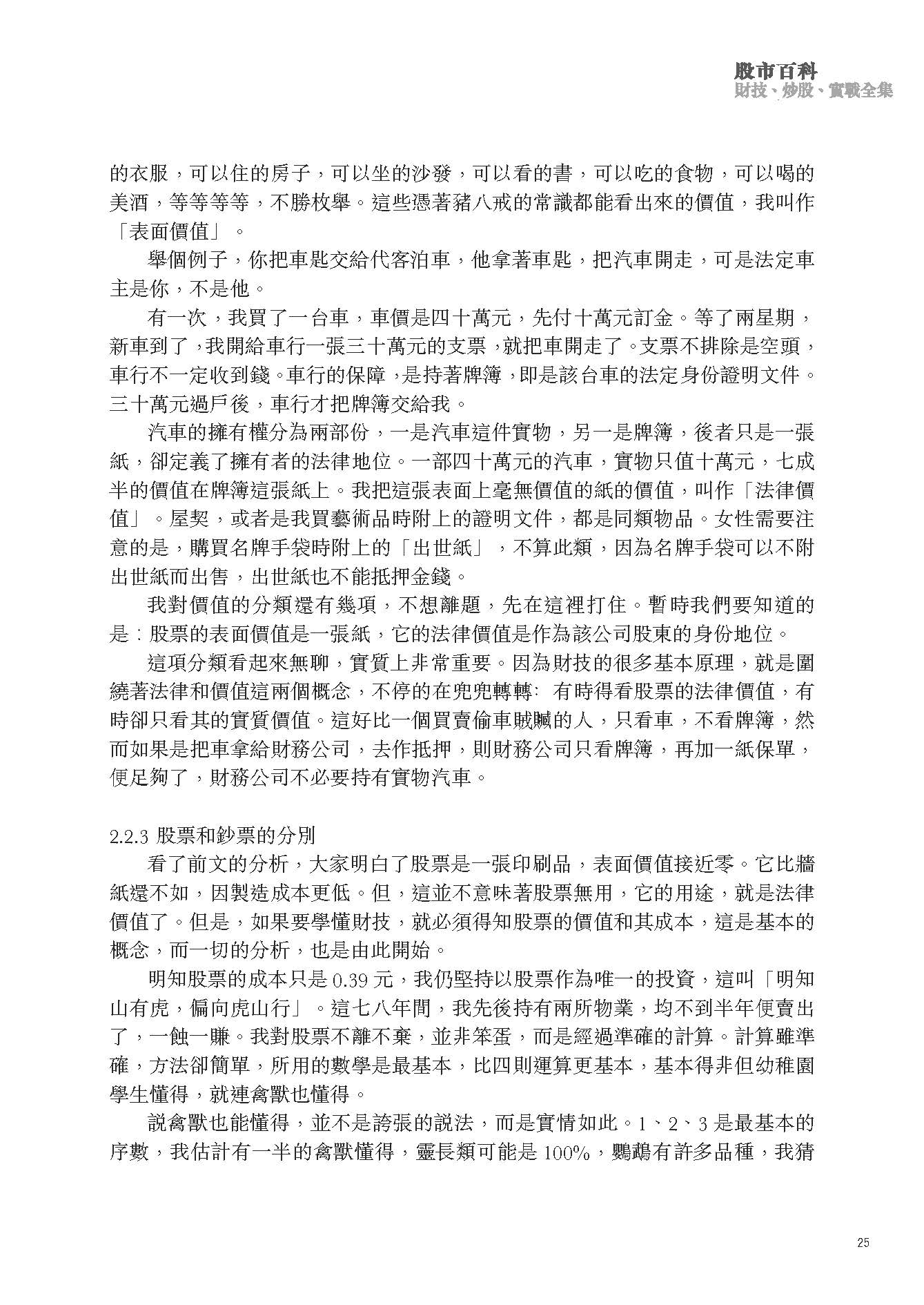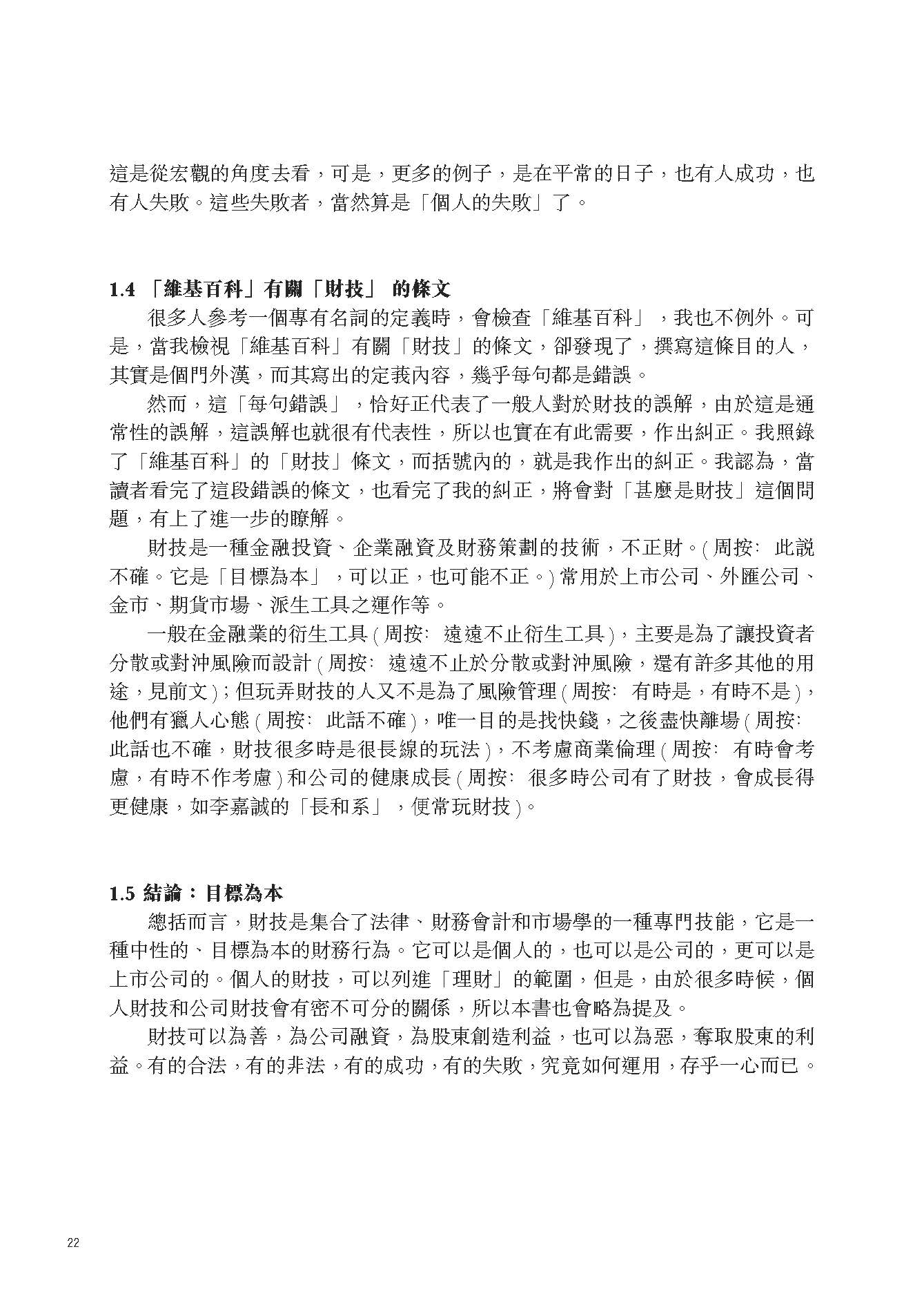 「財技炒股法」是古已有之的炒股形式,多少年來,一直被股市中人應用。本書是第一本把這個行內「秘密」整理寫成的專書,內容兼收並蓄,廣集各家的知識,成一家之言。內文的例子,有新有舊,層層累積,舊的個案,事雖不再新鮮,但基於例子只是用來說明理論,其是新抑或是舊,非但無傷大雅,反而更可令讀者警惕:「哦,原來以前曾經用過這一招,以後可要小心了。」