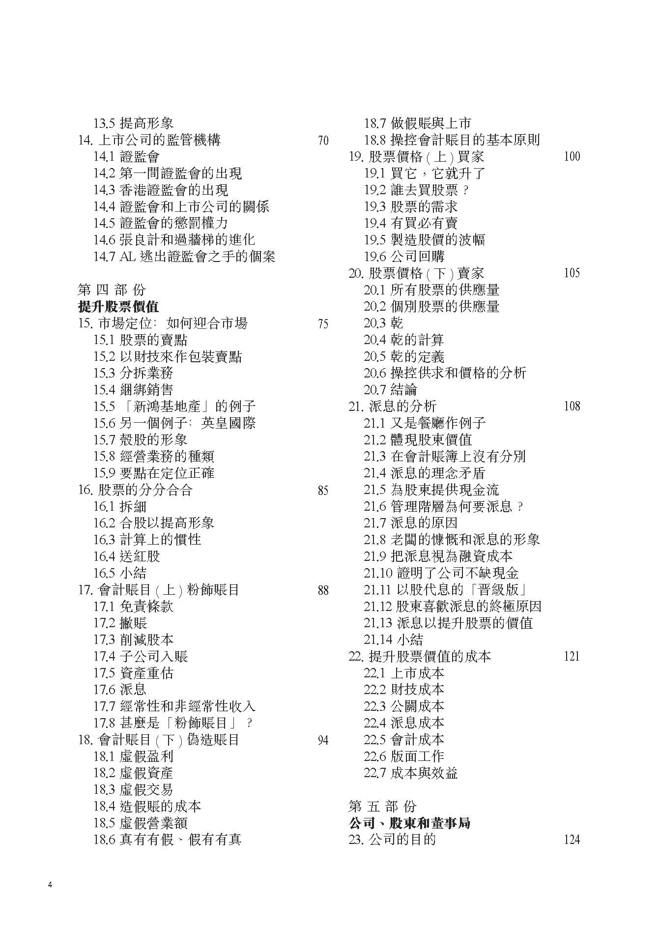 財技密碼的相關內容,主要關於上市公司所使用的財技手段,是為股票市場供應方的專門知識,乃上市公司管理層必備之知識;而市場買方亦須明白賣方財技之動機和意圖,方能知己知彼。