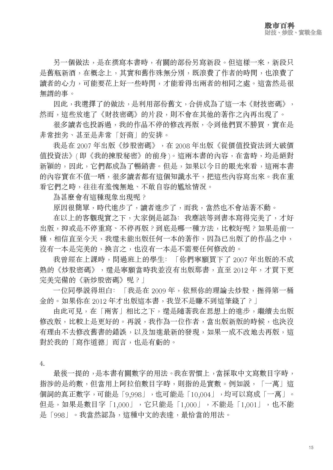 作者寫《炒股密碼》,提出了「財技炒股法」,在當時,是從來沒有人講過的最新知識,但現在,財技炒股法已經成為了無人不識的基本知識了。故此,《炒股實戰》不可能繼續在財技炒股法之中糾纒,正如英雄也莫提當年勇,而是必須推陳出新,融合更多更新更齊全的炒股知識,方能長期站在炒股知識的最尖端。