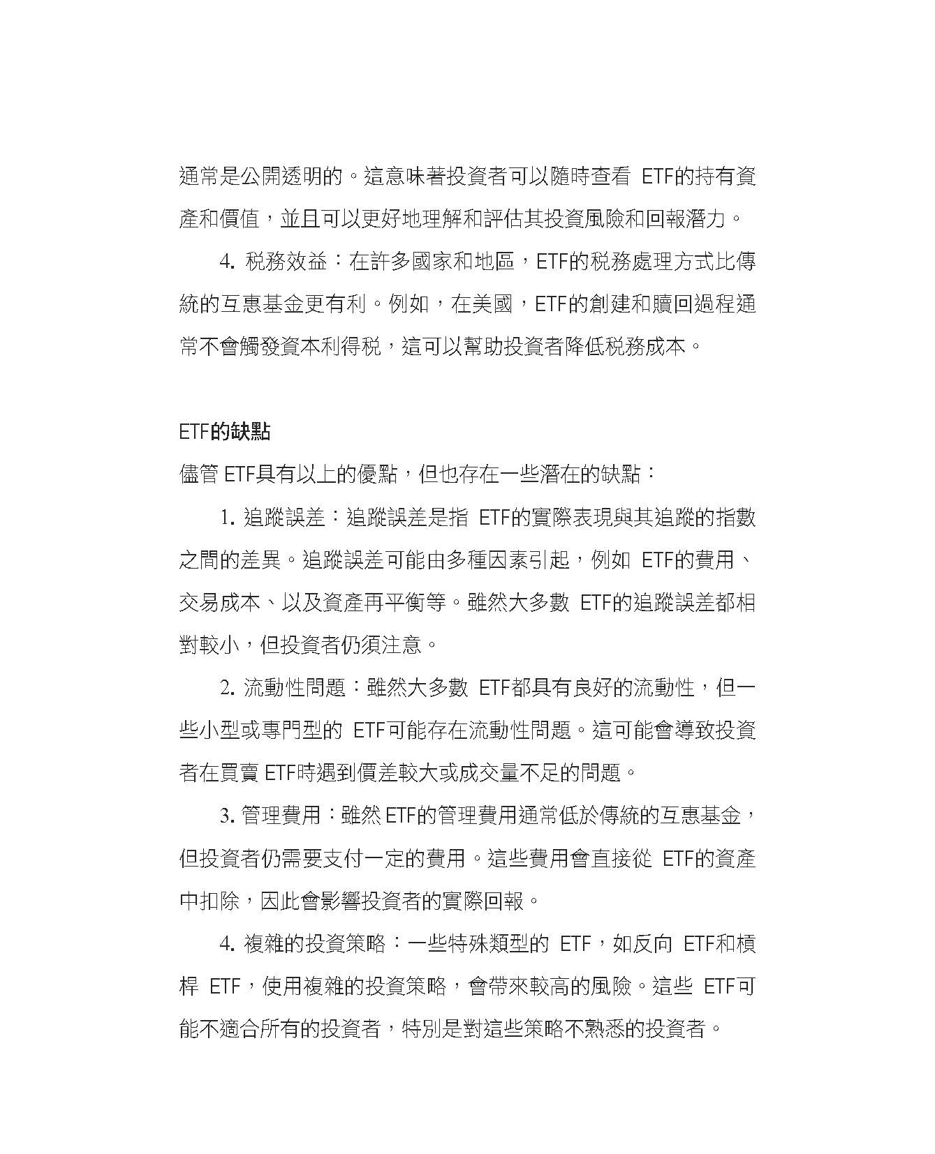 流動性:與普通股票一樣,ETF在一天內的任何交易時間內都可以買賣。這對於需要快速進出市場的投資者來說是一個重要的優點。