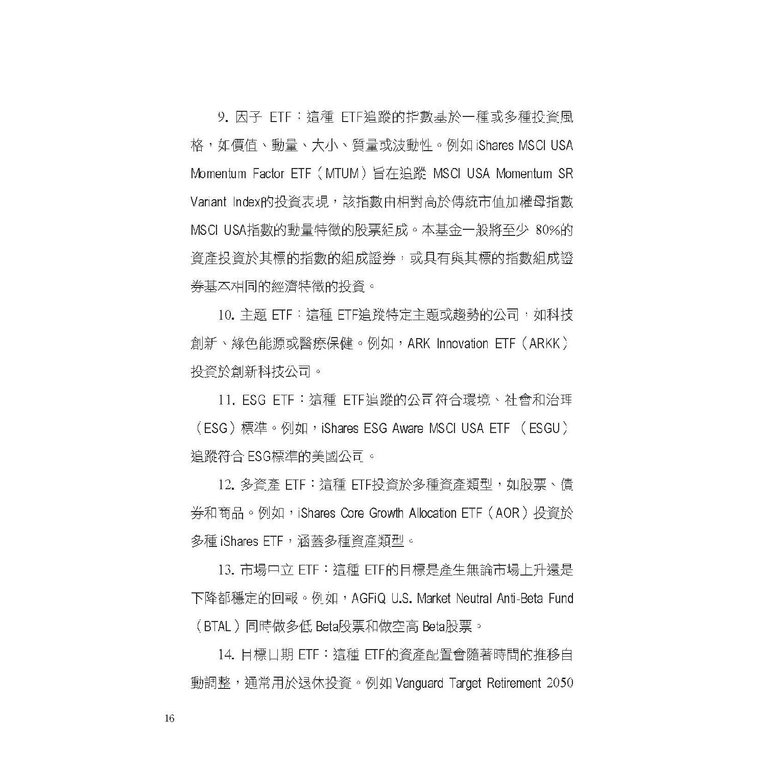 獲取各種市場的機會:ETF可以讓投資者接觸到全球各種市場,包括一些個人投資者可能難以進入的市場。這可能包括特定的行業、商品、國際市場或獨特的投資主題。
