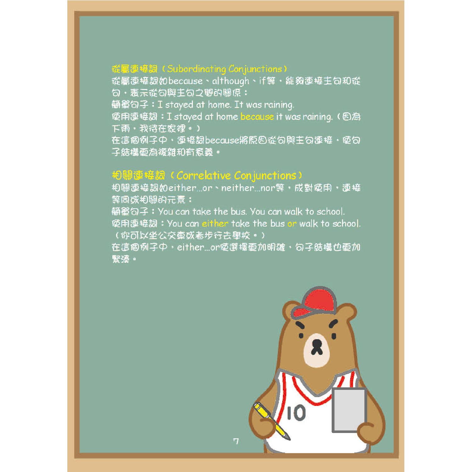 本冊將集中講解並列連接詞(Coordinating Conjunctions)和從屬連接詞(Subordinating Conjunctions)的應用。