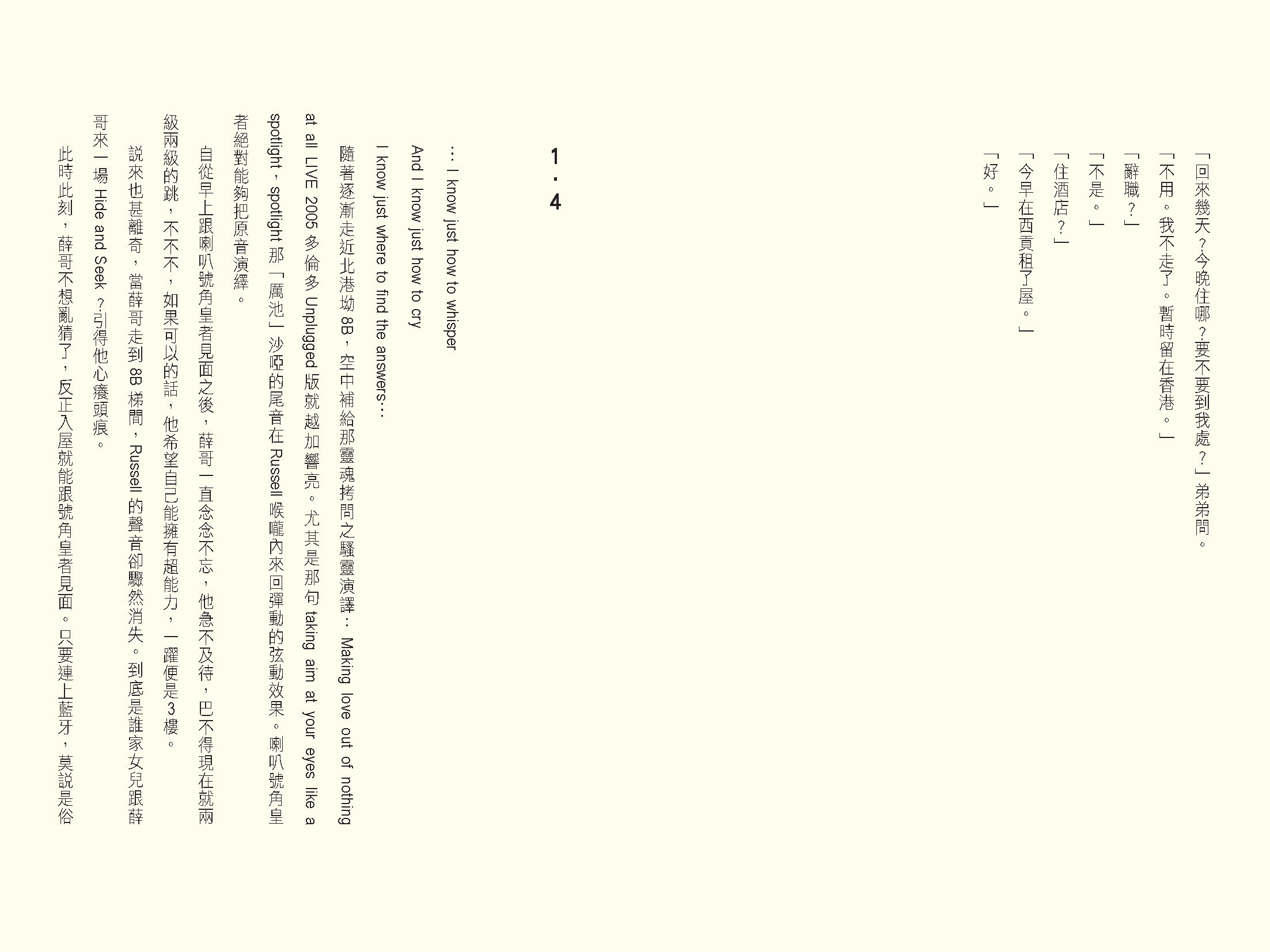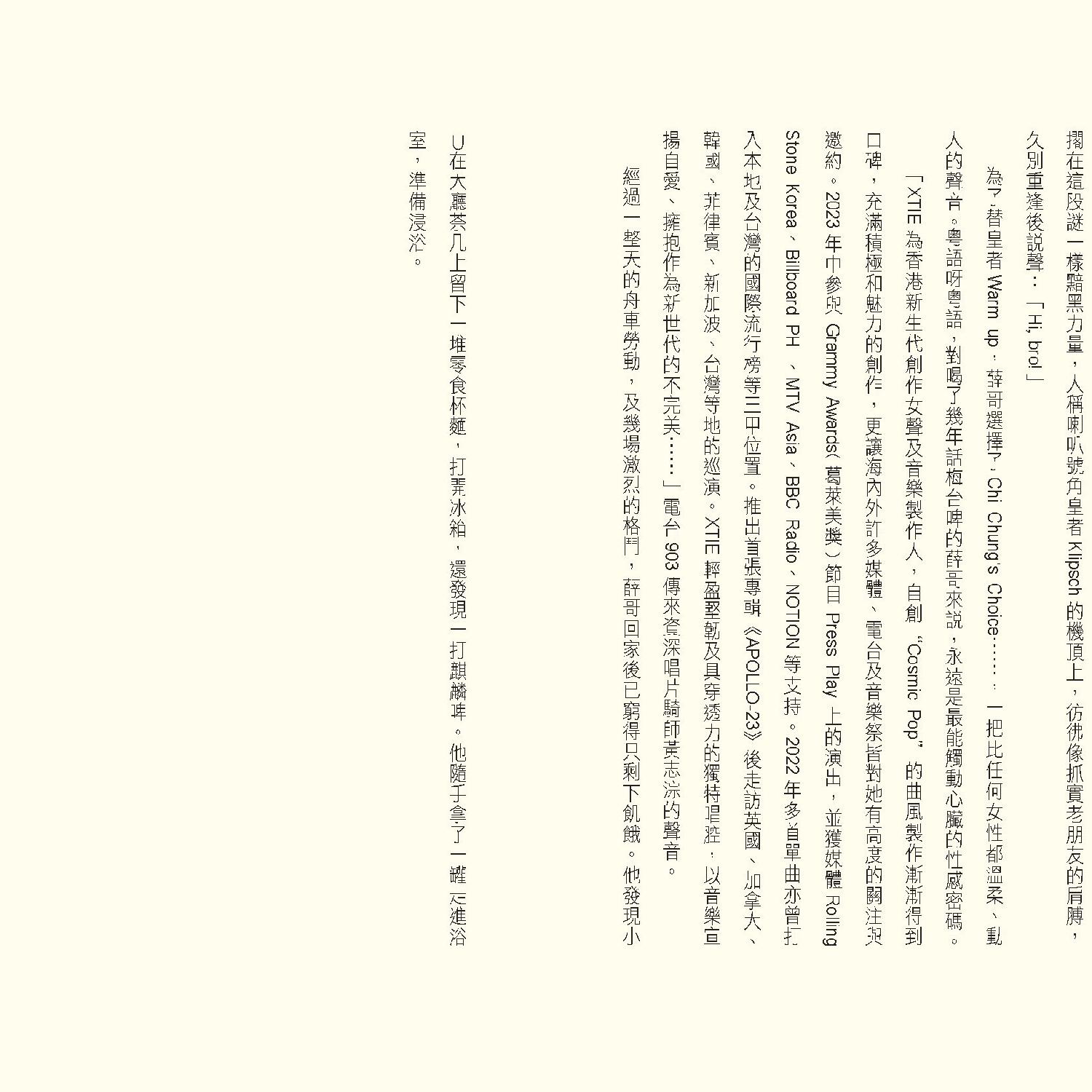 薛該兒,土生土長香港人。最愛作家:三島由紀夫、村上春樹、米蘭昆德拉、赫拉巴爾、亞歷山卓巴瑞科、卡繆、楊絳。