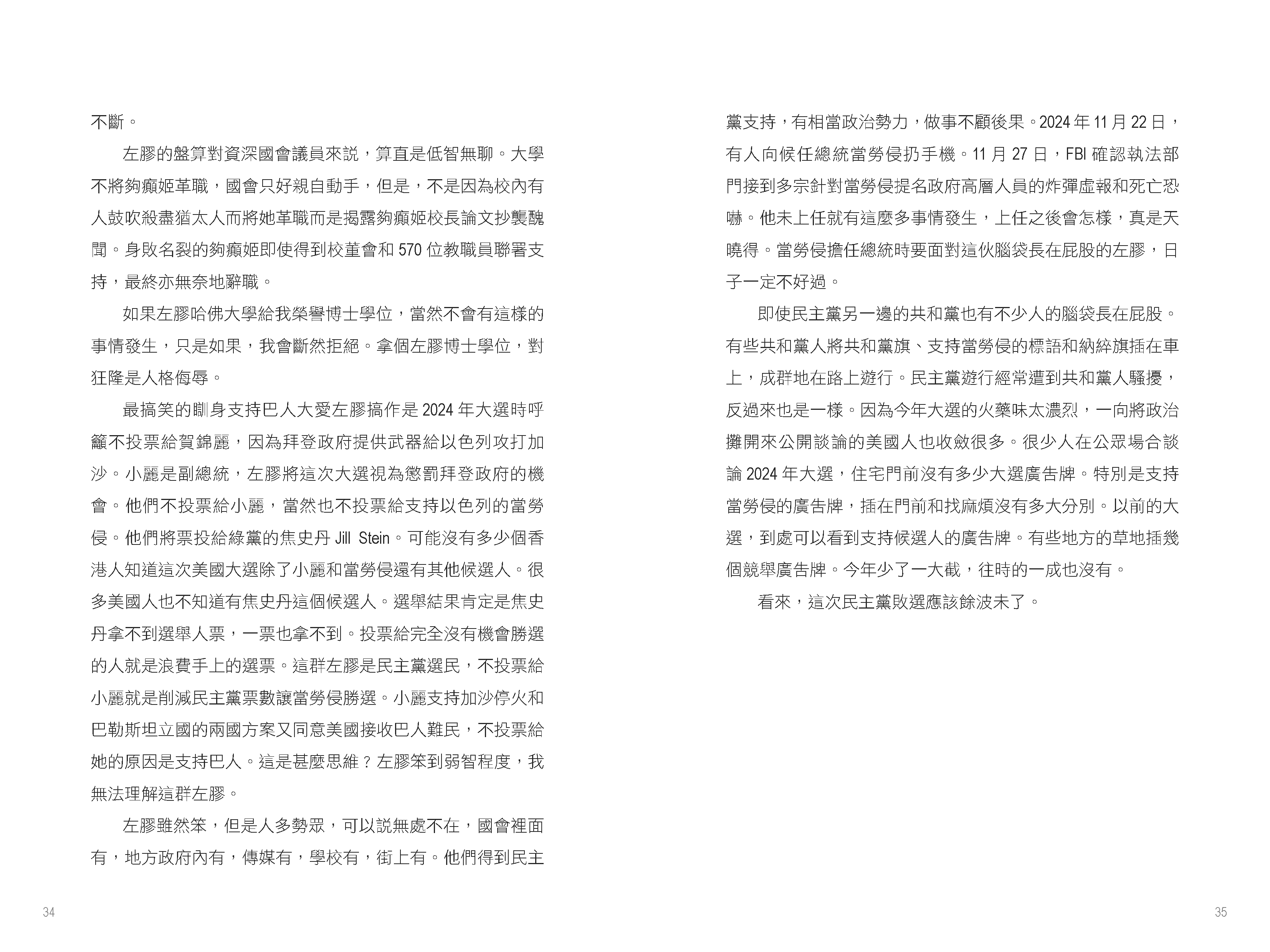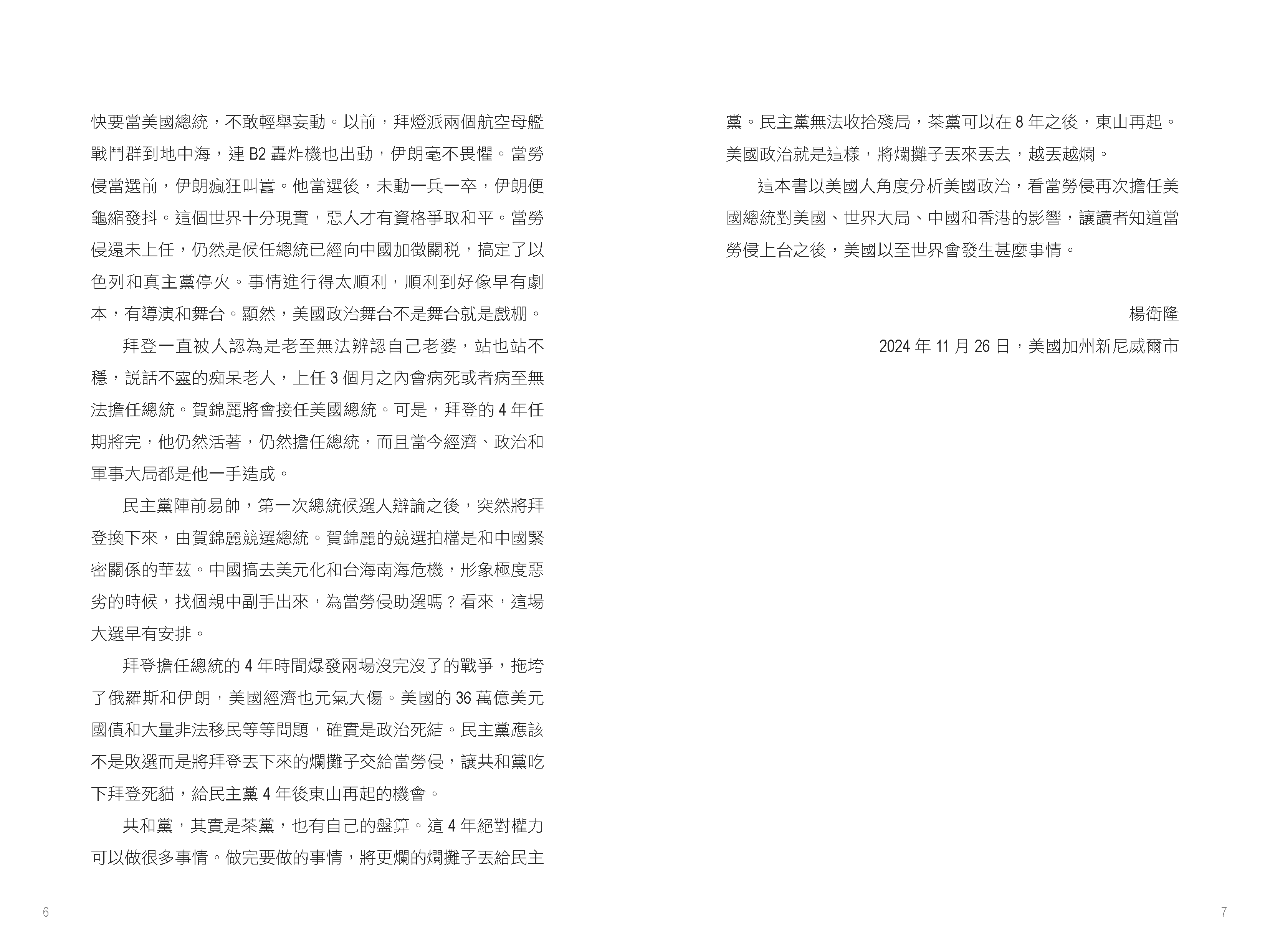 作者特別強調,美國內部的政治極化與社會分裂在特朗普執政下可能進一步加劇。共和黨與民主黨在多個議題上分歧嚴重,而特朗普「美國優先」的立場或將加深美國與盟友之間的矛盾。