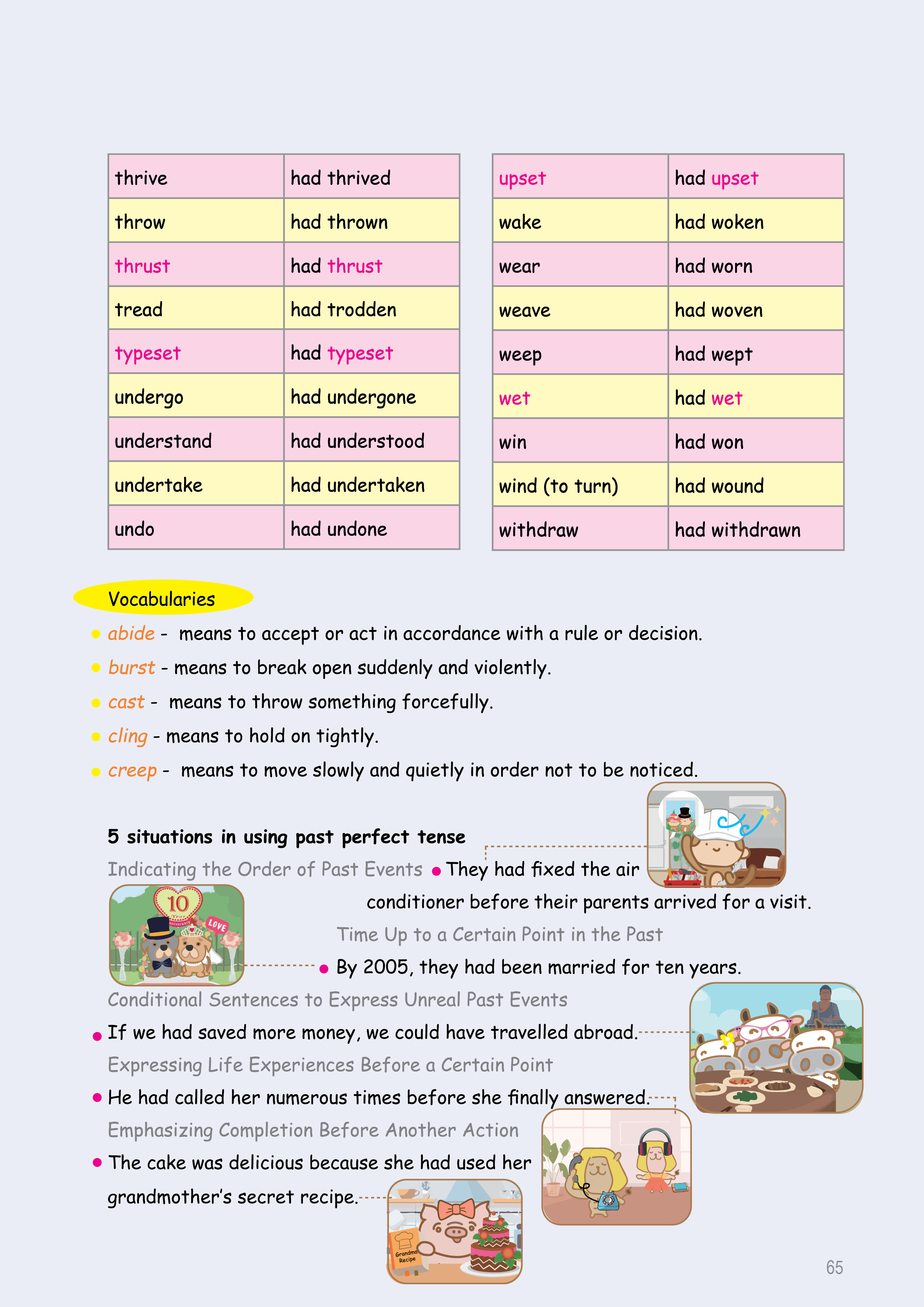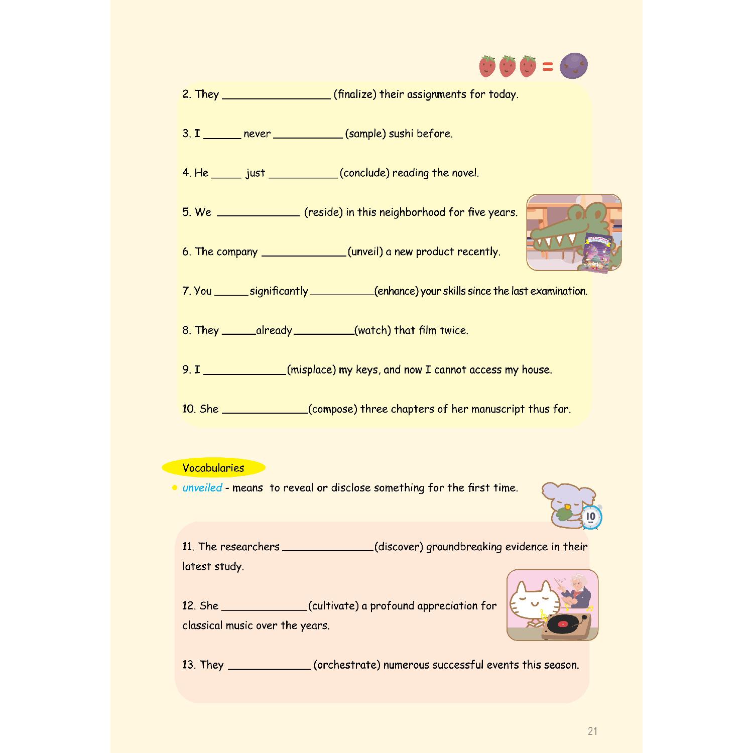 最有效的溫習方法,就是透過手、眼和大腦的協調來學習。這個練習將每個時態分為五個部分,讓同學一步步掌握語法。