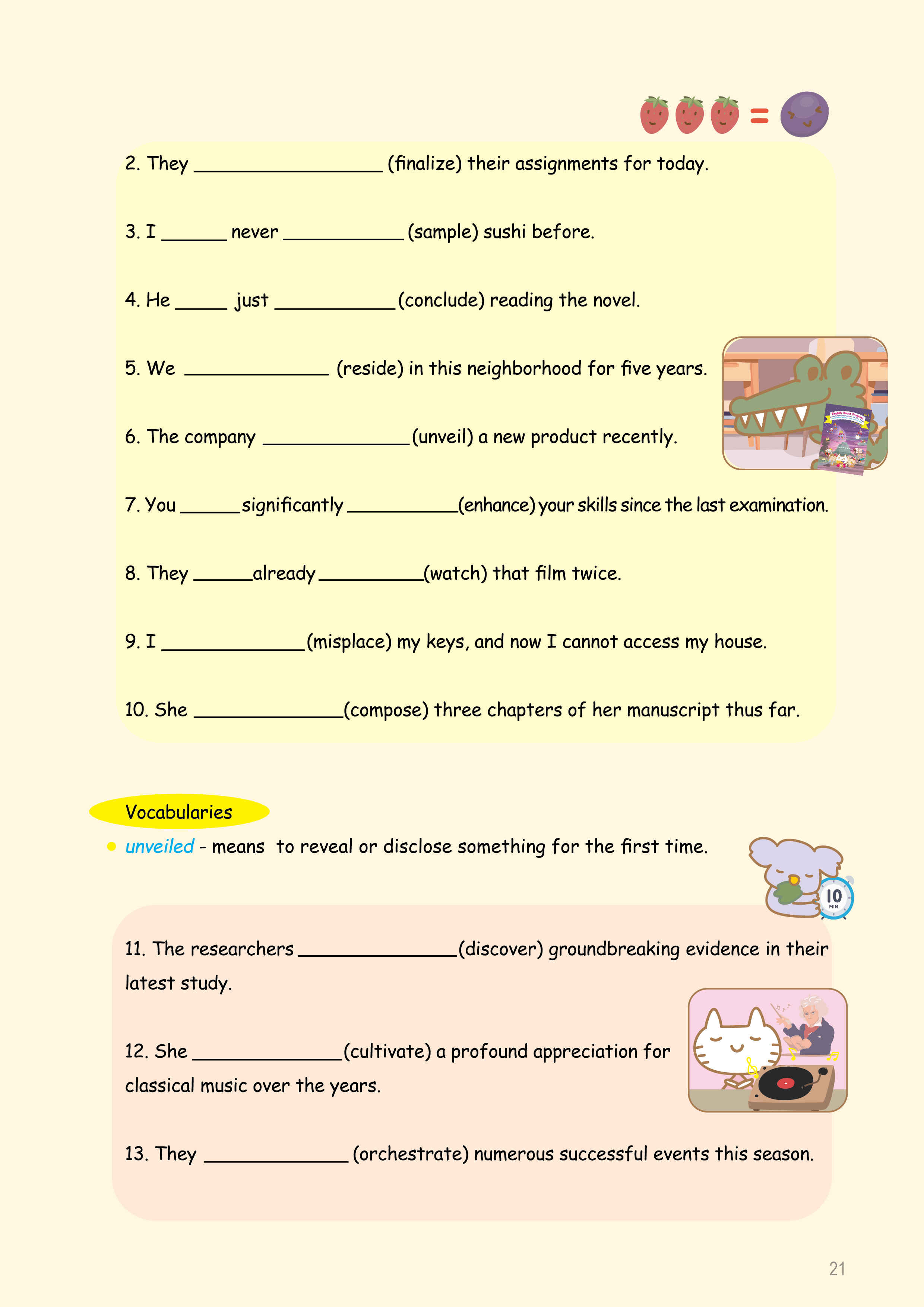After writing practice, try filling in the blanks with the correct verb forms. This will build your confidence, so even if you see new or difficult verbs in a test, you’ll know how to handle them.