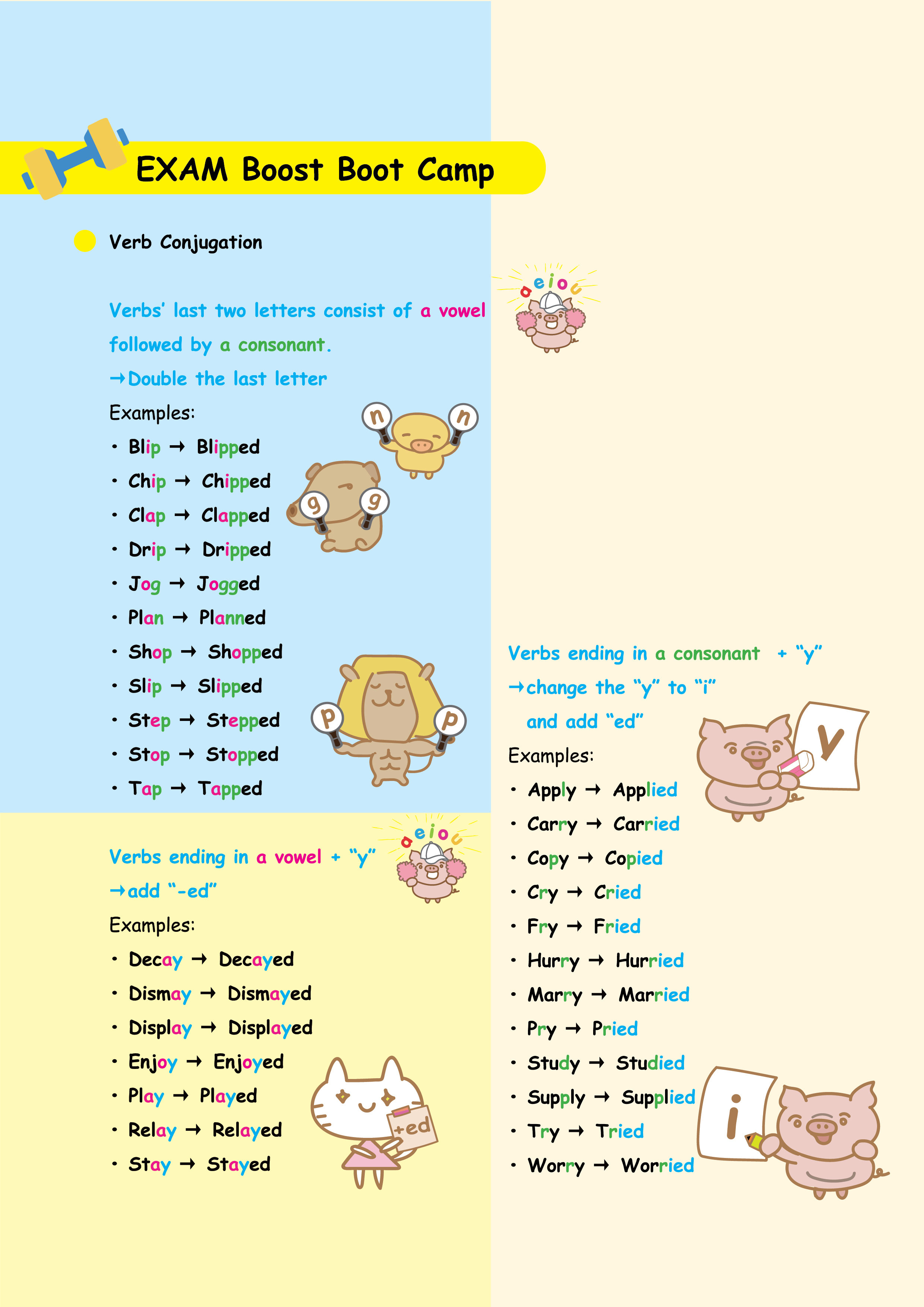 Before the exam, review the verb changes one more time. After reading, writing, and practicing, the final step is to memorize key points. A quick review before the test ensures you can recall everything easily.