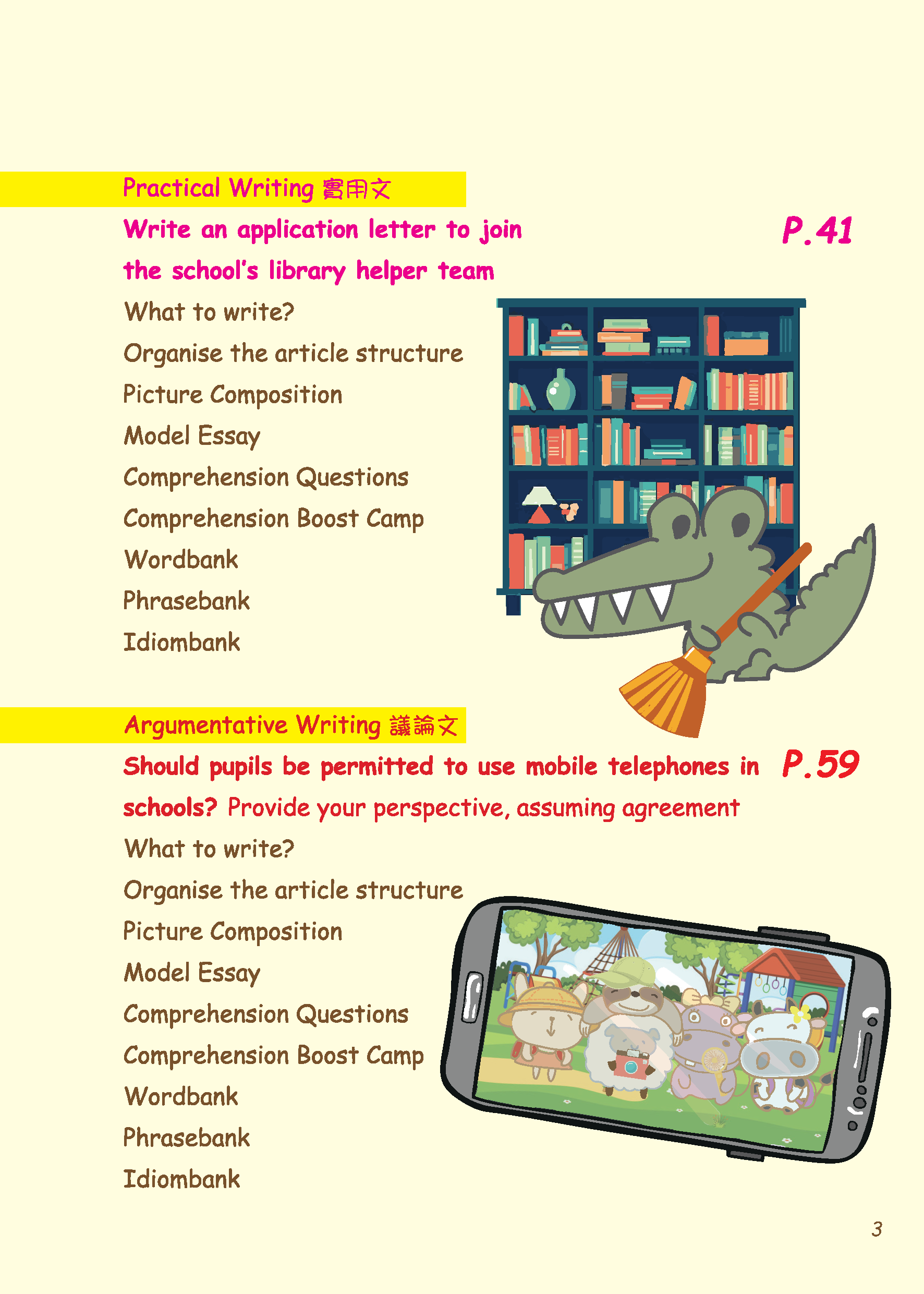 主題貼近校園生活:學校開放日、圖書館助理申請信、手機使用爭議、校車意外與運動會奇遇,讓學習與真實經驗緊密結合,既訓練英語能力,也培養觀察與反思。